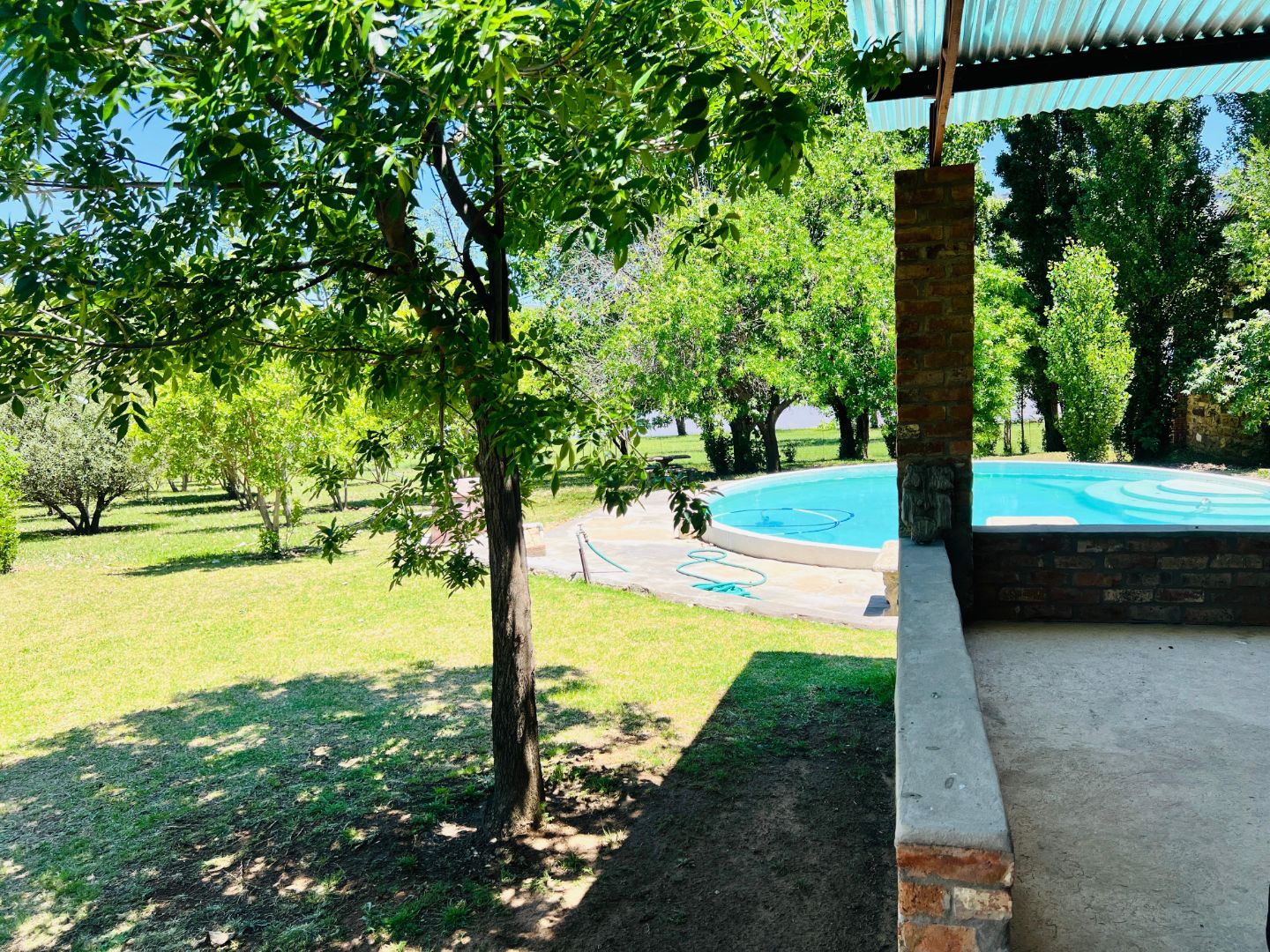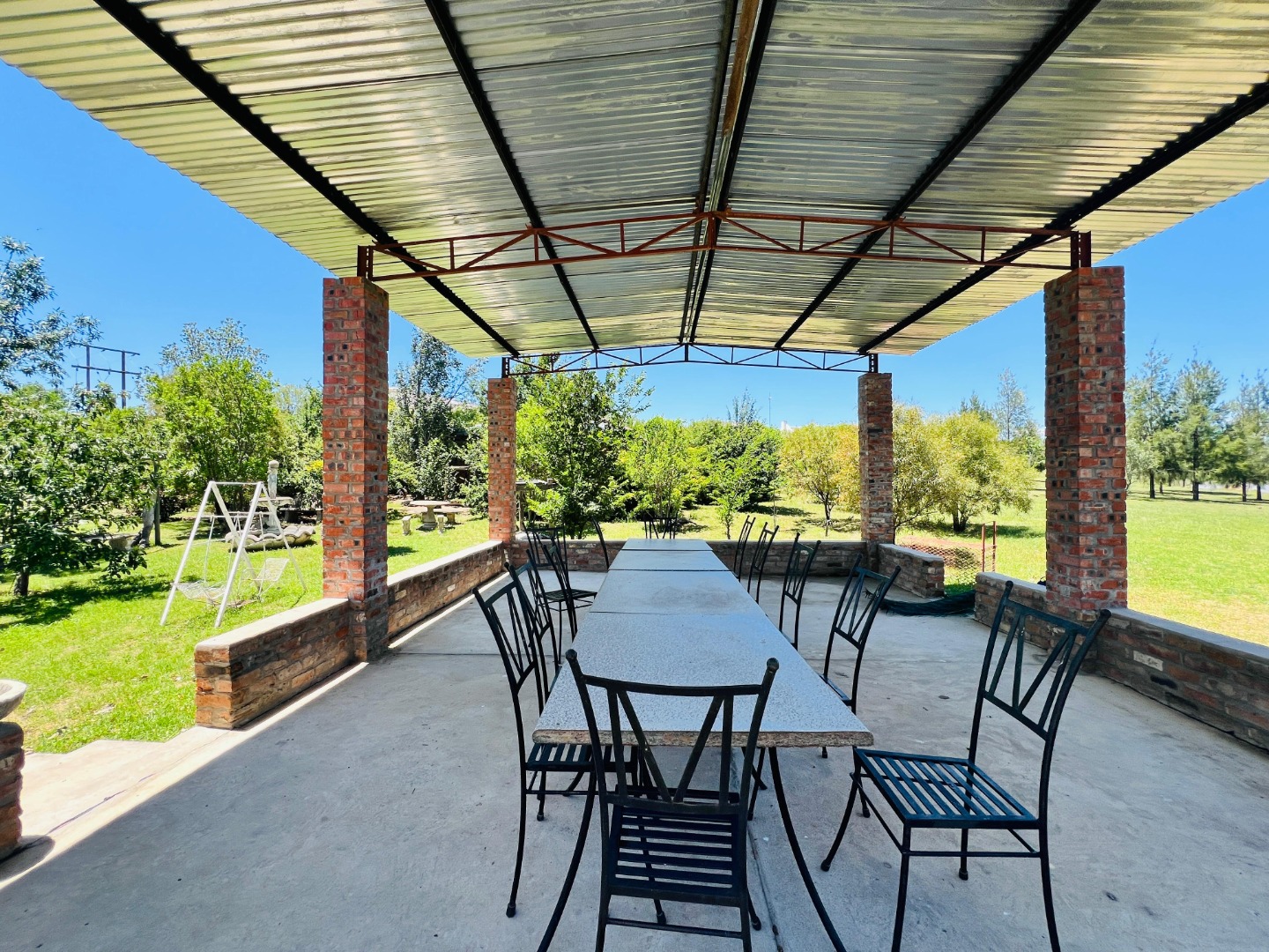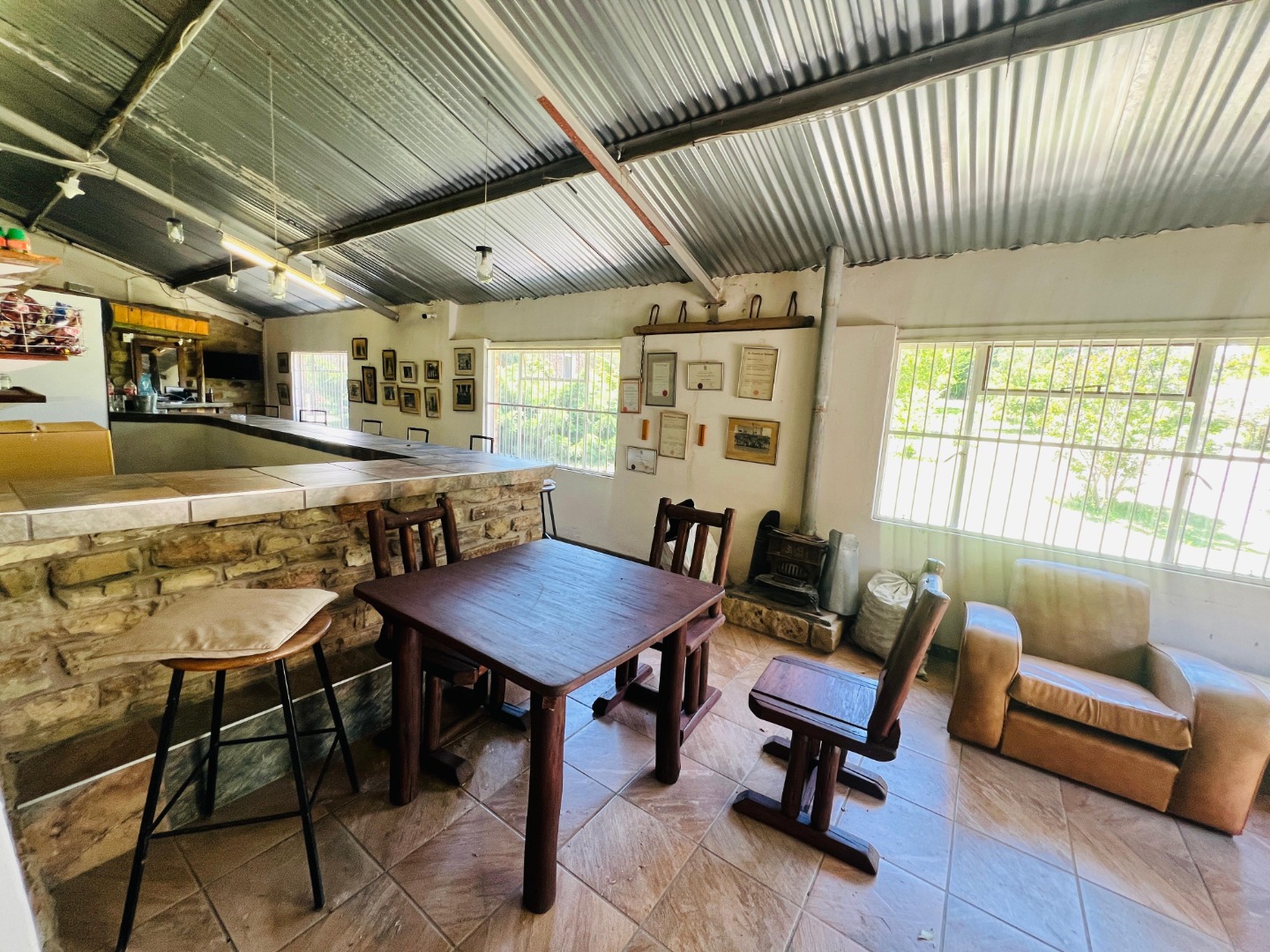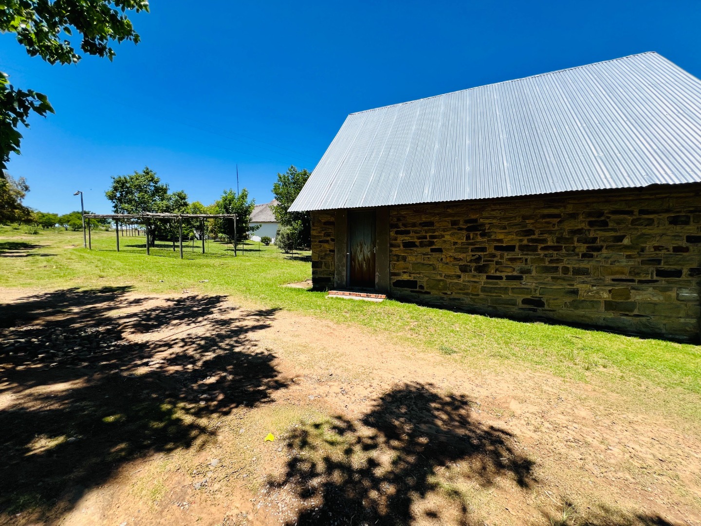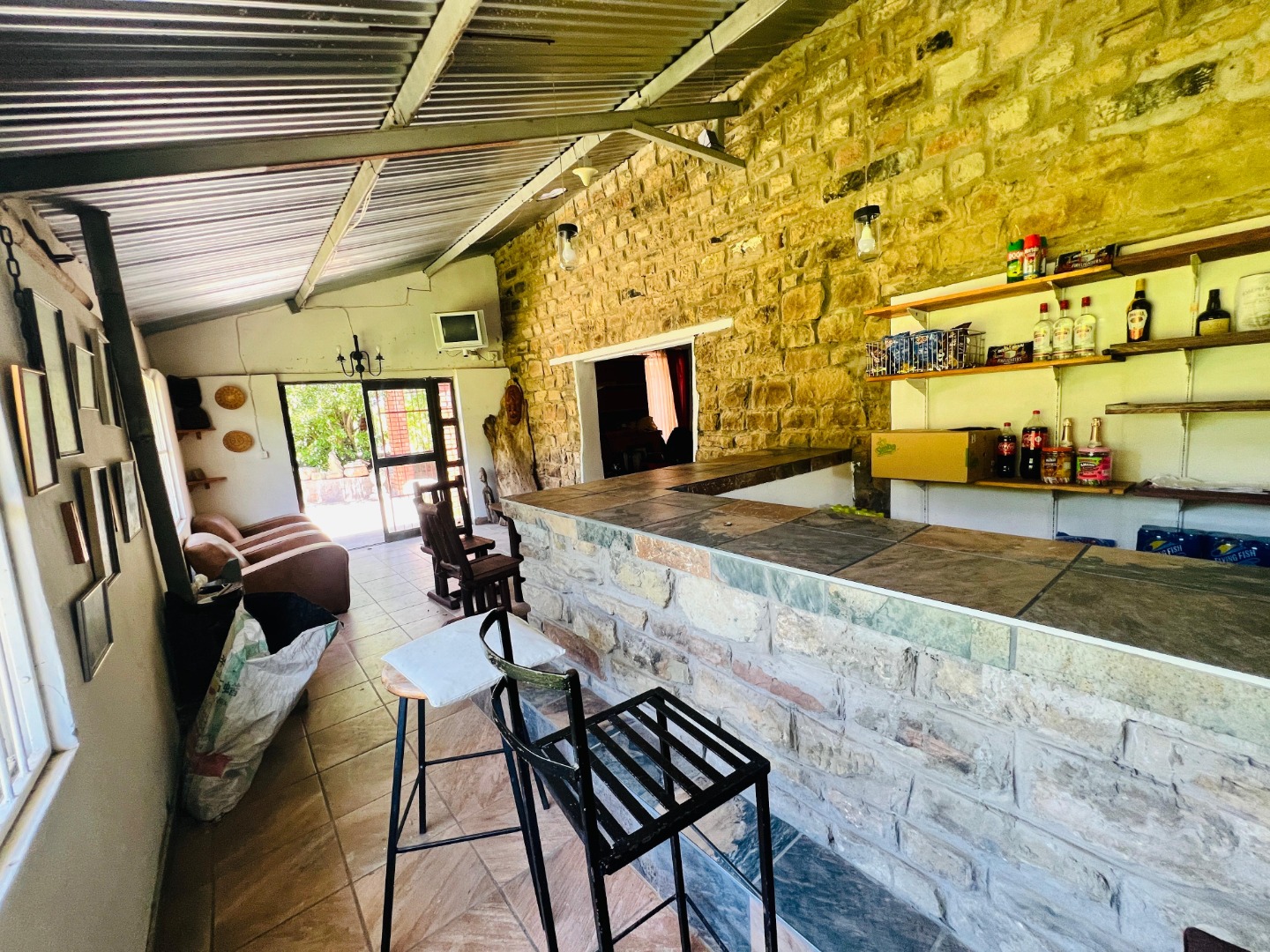 Nestled in the tranquil Bloemside 9 area of Bloemfontein, this expansive property offers a unique blend of rural serenity and substantial living space, ideal for a large family or potential guesthouse. The estate spans a generous 3000 sqm, presenting a picturesque setting with vast open plains, mature trees, and scenic rural views extending to a large distant lake. The property features charming rustic stone structures, including an open-sided shelter and a thatched-roof hut, adding to its unique character and kerb appeal. Boasting an impressive 15 bedrooms and 15 bathrooms, this property provides extensive accommodation options. The interior layout includes five distinct dining rooms and five lounges, offering ample space for relaxation and entertaining. A functional kitchen serves the property, catering to the needs of its numerous occupants or guests. Outdoor living is a highlight, featuring a large circular swimming pool surrounded by a spacious concrete patio, perfect for recreation and gatherings. The lush green garden, shaded by mature trees, complements a covered outdoor entertaining area complete with seating. Additional amenities include a swing set for family enjoyment and five garages, providing secure parking for multiple vehicles. The property also benefits from a borehole, ensuring a reliable water supply. While specific security features are not detailed, the property's expansive nature offers privacy. The presence of a borehole contributes to water resilience, a valuable asset in this tranquil setting. Key Features: * 15 Bedrooms and 15 Bathrooms * 5 Lounges and 5 Dining Rooms * Large Circular Swimming Pool * Expansive 3000 sqm Erf Size * 5 Garages for Ample Parking * Scenic Lake Views and Two On-site Dams * Borehole for Water Supply * Covered Outdoor Entertainment Area