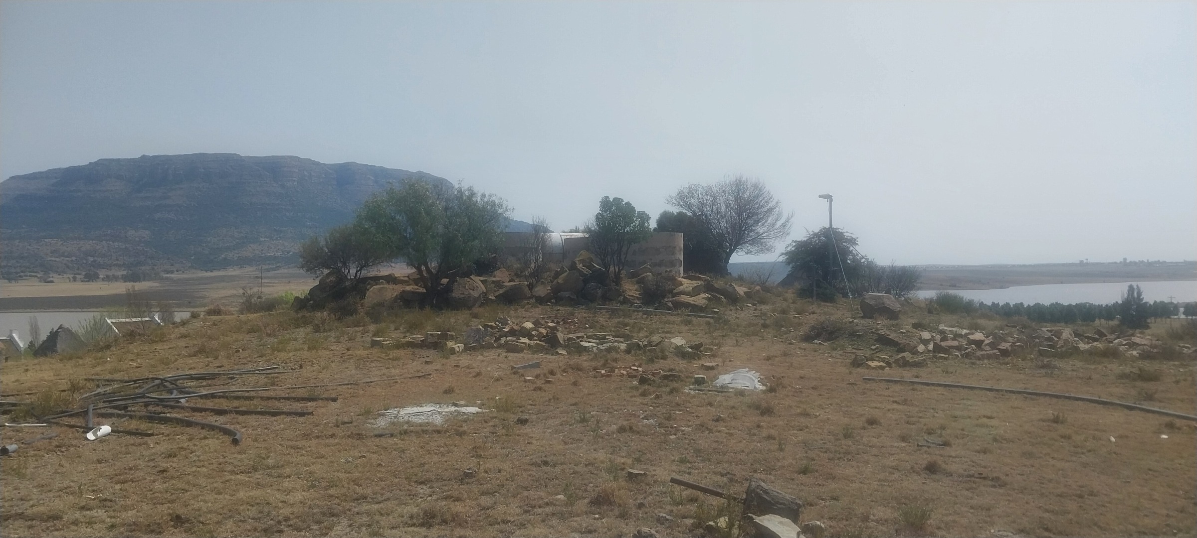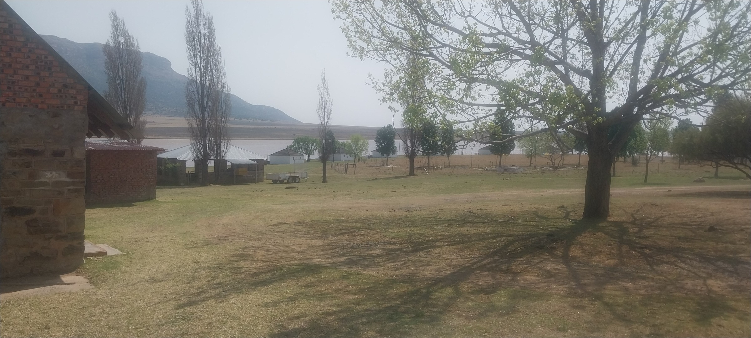 Embrace the natural beauty of this lakefront and riverfrontage property, offering scenic views and a serene environment. The vast land includes terraced gardens, mature trees, and open fields where cattle graze, contributing to its authentic country living appeal. Practical amenities such as water storage tanks and a solar geyser underscore a commitment to sustainability and self-sufficiency, while a large shed provides ample storage or workshop space for farm operations.