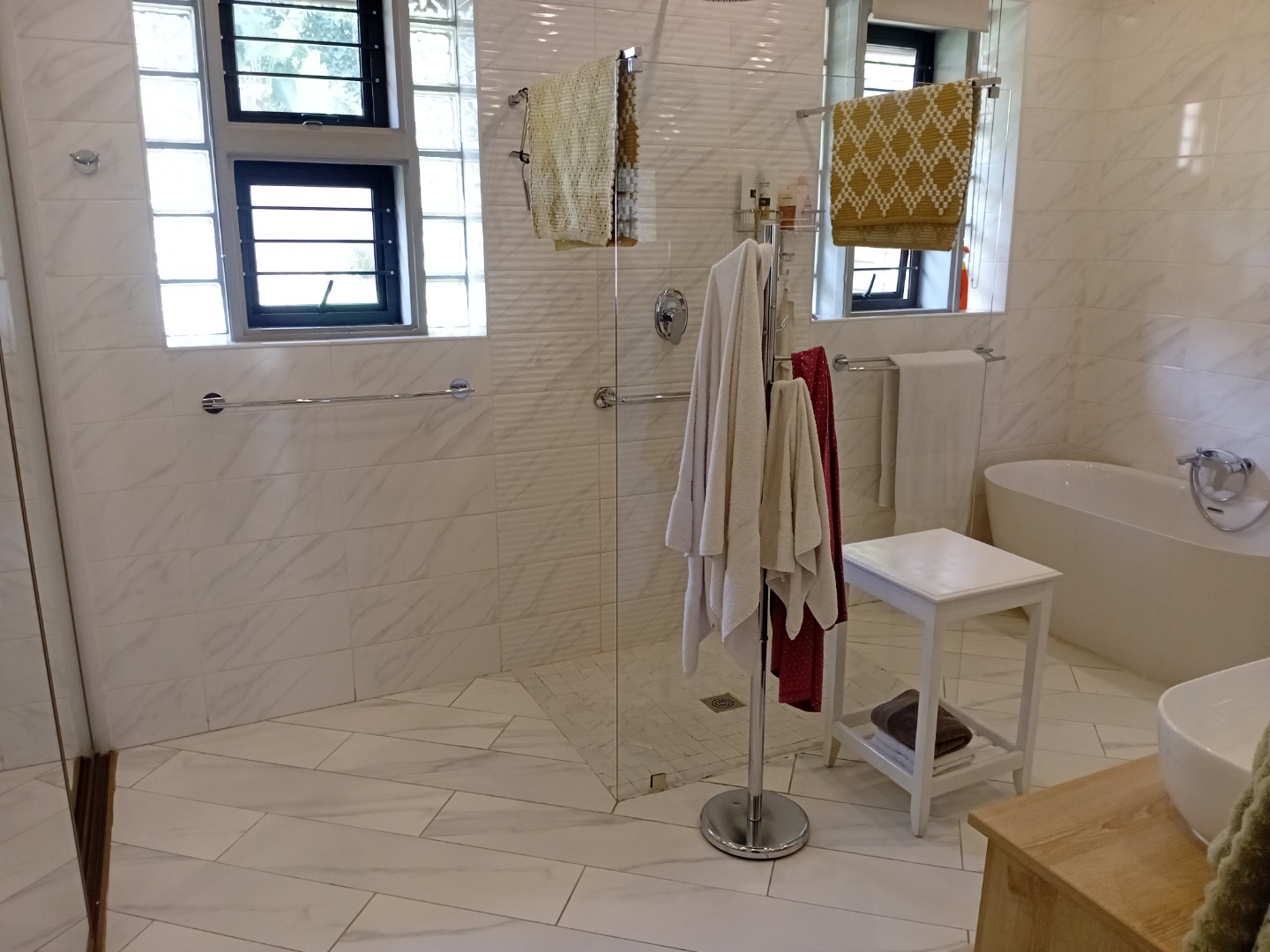 Main bedroom with a stylish en-suite bathroom, mirrored wardrobes, and modern bathtubs