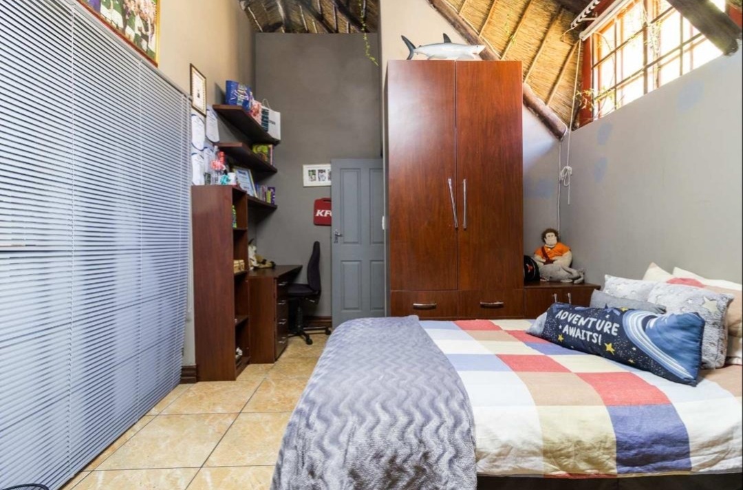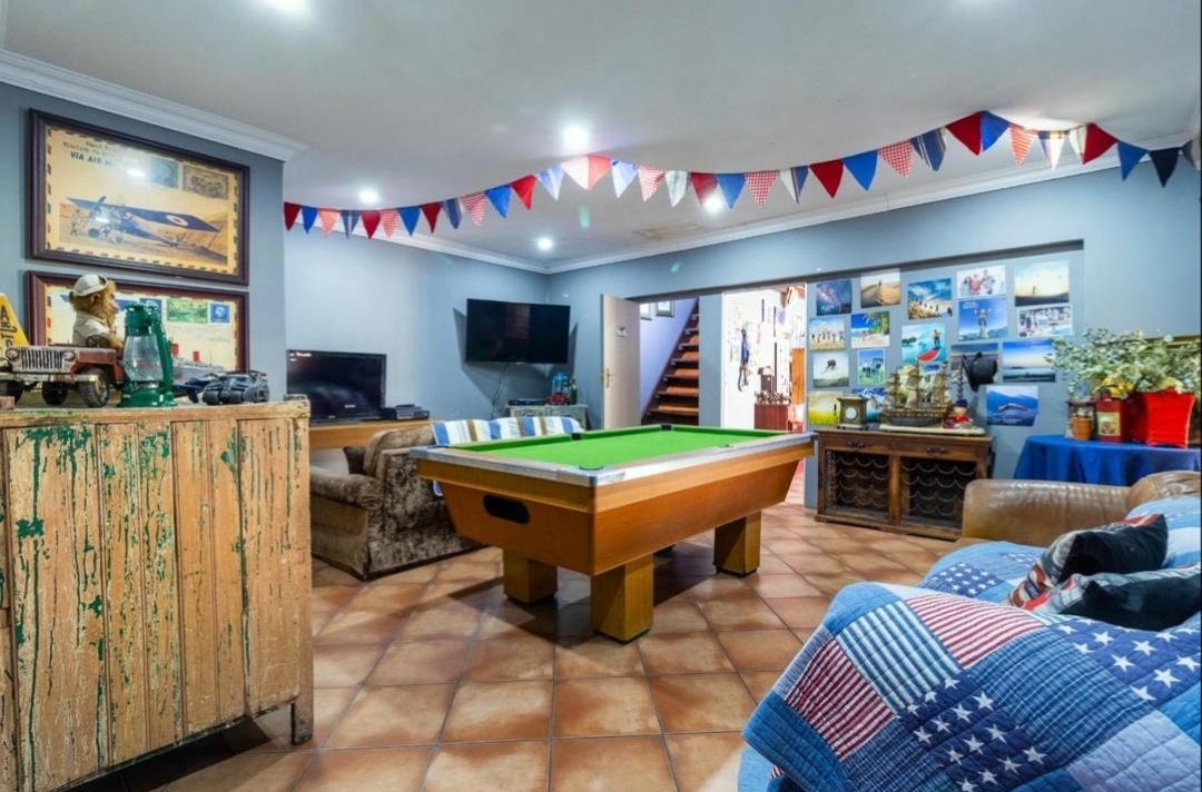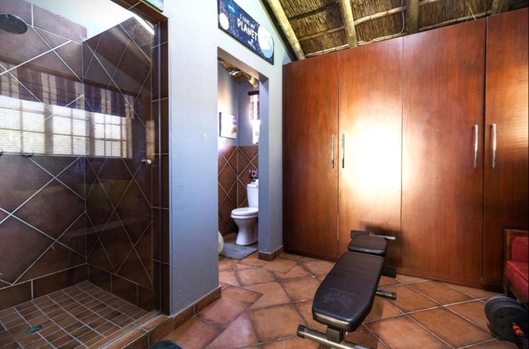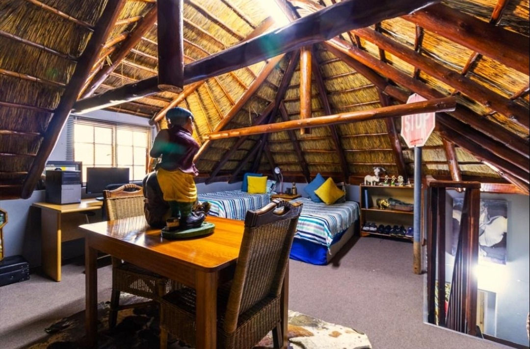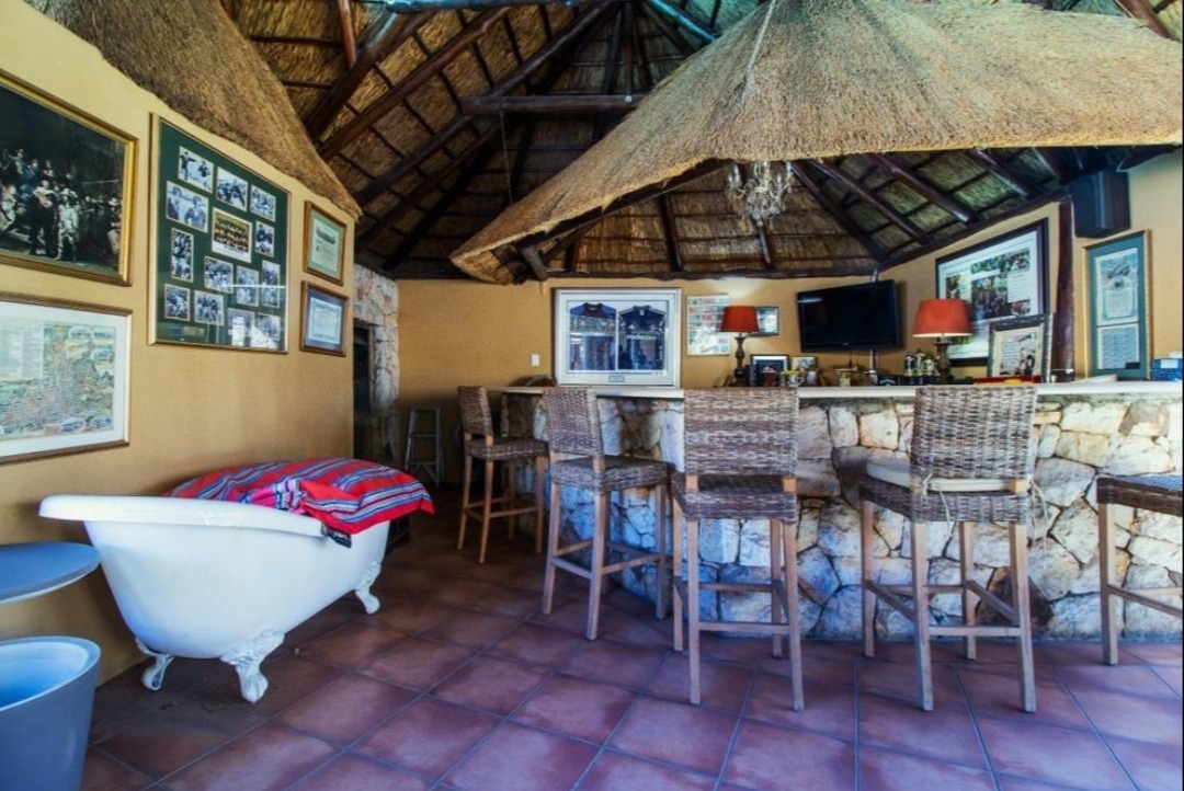 The country-style kitchen is a standout, boasting bespoke cabinetry crafted in Kuruman, granite countertops, Smeg appliances, and a separate scullery. Display niches add elegance, making it ideal for entertainers and home chefs alike.