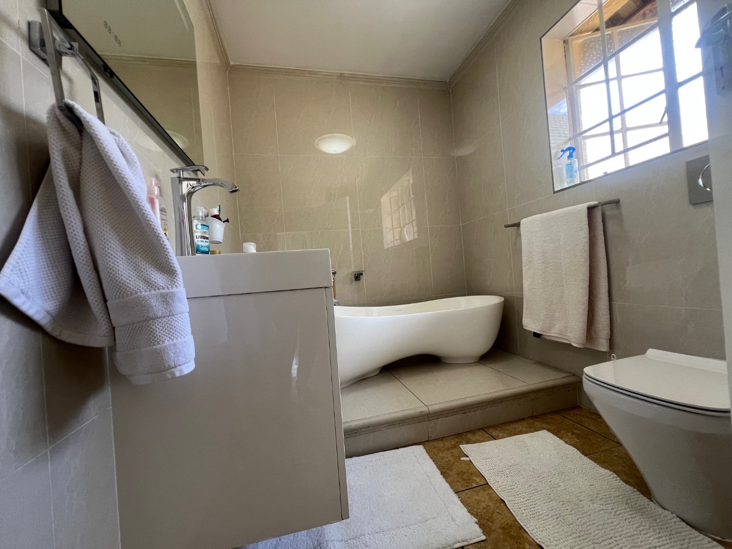 Upstairs, the luxurious main suite offers a peaceful retreat with walk-in wardrobes and a full en-suite bathroom. Also on this level is a guest bedroom, a study or optional additional bedroom, and a full guest bathroom.
