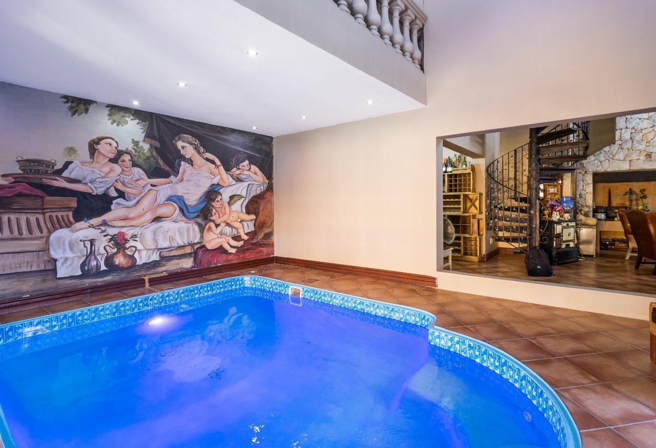 Offering 7 bedrooms (5 en-suite), two studies, three lounges, two recreational rooms, and both an indoor and outdoor pool, this property effortlessly blends lifestyle and luxury. The main suite is a private sanctuary featuring a walk-in dressing room, reading room, and a spa-like bathroom with a nature shower.