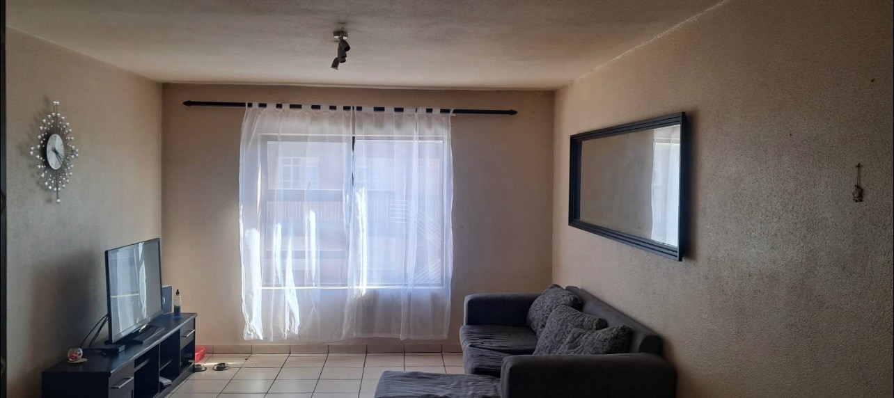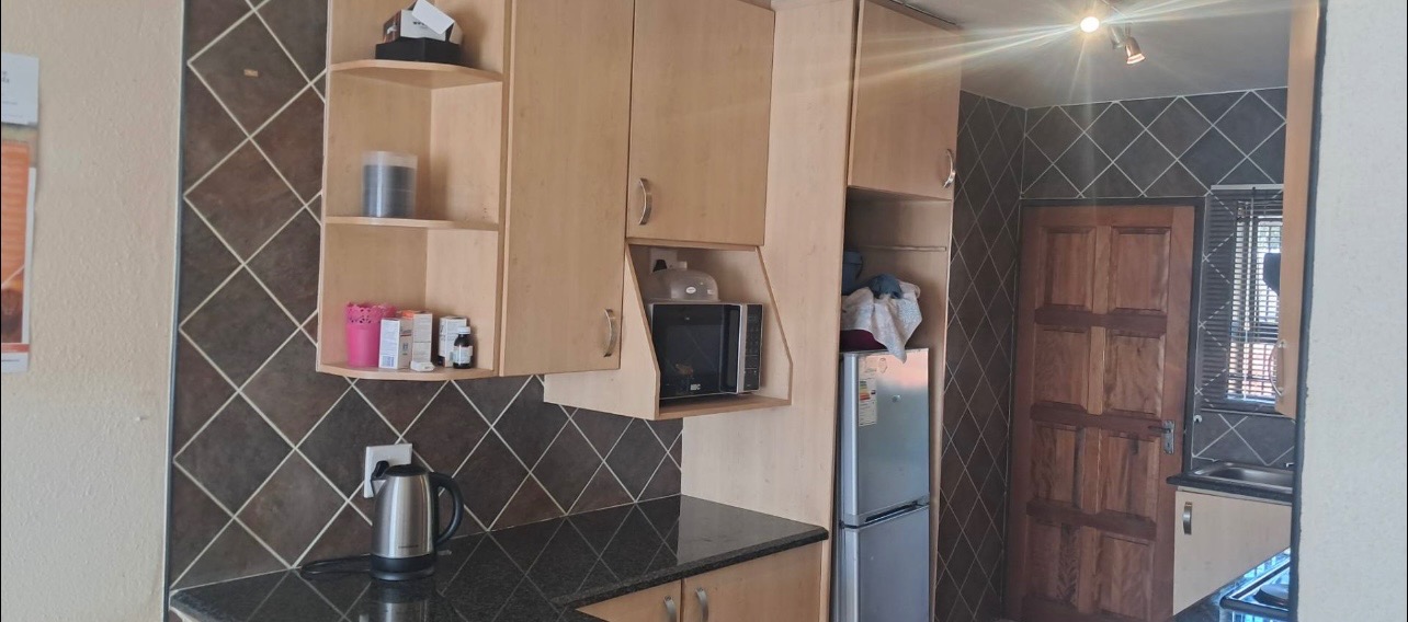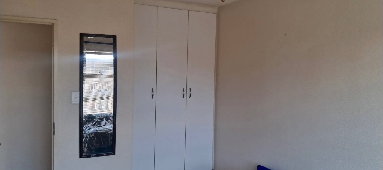 This well-located 2-bedroom, 1-bathroom apartment offers a practical and secure living solution within a dedicated security complex in Alberton North, Alberton, South Africa. The property features solid brick construction, presenting a robust and durable exterior with a utilitarian aesthetic. Mature trees line the perimeter, contributing to a pleasant street presence, while secure fencing and external metal staircases provide controlled access to the multi-story building. Inside, the apartment presents a functional layout designed for comfortable living. The main living area boasts neutral-toned, textured walls and durable tiled flooring, complemented by large windows that invite ample natural light. Sheer curtains offer privacy while maintaining brightness, and track lighting provides adjustable illumination. An intercom system is installed for convenient communication within the complex. The compact kitchen is efficiently designed with light-toned wooden upper and lower cabinets, providing good storage. Dark speckled countertops and a dark tiled backsplash create a neat workspace, complete with a dedicated microwave shelf and space for a narrow refrigerator. The two bedrooms are practical spaces, each featuring neutral walls and built-in wardrobes for essential storage. One bedroom benefits from a ceiling fan for enhanced air circulation. The single bathroom is fully tiled and includes a bathtub, pedestal sink, and toilet, with a window fitted with security bars for peace of mind. Residents will appreciate the secure outdoor amenities, including paved parking with shaded carports, ensuring convenience and protection for one vehicle. The complex is further secured by brick walls topped with electric fencing, enhancing safety and providing a controlled environment. This property represents an excellent opportunity for those seeking a secure and manageable home in a well-established area. Key Features: * 2 Bedrooms * 1 Bathroom * 1 Parking Bay * Compact Kitchen * Tiled Flooring * Built-in Wardrobes * Security Complex * Electric Fencing * Paved Parking * Erf Size: 69 sqm