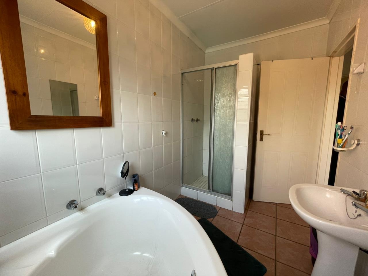 The residence features three comfortable bedrooms, with the master bedroom benefiting from a private en-suite bathroom, complementing the second well-appointed bathroom. Step outside to enjoy the private balcony and patio, ideal for outdoor relaxation. The built-in braai and a luxurious jacuzzi offer excellent opportunities for entertaining guests or unwinding after a long day.