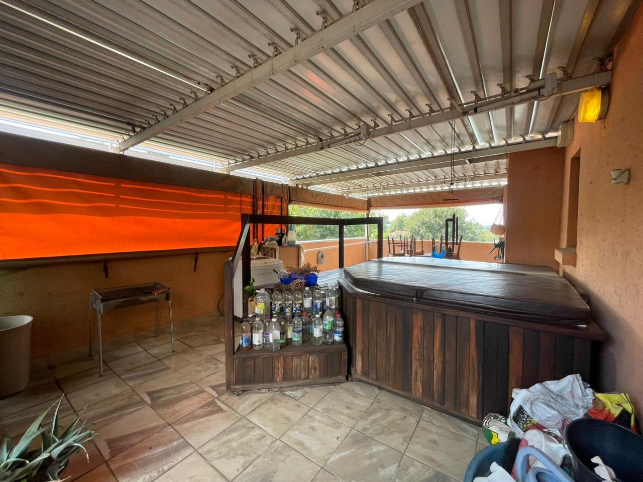 The residence features three comfortable bedrooms, with the master bedroom benefiting from a private en-suite bathroom, complementing the second well-appointed bathroom. Step outside to enjoy the private balcony and patio, ideal for outdoor relaxation. The built-in braai and a luxurious jacuzzi offer excellent opportunities for entertaining guests or unwinding after a long day.