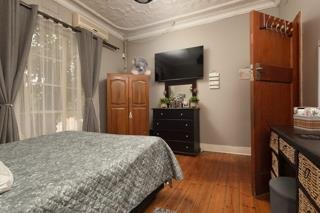 Entertaining is effortless with a dedicated bar room, perfect for hosting gatherings. Step outside to a sparkling swimming pool and an expansive entertainment area, creating an inviting atmosphere for friends and family. The property also benefits from practical amenities including a garage, an outside toilet, and a JoJo tank for water backup. Security is well-addressed with an alarm system and protective beams, ensuring peace of mind. Additional features include a well-maintained garden, paving, and the convenience of prepaid electricity. Pets are also welcome, making this a truly family-friendly environment.