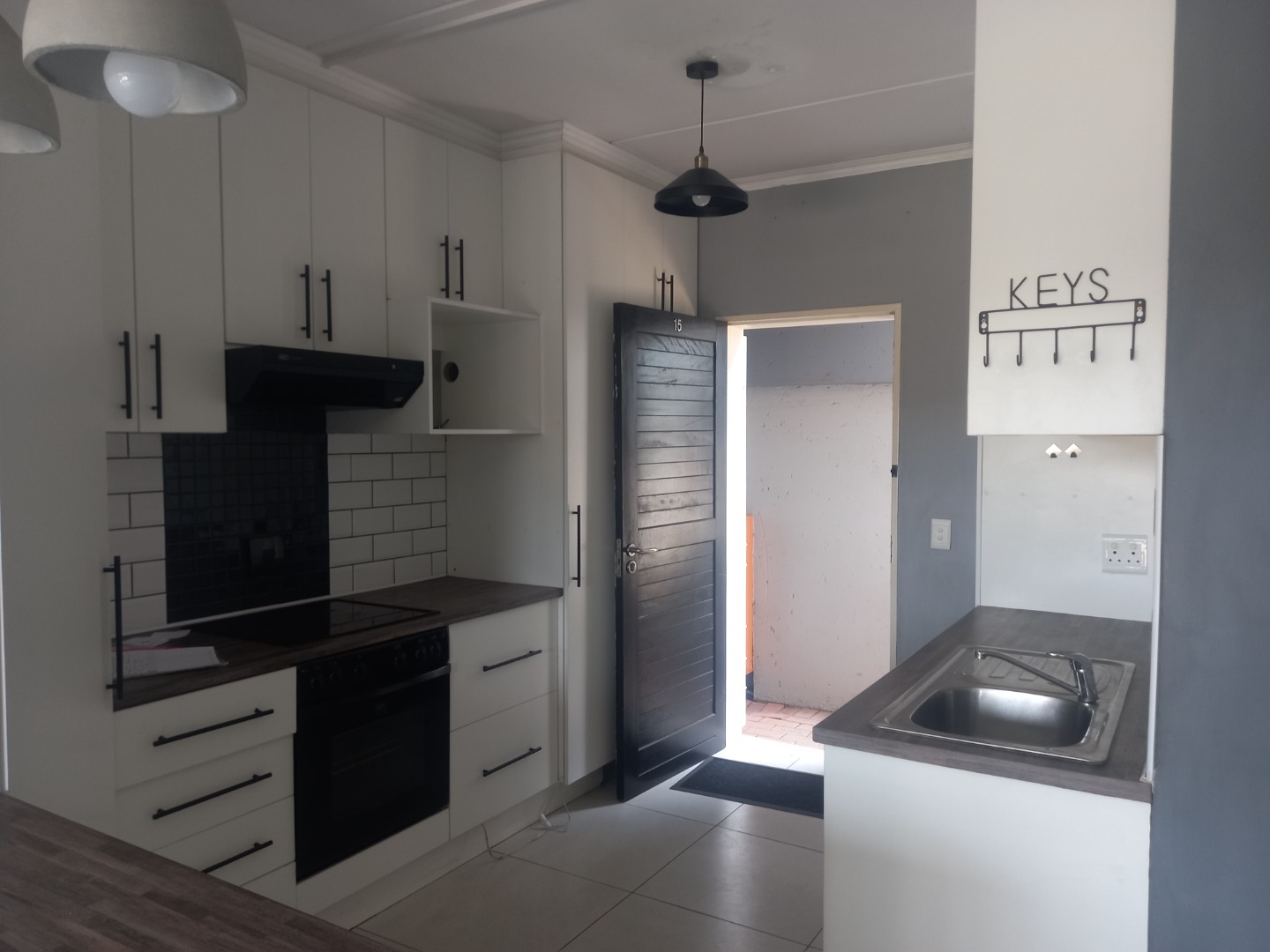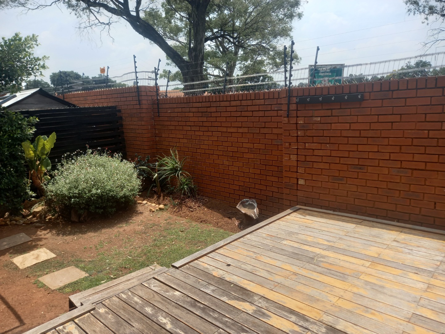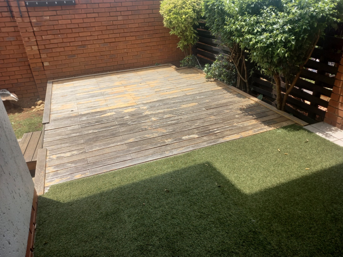Discover this inviting 3-bedroom, 2-bathroom residence located in a desirable cul-de-sac within a secure complex in Florentia, Alberton. The interior boasts a functional layout featuring a comfortable lounge, a dedicated dining room, and a well-appointed kitchen. Throughout the home, durable tiled flooring ensures easy maintenance, while bedrooms offer practical built-in cupboards for ample storage. The two bathrooms present a modern aesthetic, highlighted by stylish marble-look wall tiles and contemporary fixtures. One bathroom includes a sleek bathtub with a glass shower screen, while the other features a rainfall showerhead, providing a refreshing experience. Natural light filters through windows, many fitted with security bars for peace of mind. Step outside to a private outdoor area designed for relaxation and low maintenance. This space features a wooden deck, perfect for outdoor living, complemented by artificial turf and established greenery. Sliding doors seamlessly connect the interior to this tranquil retreat. The property also includes two dedicated parking spaces. Security is a priority, with high brick walls, electric fencing, burglar bars, and security gates ensuring a safe living environment. This suburban home offers a blend of comfort, modern finishes, and robust security features, making it an ideal choice for discerning buyers. **Key Features:** * 3 Bedrooms, 2 Bathrooms * Modern Bathroom Finishes * Private Wooden Deck * Electric Fencing & Burglar Bars * Built-in Cupboards * Tiled Flooring Throughout * 2 Parking Spaces * Access Gate