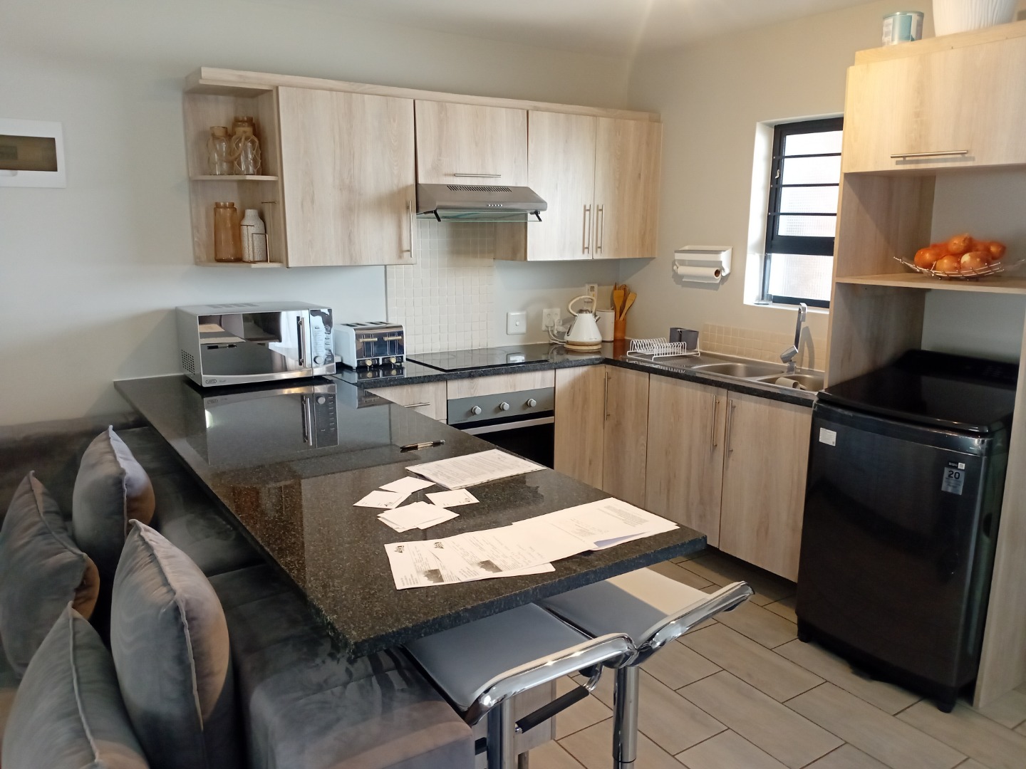Stylish kitchen with granite countertops and modern built-in cupboards