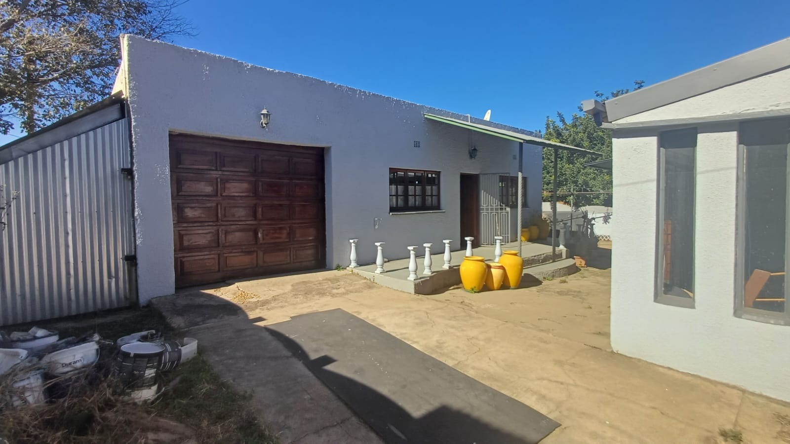 Outside ther is a spacious flatlet equipped with two bedrooms with built in wardrobes, bathroom with showere, kitchenette with built in cupboards and open plan lounghe and dinning room. This can also be used for extra rental income or as space for guests. There is also a single garage attached to this flatlet. A large garden perfect for outdoor activities, gardening, or simply enjoying nature. Ample parking space for extra cars is available in the form of a carport for four cars and more parking space. The electricity in this home is on pre paid smart meter. The two garden sheds are a bonus in this home. The whole house has burglar bars for great security.