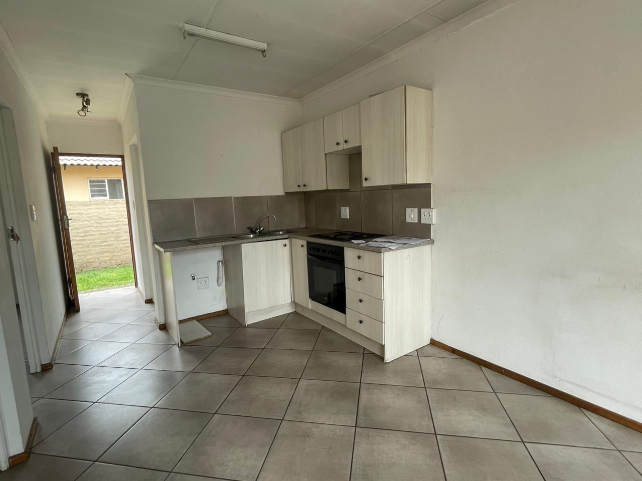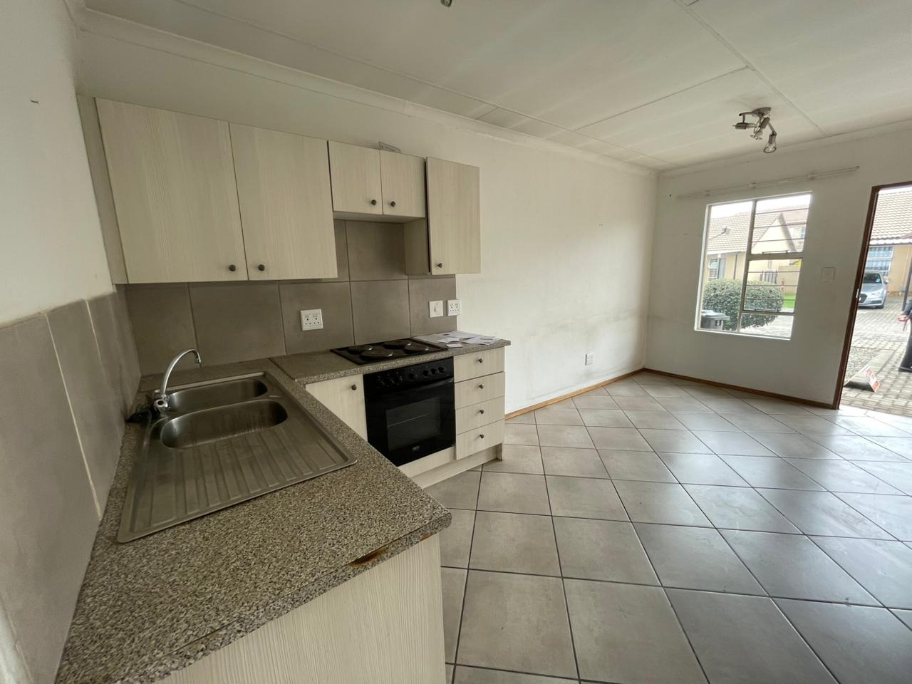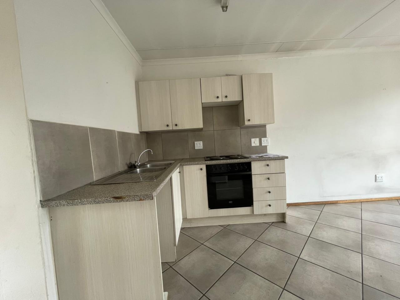Step inside to discover a functional 46 sqm floor plan designed for comfortable living. The open-plan layout seamlessly connects the lounge and kitchen areas, creating an airy and versatile space. The kitchen is equipped with a built-in oven and hob, ample cabinetry, and a double sink, catering to everyday culinary needs. Tiled flooring extends throughout the unit, offering easy maintenance and a clean aesthetic. While the interior presents a solid foundation, some areas show signs of wear, suggesting an opportunity for cosmetic updates to truly make it your own.