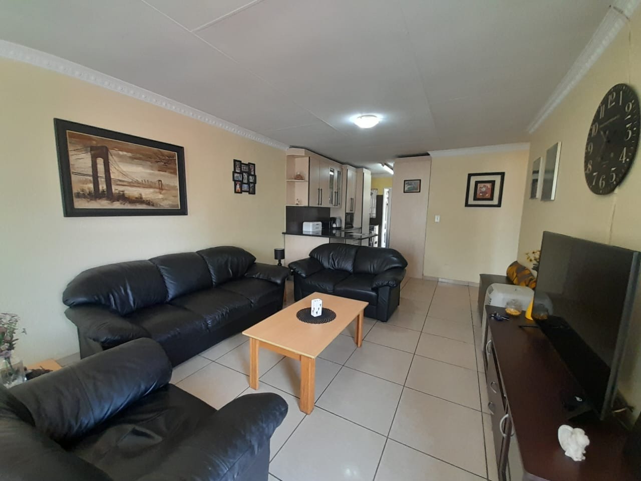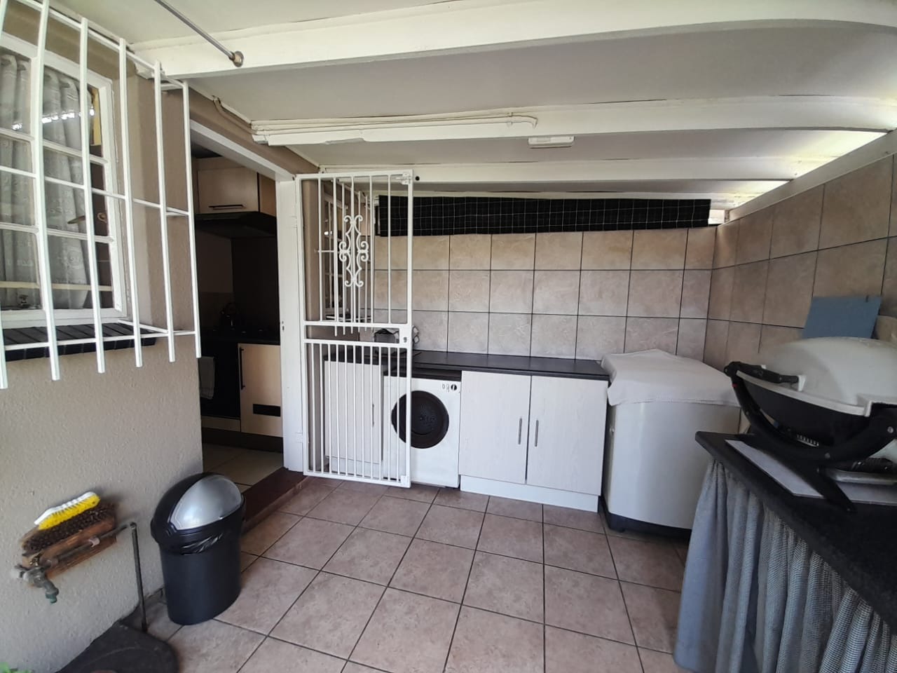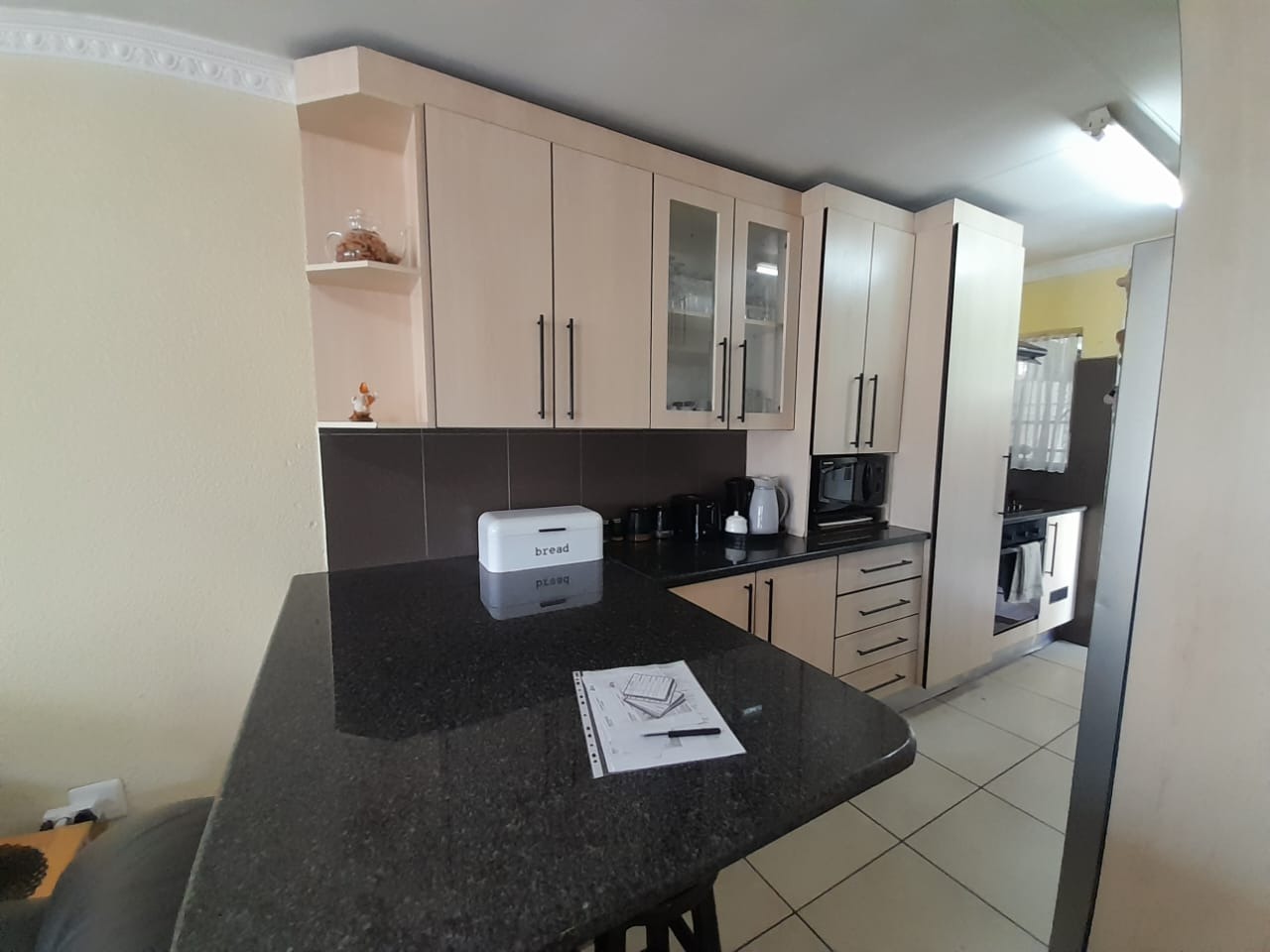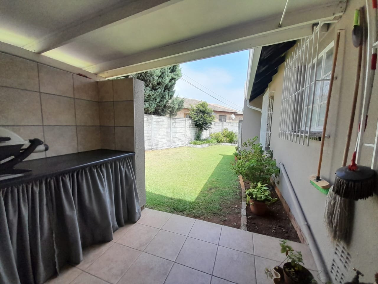 This meticulously maintained residence is situated within a secure, gated community in Albertsdal, Alberton, offering a tranquil suburban lifestyle. The property presents a neat single-story facade with a modern grey tiled roof, light-colored walls, and a welcoming front patio, enhancing its kerb appeal. The paved driveway provides convenient parking for two vehicles, including a covered carport. Upon entry, the home reveals an open-plan living and dining area, characterized by durable tiled flooring, neutral wall tones, and elegant crown molding. This seamless flow creates an inviting atmosphere for both relaxation and entertaining. The functional kitchen is appointed with light wood-look cabinetry, dark granite countertops, and integrated appliances, complemented by a practical breakfast bar. Adjacent to the kitchen, a dedicated scullery/laundry area features a double stainless steel sink and provisions for a washing machine, ensuring optimal utility. Accommodation comprises two well-proportioned bedrooms and a single, comprehensively fitted bathroom, designed for comfort and practicality. The property's outdoor amenities include a well-kept garden and paved areas, ideal for low-maintenance living. Security is paramount within this complex, featuring 24-hour security, an alarm system, electric fencing, burglar bars, and security gates, providing residents with peace of mind. Furthermore, the residence is wheelchair-friendly and accommodates pets. Key Features: * Two bedrooms, one bathroom * Open-plan living and dining area * Modern kitchen with granite countertops * Dedicated scullery/laundry area * Secure gated community with 24-hour security * Alarm system, electric fencing, burglar bars, security gates * Paved driveway with covered carport * Pet-friendly and wheelchair accessible