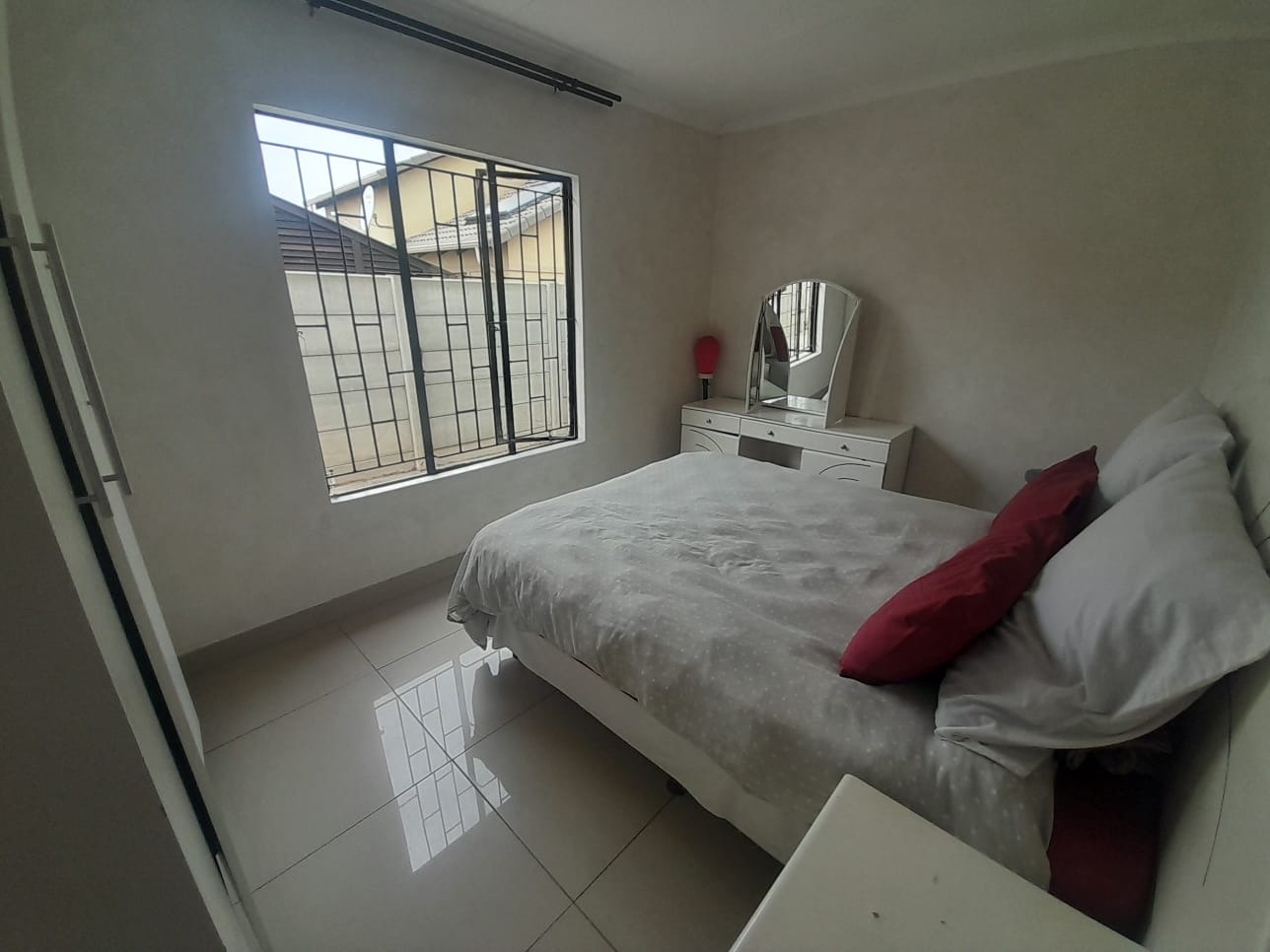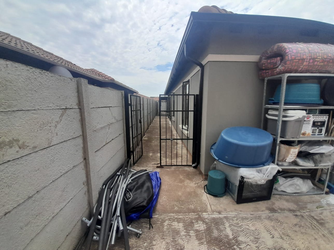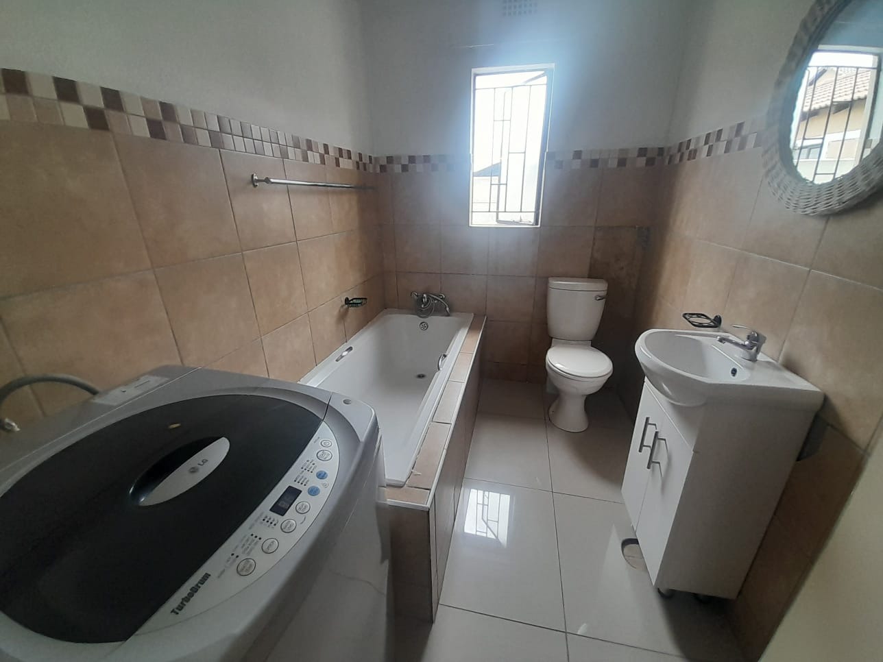 Further enhancing its appeal, this home is equipped with modern sustainability features, including solar panels and a solar geyser, contributing to energy efficiency. Security is paramount, with an alarm system and burglar bars on windows providing peace of mind. Additional amenities include domestic rooms and dedicated storage space.