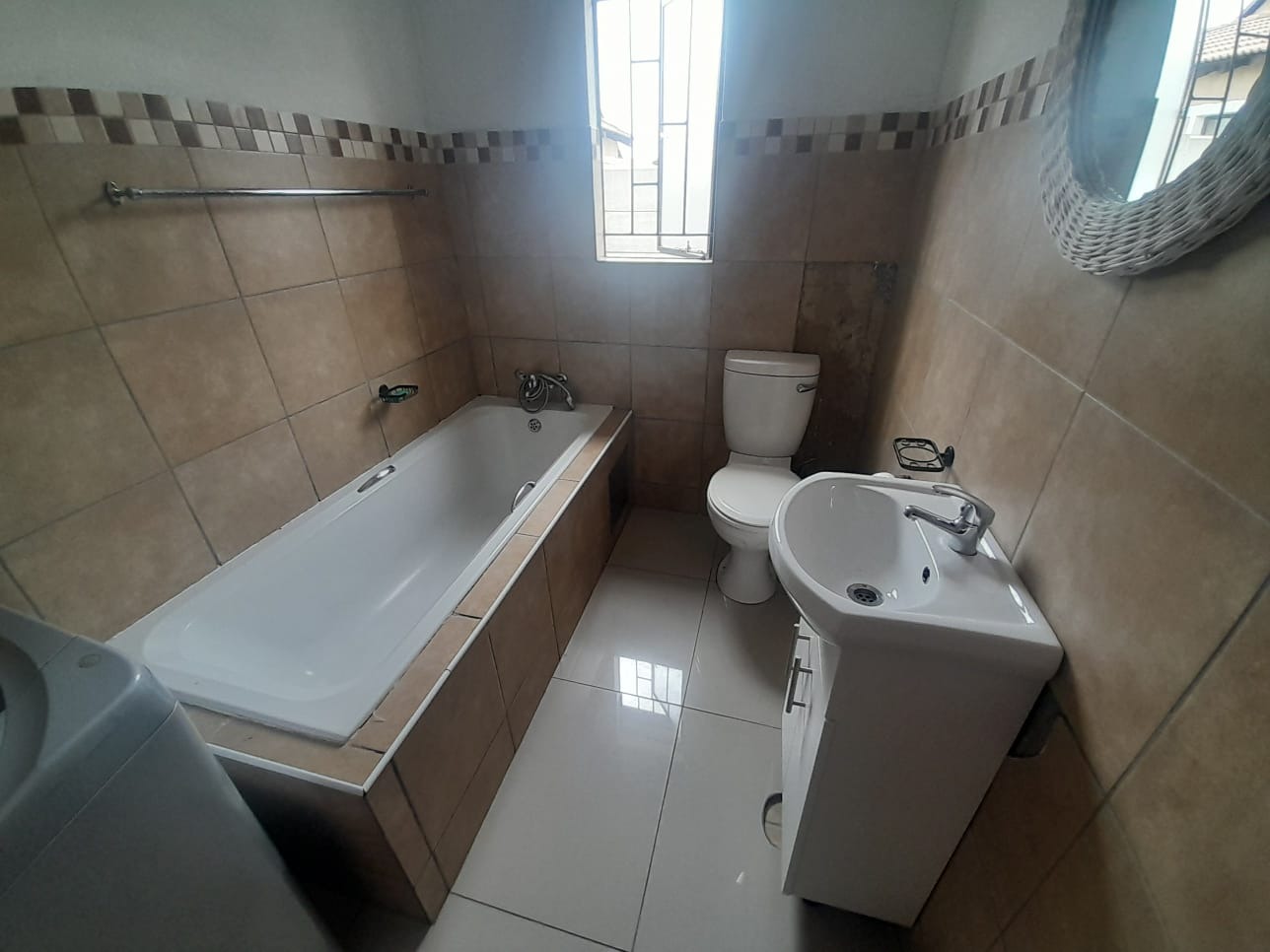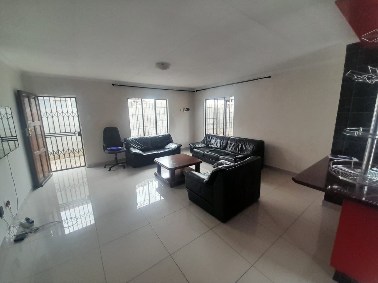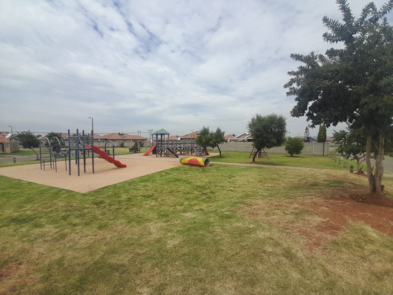Further enhancing its appeal, this home is equipped with modern sustainability features, including solar panels and a solar geyser, contributing to energy efficiency. Security is paramount, with an alarm system and burglar bars on windows providing peace of mind. Additional amenities include domestic rooms and dedicated storage space.