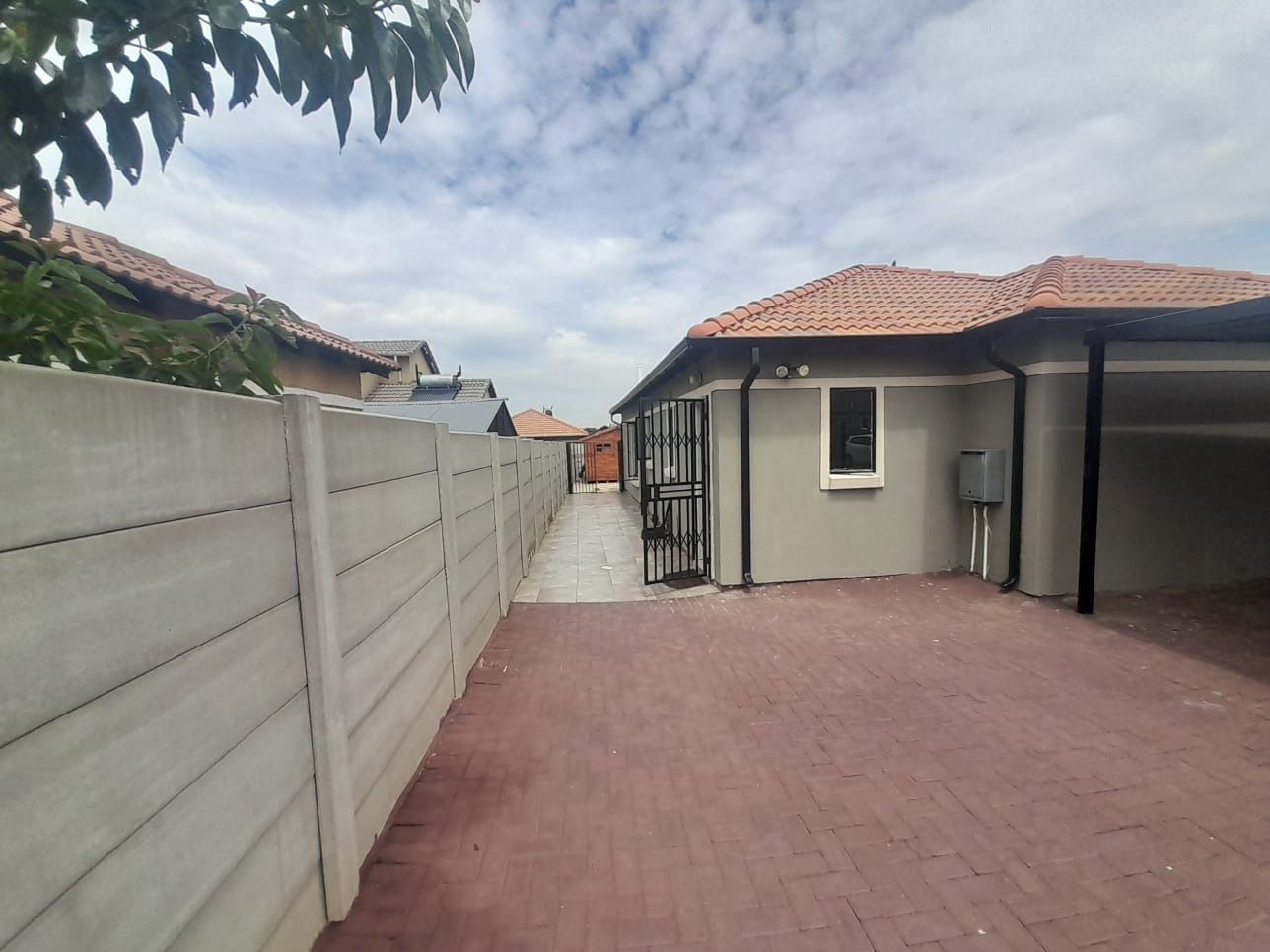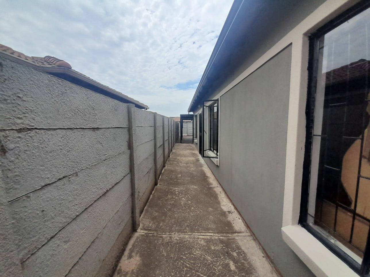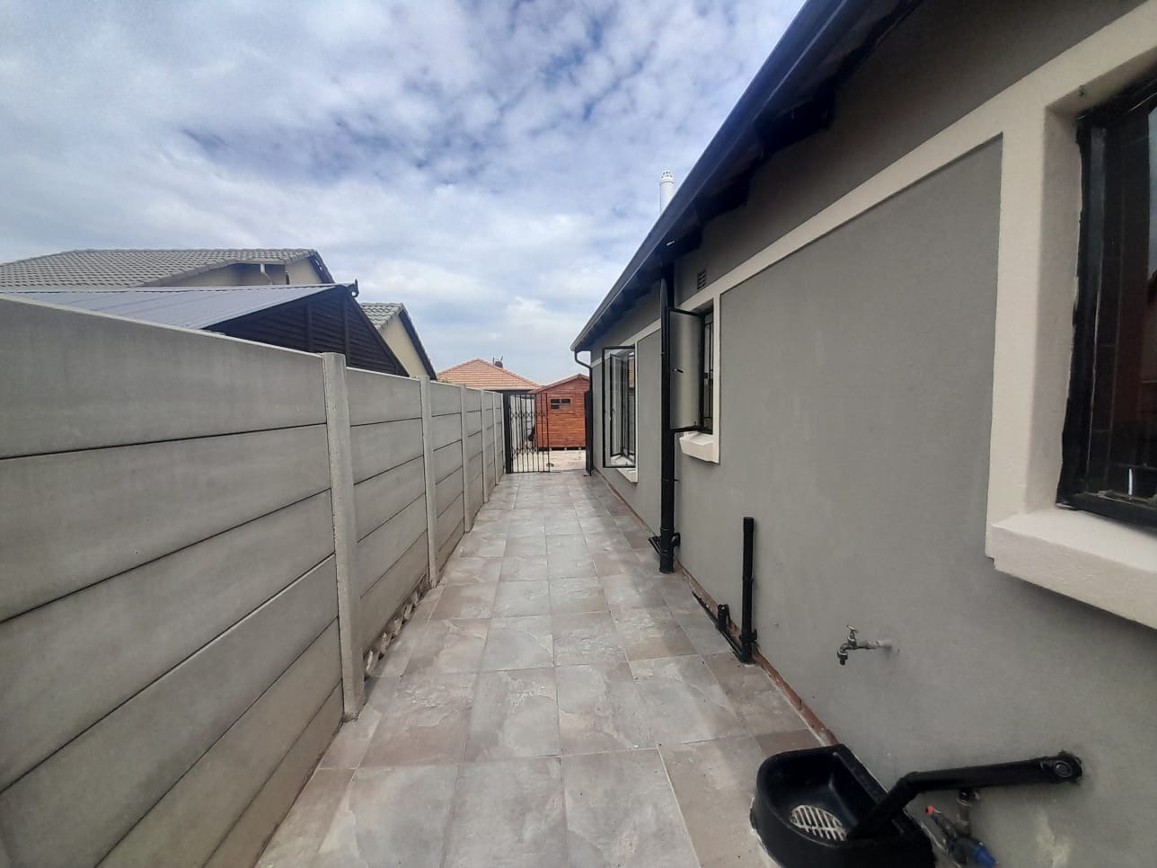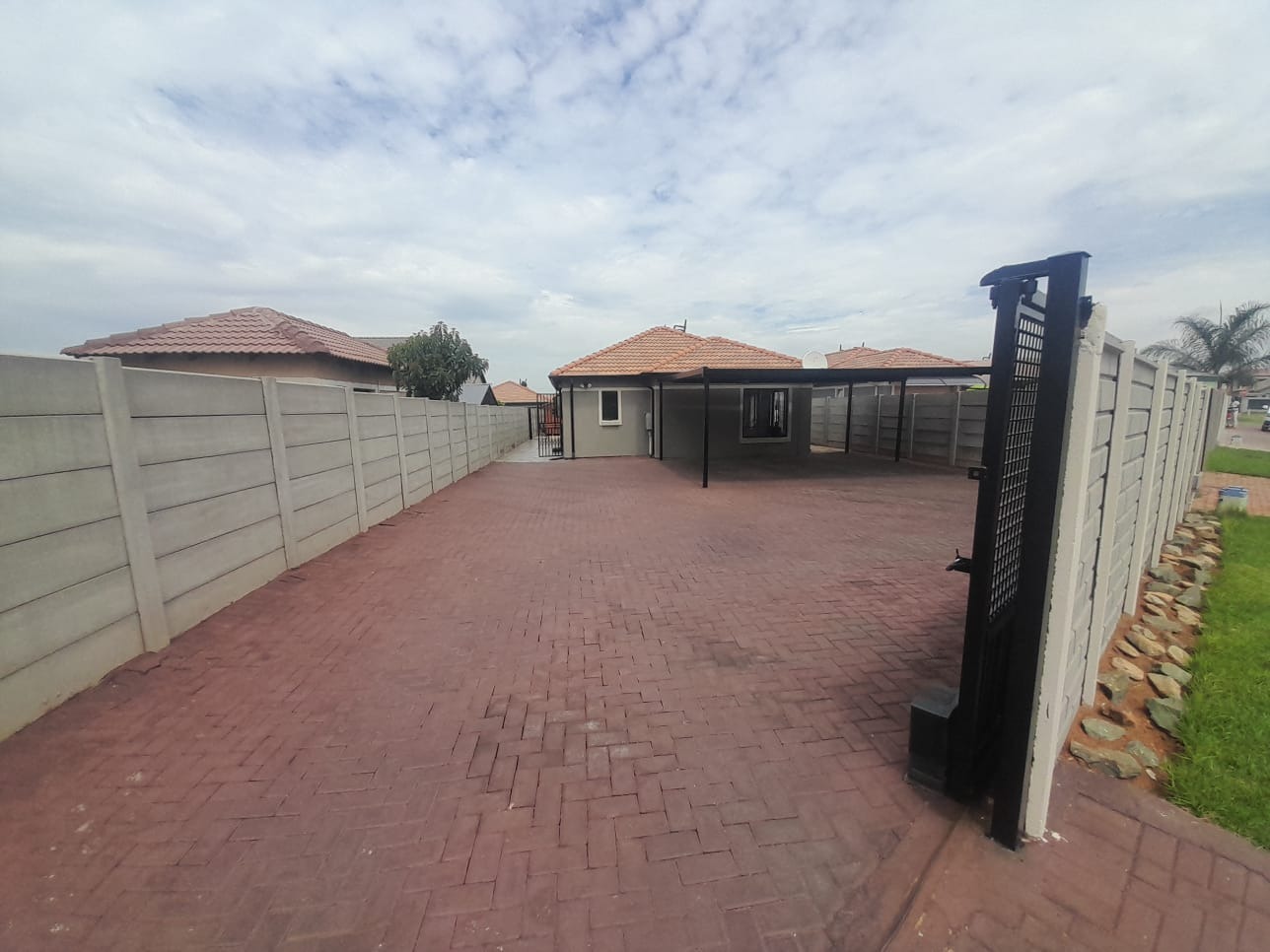 This secure and modern 3-bedroom, 2-bathroom residence is ideally situated in the suburban area of Albertsdal. The property immediately impresses with its robust kerb appeal, featuring a fully paved front yard and driveway, offering ample parking for up to three vehicles under an extended carport. High precast concrete perimeter walls and an automated access gate ensure privacy and enhanced security, creating a low-maintenance exterior that is both practical and appealing.