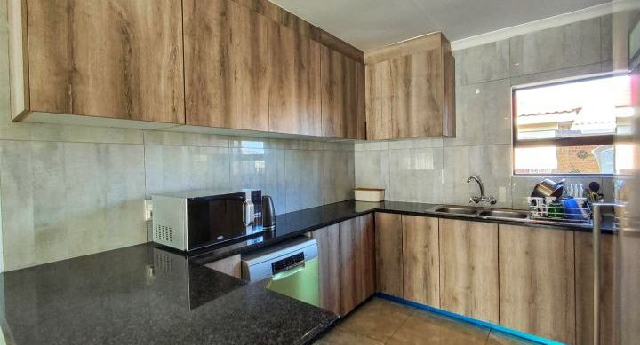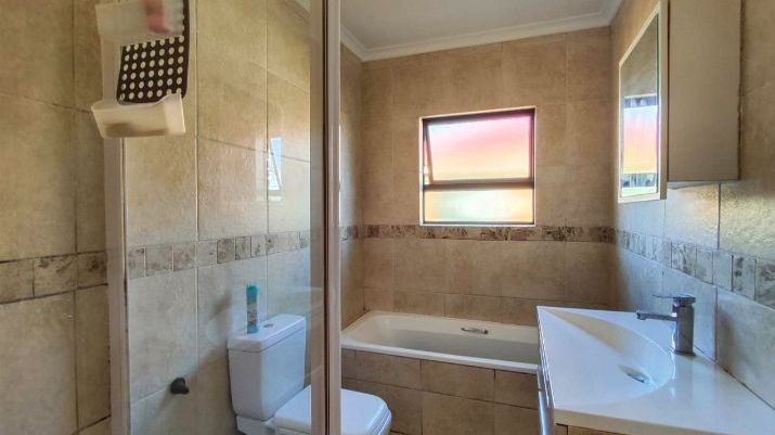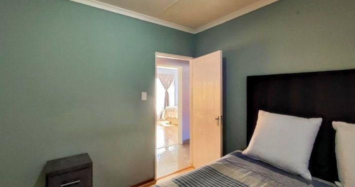 This beautifully maintained facebrick home is set in a secure, free-standing complex, offering comfort and modern finishes throughout. It features three spacious bedrooms with laminated flooring and built-in cupboards. The main bedroom includes a full en-suite bathroom, while a second, modern guest bathroom offers a shower for added convenience.