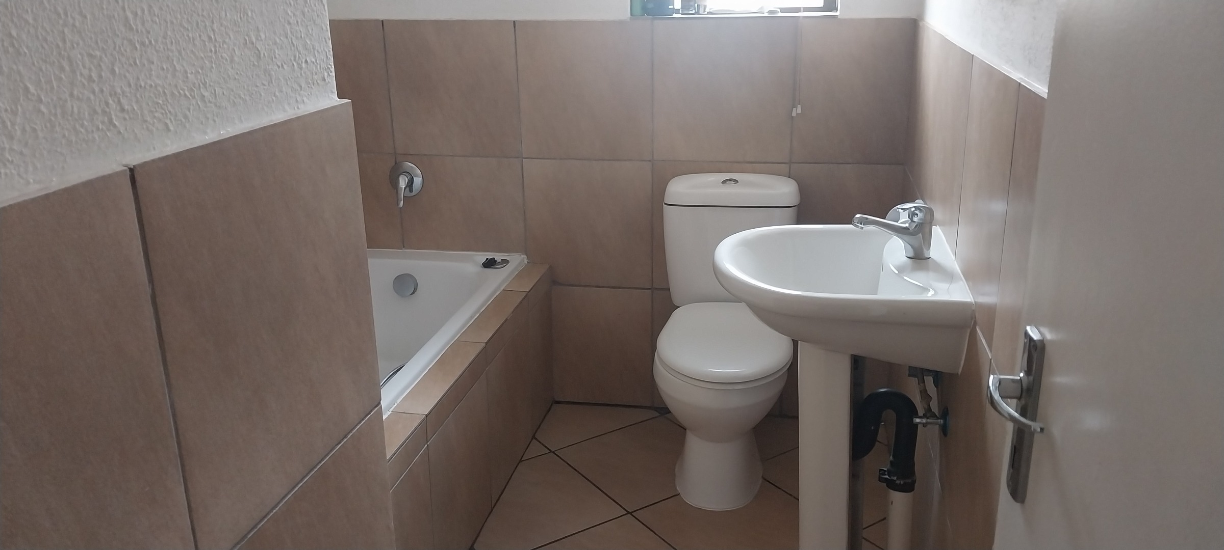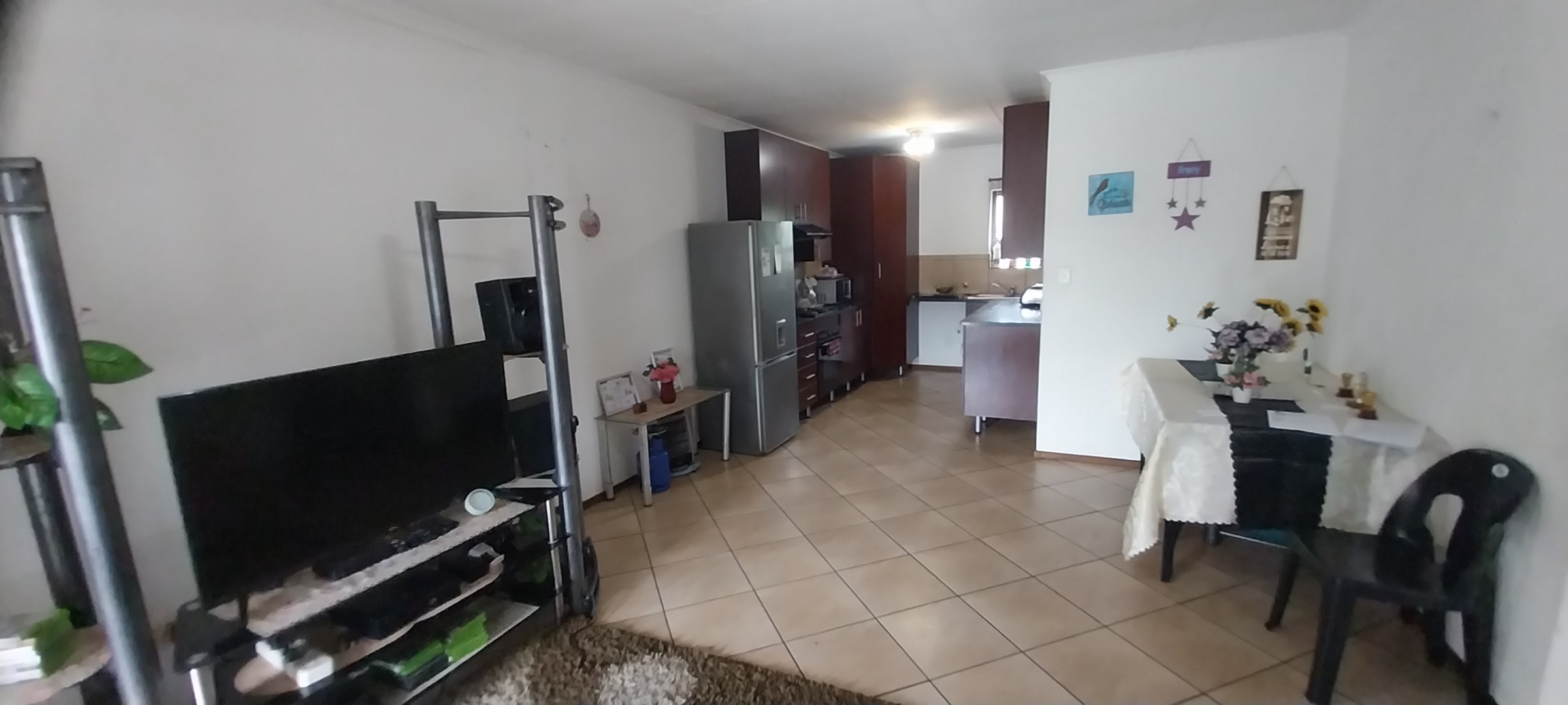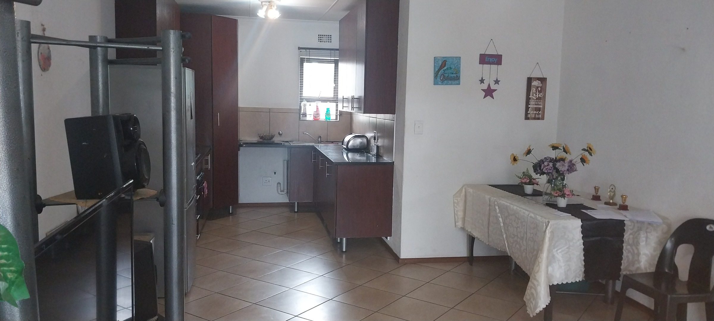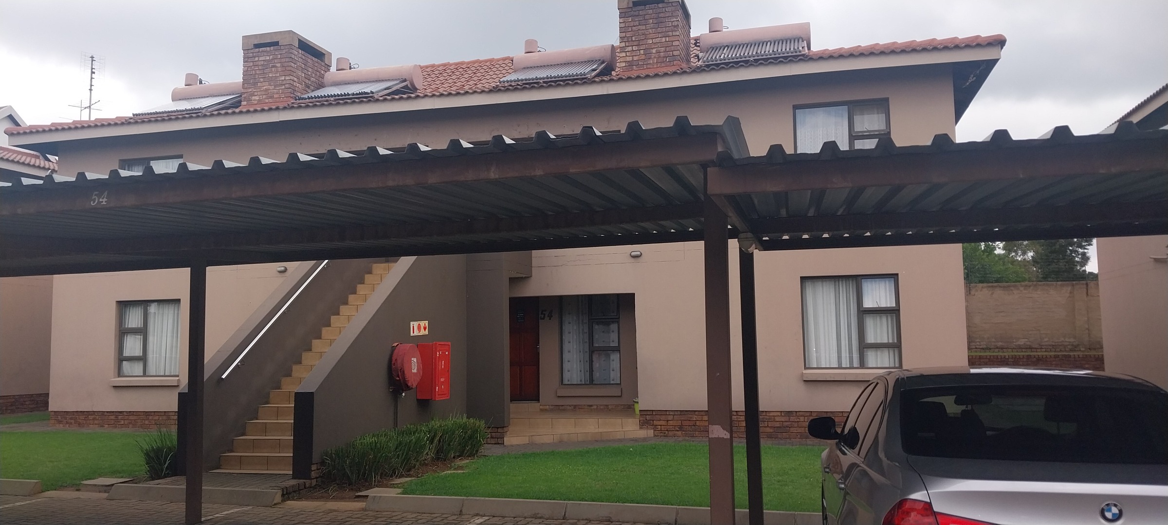 Situated within the desirable suburban enclave of Albertsdal, Alberton, this property offers a tranquil residential experience. Its location within a cul-de-sac ensures minimal through traffic, contributing to a peaceful living environment. The exterior presents a multi-unit structure with a light brown facade, featuring a central tiled staircase adorned with a contemporary metal handrail, providing access to upper levels. Modern window frames enhance the aesthetic, ensuring a distinct presence. This meticulously designed unit spans 68.00 square metres, offering an intelligently configured open-plan layout. The residence comprises a well-appointed kitchen, a dedicated dining area, and a comfortable lounge, facilitating seamless interaction and modern living. Sliding doors provide access to a private balcony, extending the living space outdoors. Accommodation includes three generously proportioned bedrooms, ensuring ample personal space. The property features two bathrooms, with one being an en-suite, providing enhanced privacy and convenience for residents. Further enhancing the lifestyle offering, the unit includes two dedicated parking bays. A private garden area and paved sections contribute to the outdoor amenity. Security is paramount, with features such as an access gate, electric fencing, and 24-hour security ensuring peace of mind. The inclusion of a solar geyser underscores a commitment to energy efficiency, while a satellite dish provides connectivity for entertainment. Key Features: * Three Bedrooms, Two Bathrooms (one en-suite) * 68.00 sqm Floor Size * Open-Plan Living Area * Private Balcony with Sliding Doors * Two Dedicated Parking Bays * Private Garden Area * 24-Hour Security, Access Gate, Electric Fencing * Solar Geyser and Satellite Dish