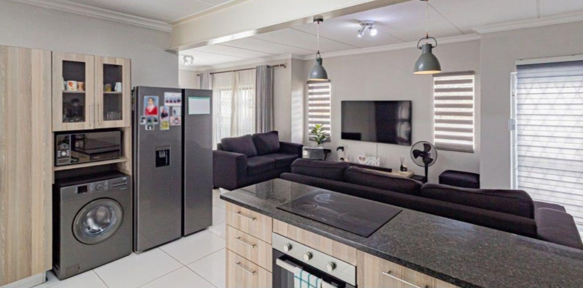 Discover a sophisticated urban sanctuary nestled within a desirable complex in Albertsdal, Alberton. This meticulously designed residence, spanning 106 square metres, offers an exquisite blend of comfort and contemporary living, perfect for discerning individuals or families seeking a refined lifestyle. The interior boasts a seamless flow, featuring a spacious lounge that serves as the heart of the home, ideal for both intimate gatherings and grand entertaining. The well-appointed kitchen provides a functional yet elegant space for culinary pursuits.