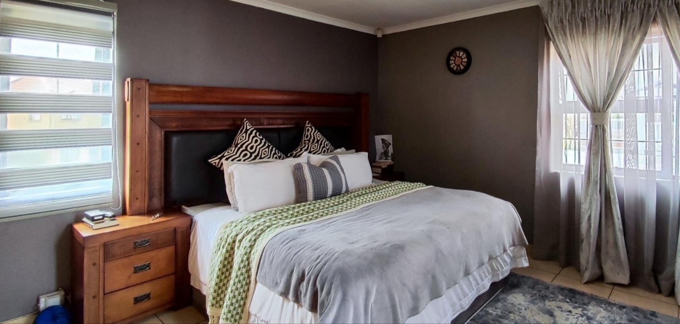 Set on a generous 585 sqm erf with a floor size of 172 sqm, the exterior boasts a private garden and a refreshing swimming pool, ideal for leisure and recreation. Parking is well catered for with a double garage and two additional parking spaces. Residents benefit from a secure environment with features such as electric fencing, an access gate, a security post, and 24-hour security. The estate also includes a clubhouse, enhancing the community lifestyle. With fibre connectivity and a pet-friendly policy, this home is ready to welcome its new owners.