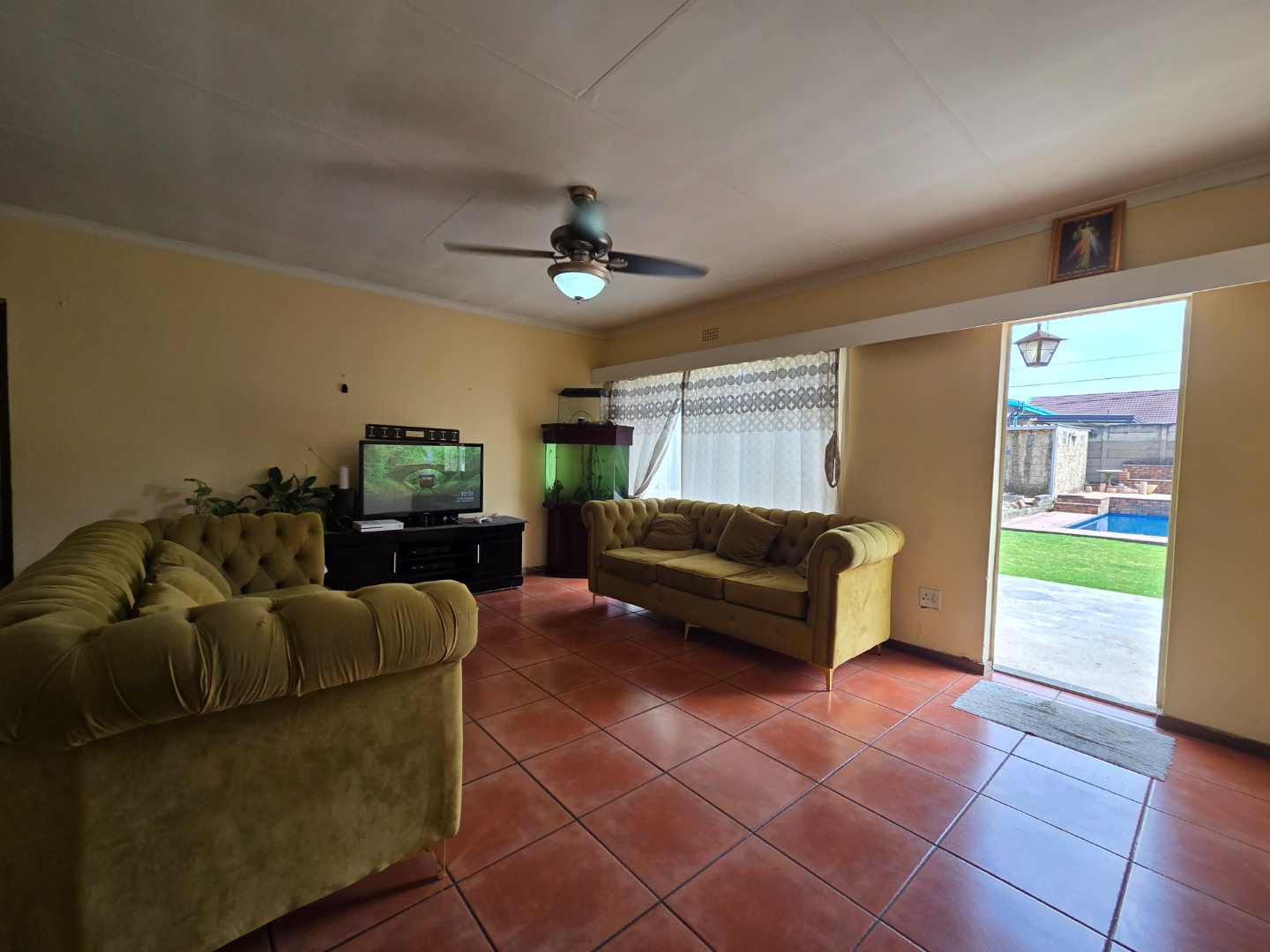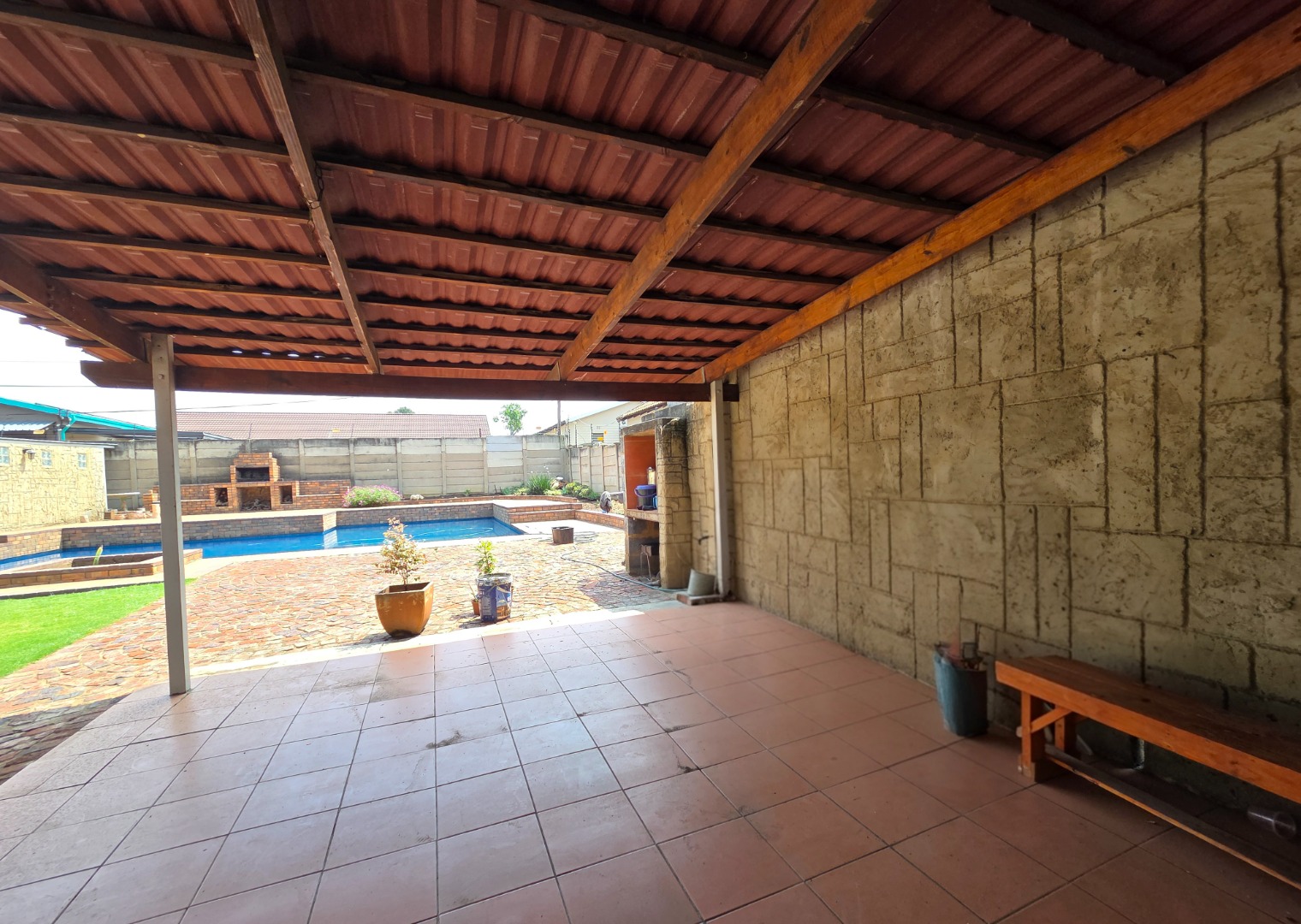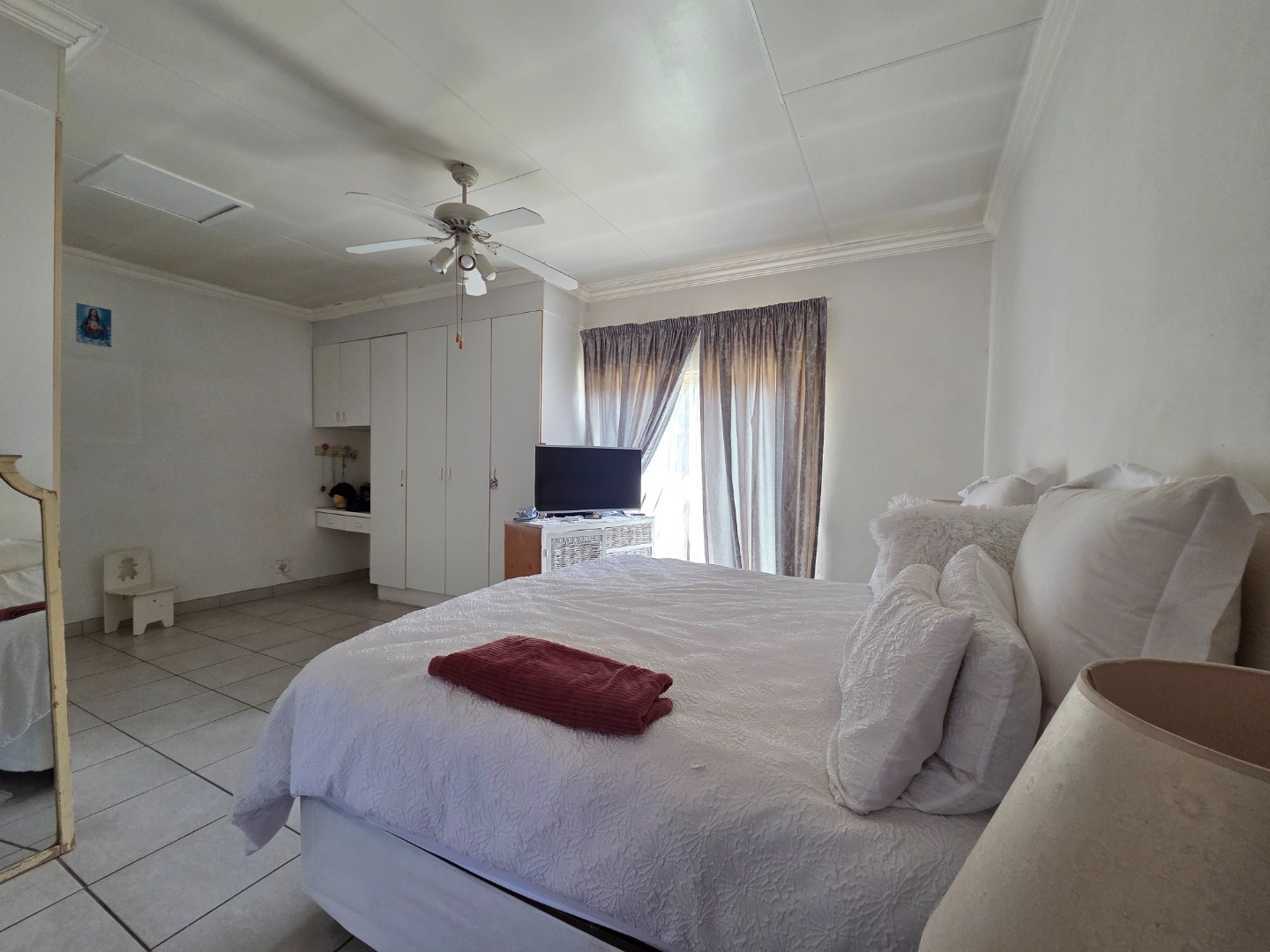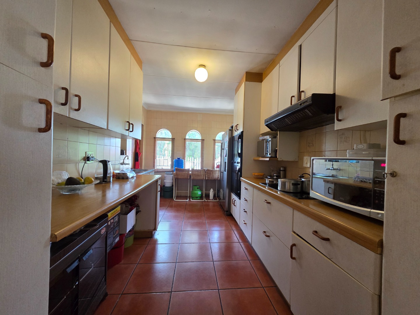 Security is a top priority with features including an alarm system, burglar bars, electric gate, and full boundary walls. The home also offers double tandem garages and is situated in a safe, quiet neighborhood.