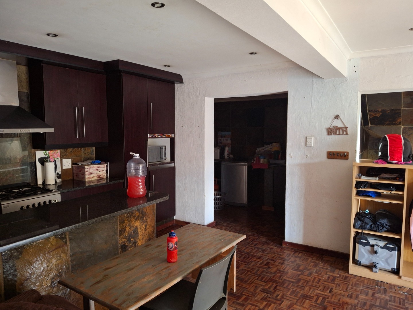 Externally, the property excels with a substantial swimming pool, creating an idyllic setting for leisure and recreation, evoking a perpetual holiday ambiance. Practical amenities include a double garage providing secure parking for two vehicles, supplemented by ample additional parking space within the paved driveway. Furthermore, the property features staff quarters, outside toilets, and dedicated storage facilities. A significant value-add is the impressive double-story flatlet, offering two bedrooms, a bathroom, a lounge, a kitchen, and a study. This self-contained unit presents an ideal solution for extended family accommodation or a substantial income-generating opportunity. Enhanced security features such as electric fencing, burglar bars, and security gates, along with fibre connectivity, ensure a secure and modern lifestyle.