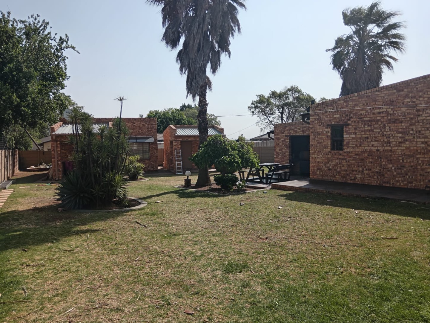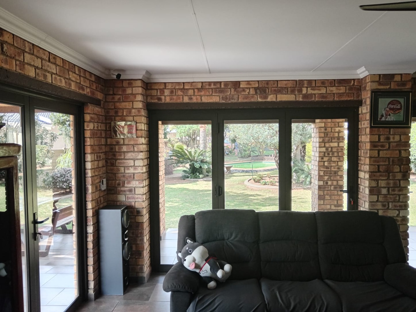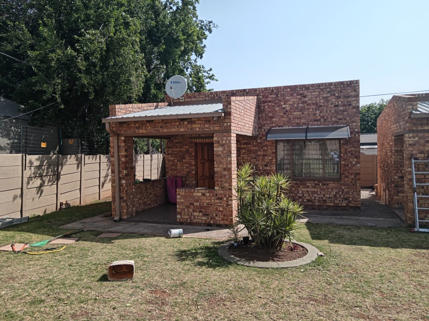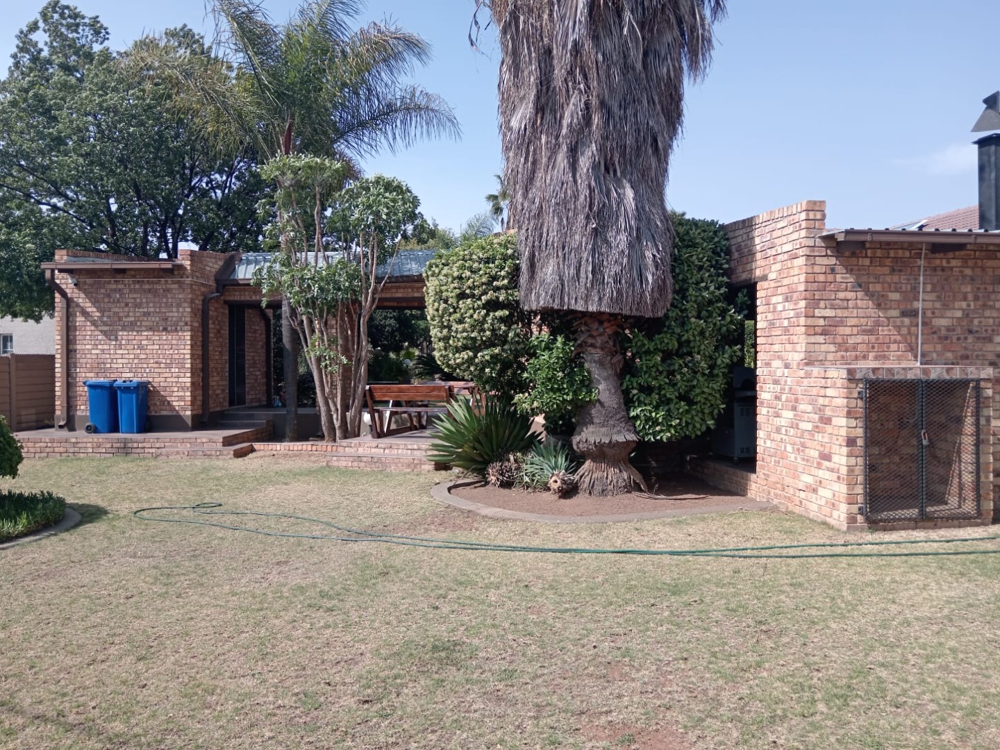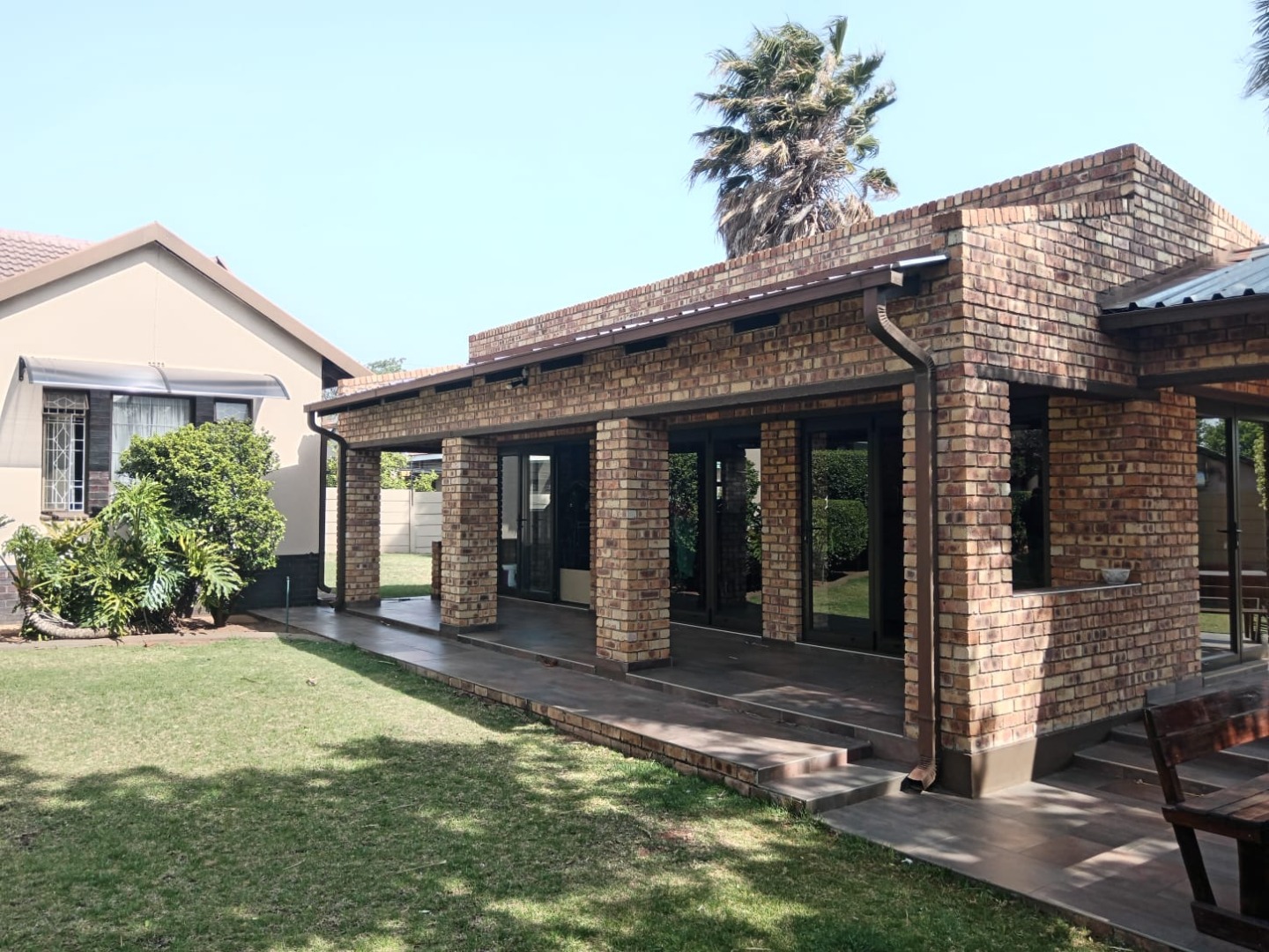 The outside offers a beautifully landscaped garden featuring a thatched covered patio with a built-in braai—perfect for al fresco dining. Dive into the sparkling pool or unwind in the expansive entertainment area, complete with a 12-seater bar that promises endless fun and a gas spit braai to provide meals whiles you are at it. Additional amenities include his and hers outdoor toilets, another charming thatch area with a bar counter, as well as a flat-let and storeroom for extra versatility, rainwater catchment system to maintain the stunning garden. Parking will never be an issue with the tandem covered carport offering ample parking space for your guests