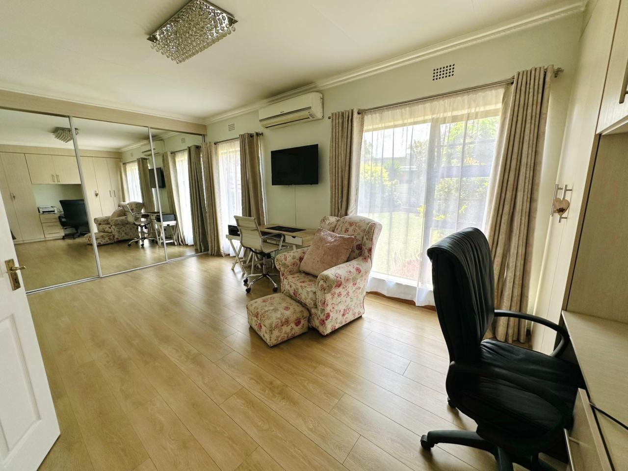 Step outside and discover an entertainer’s paradise — a tiled lapa and louvred patio with a built-in braai overlooking the sparkling pool, perfect for hosting family and friends in style.