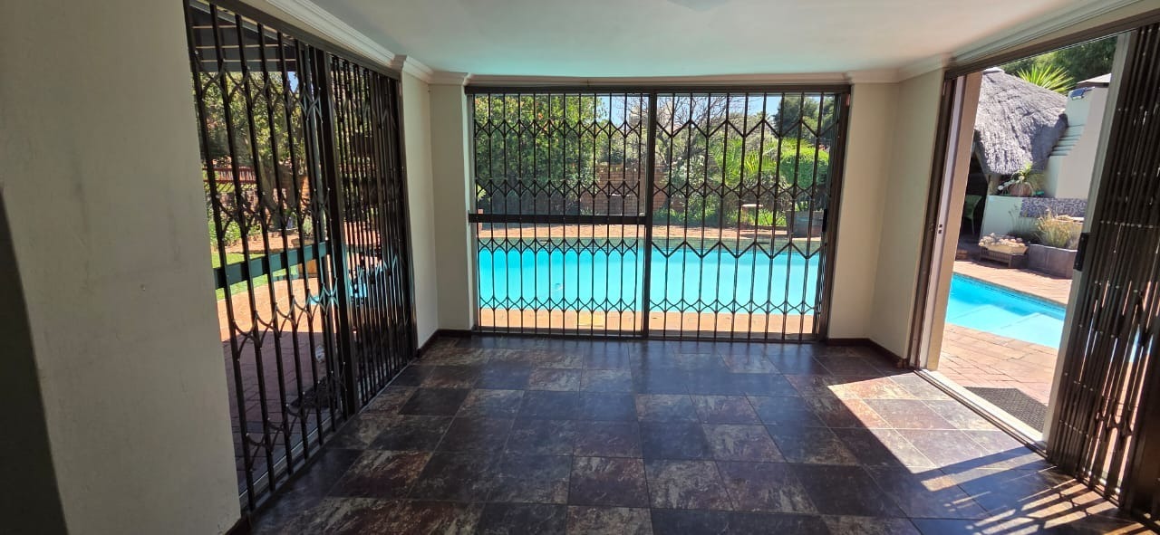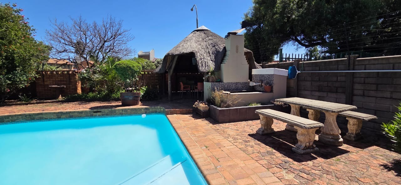 Outdoor living is designed for enjoyment. A lapa with a built-in braai overlooks the sparkling swimming pool and garden, creating the perfect setting for weekend braais, family gatherings, or relaxing afternoons outdoors.