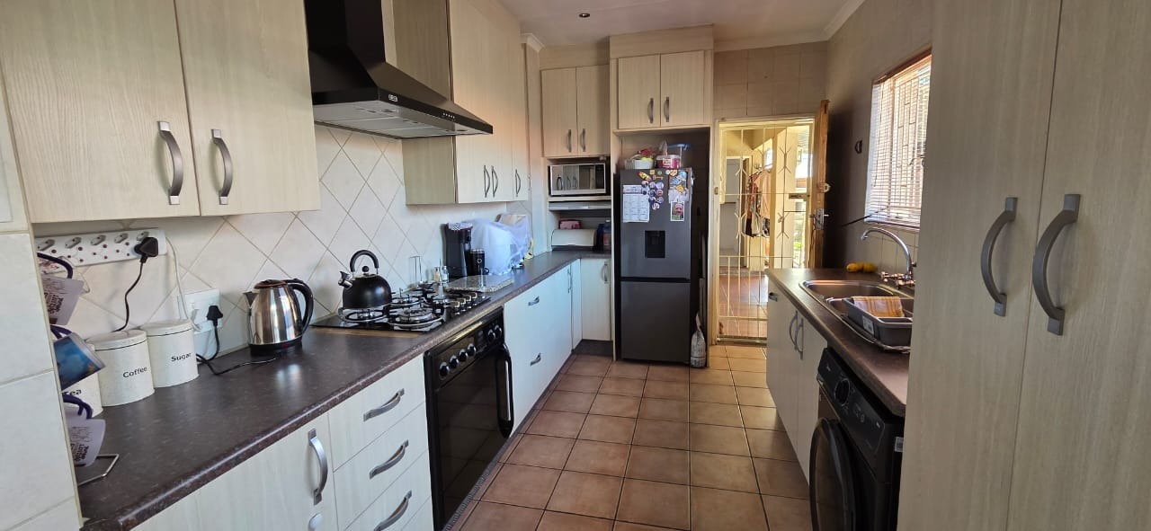 Adding exceptional value to the property is a beautiful and well-appointed separate cottage with its own private entrance, offering ideal accommodation for extended family, guests, or the opportunity to generate rental income. The cottage welcomes you through a sliding door with aluminium windows into a bright open-plan tiled living area fitted with blinds, creating a comfortable and inviting space. It further offers a well-sized bedroom with built-in cupboards and a modern bathroom fitted with a walk-in shower, basin, and toilet, complemented by a gas geyser. The kitchen is thoughtfully designed and fitted with a gas hob and electric oven, making this cottage both practical and fully functional for independent living.