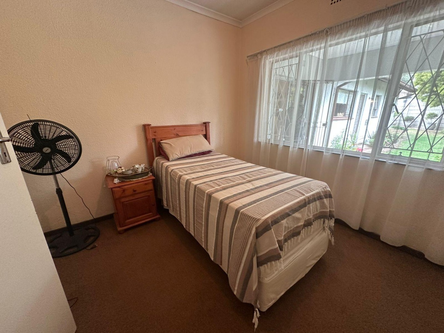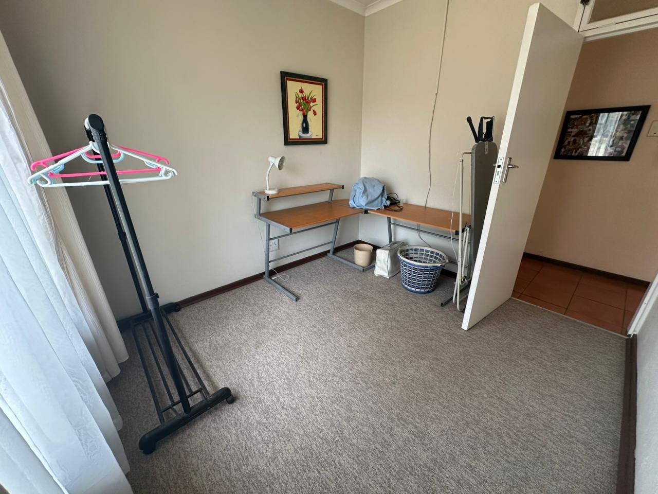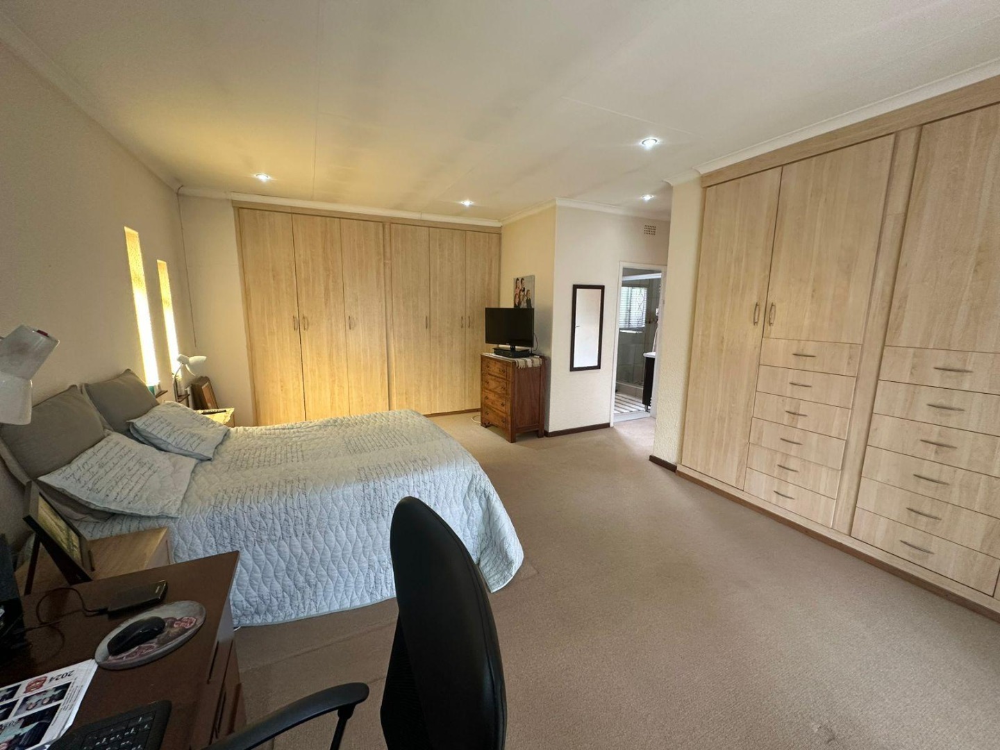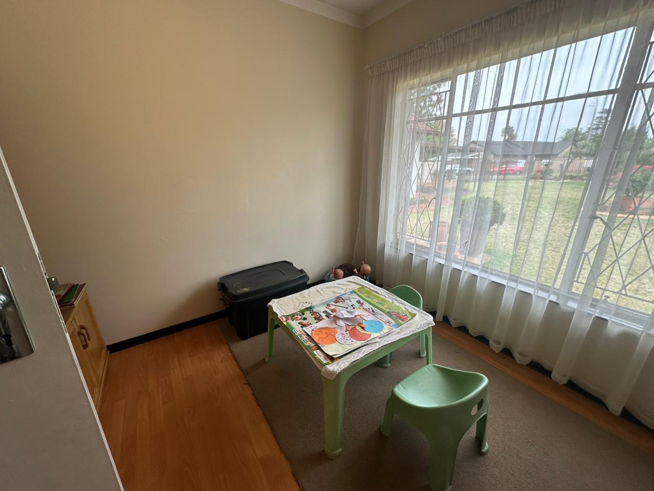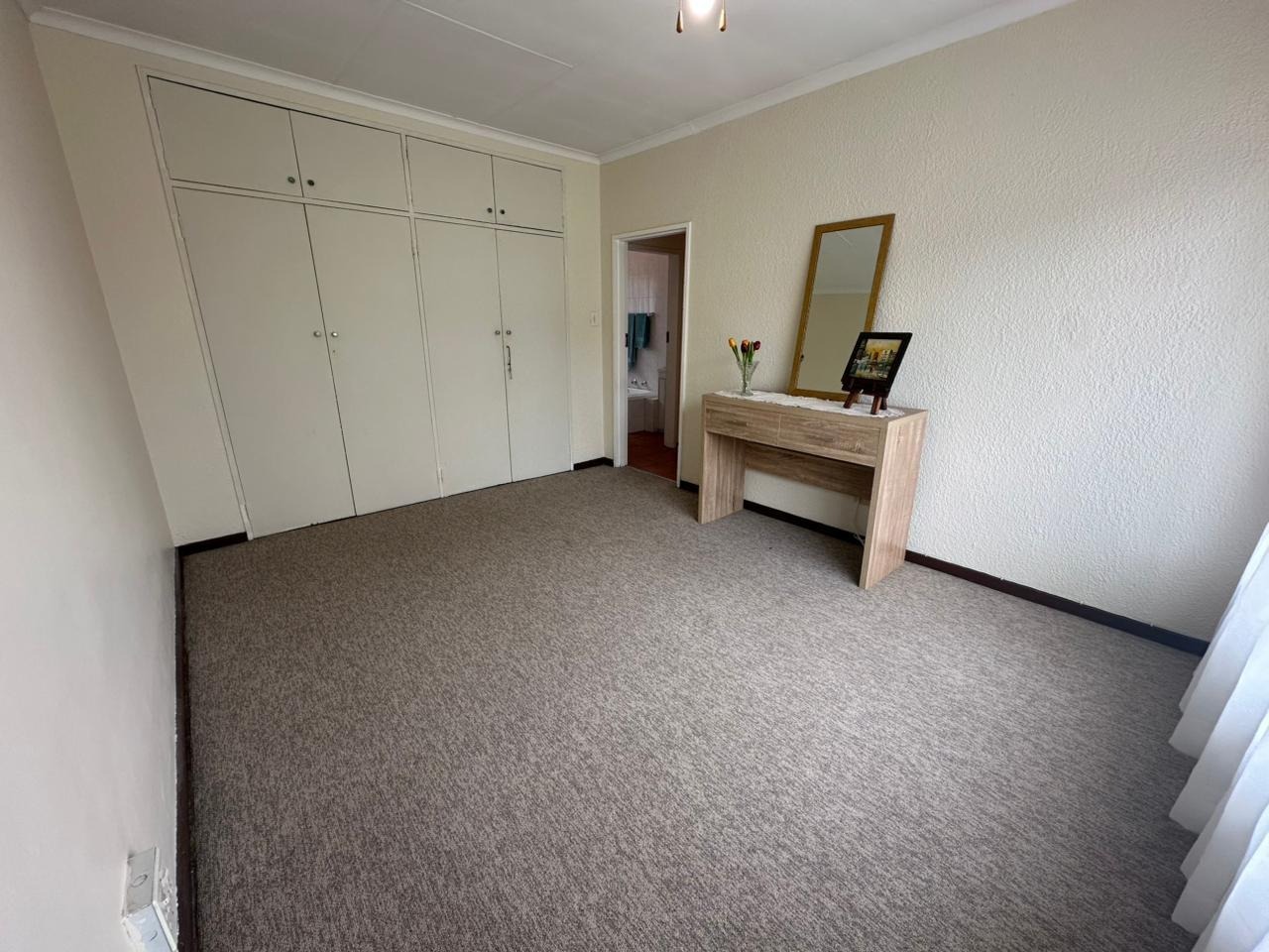 The third bedroom features laminate flooring and built-in cupboards.