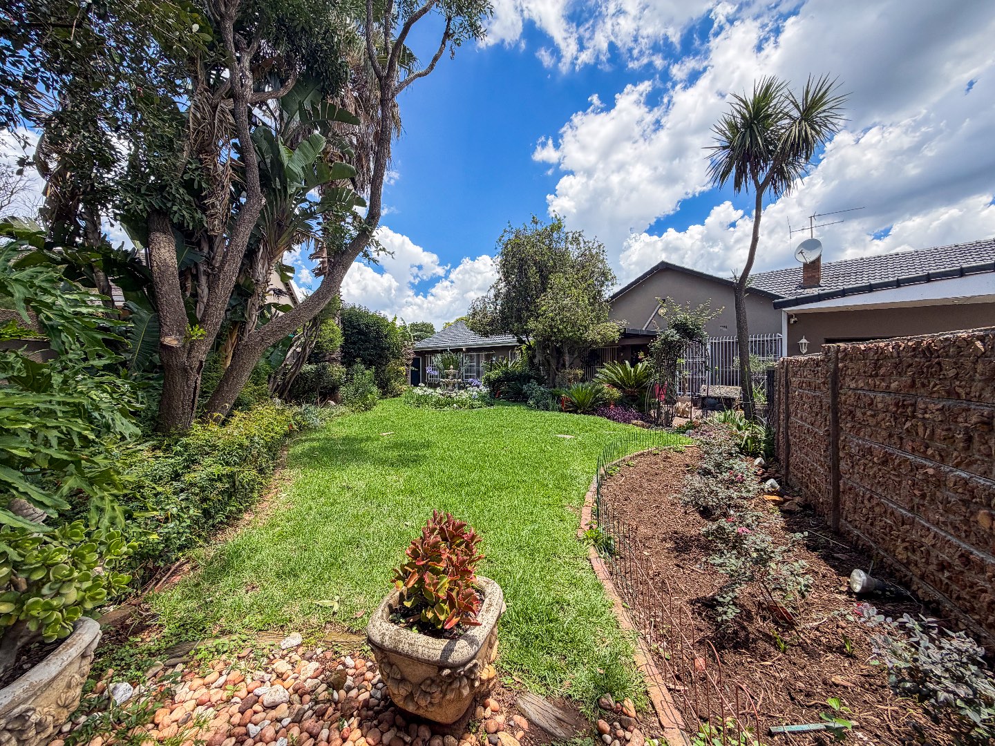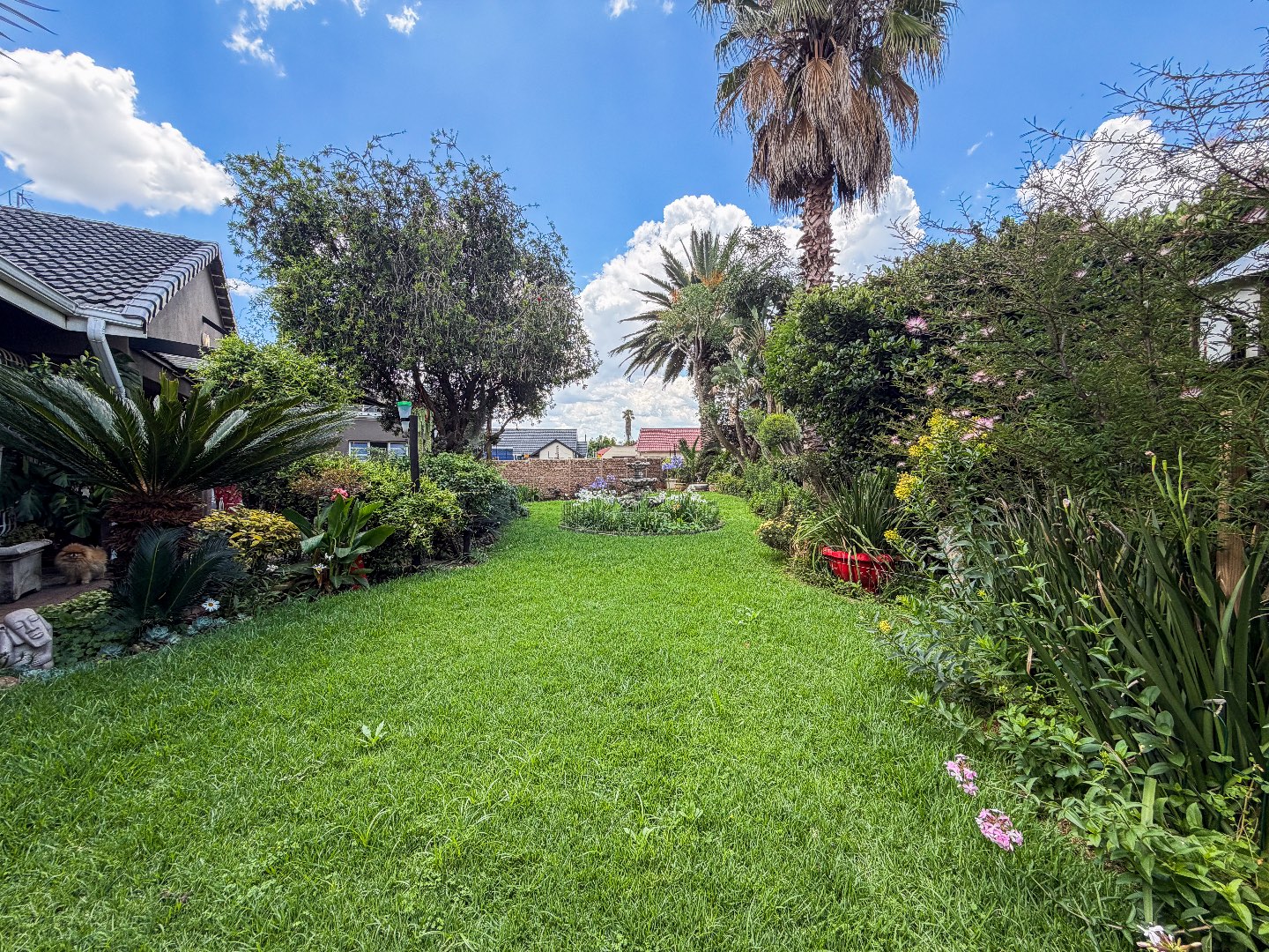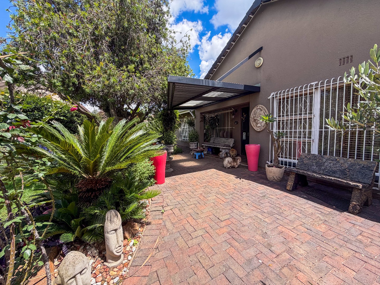 A beautifully maintained front garden—complete with a tranquil water feature—welcomes you as you approach the entrance.