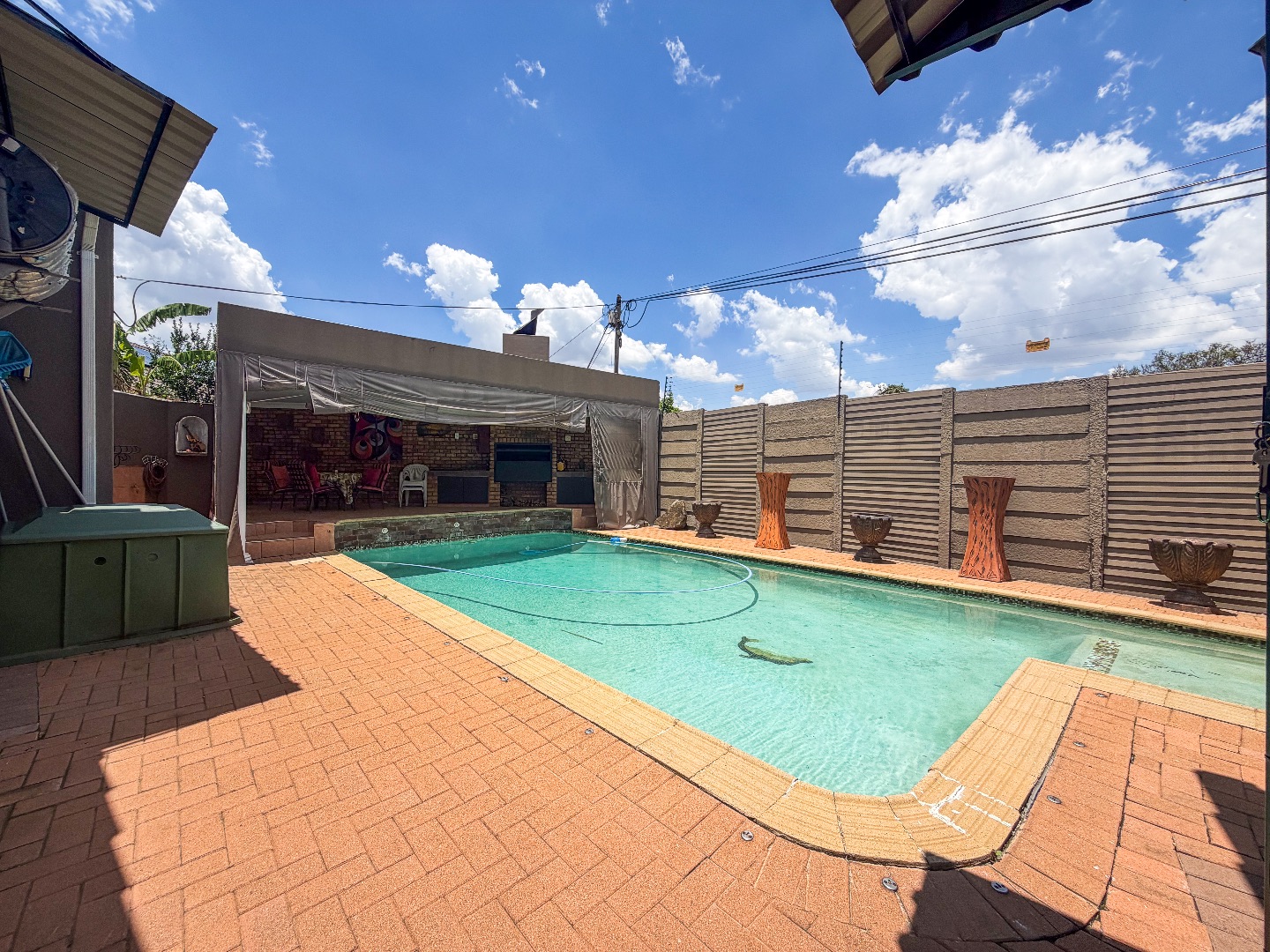 - A dedicated entertainment area with built-in braai and cabinetry, overlooking a sparkling pool—an ideal setting for family gatherings and memorable time with friends