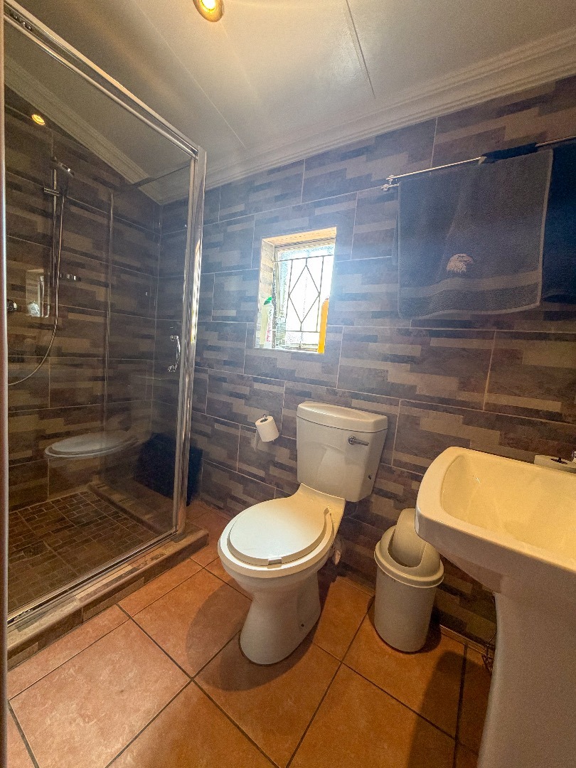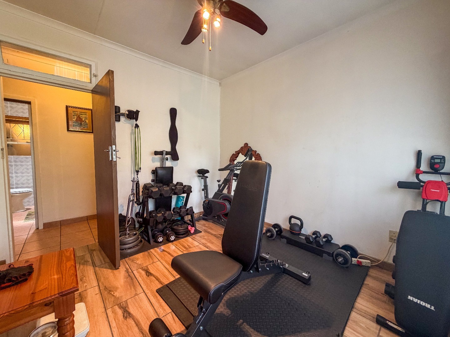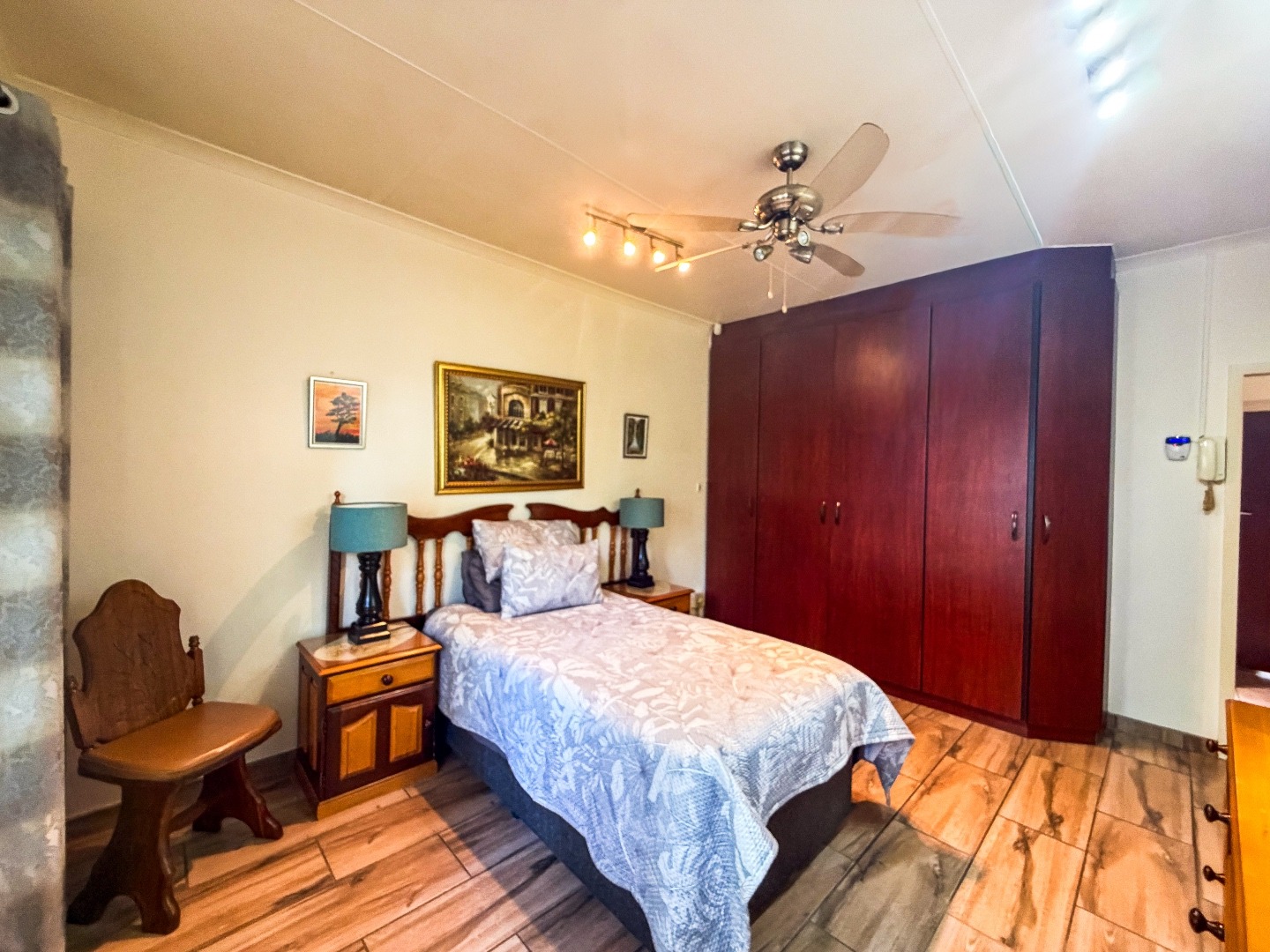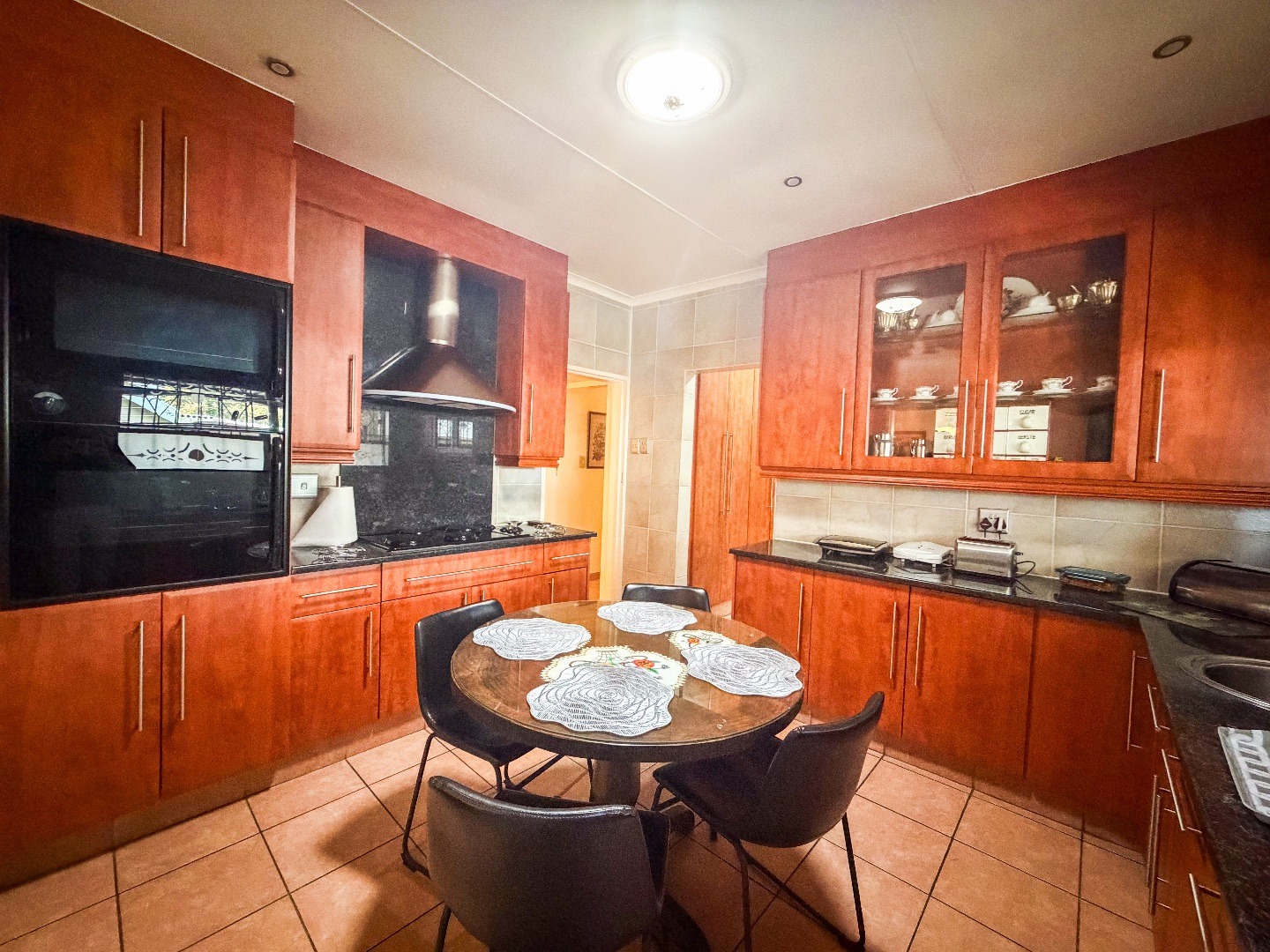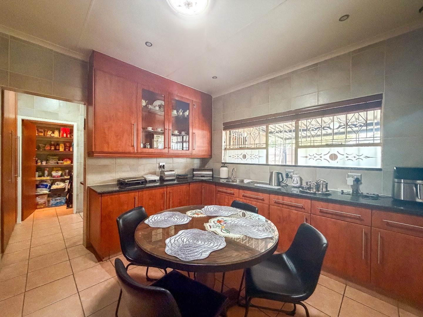 A separate scullery provides additional convenience, offering extensive built-in cupboards, accommodation for a double-door fridge and three appliances, a freestanding gas stove with extractor fan, and a walk-in pantry. An enclosed courtyard and laundry area further enhance the home’s practicality.