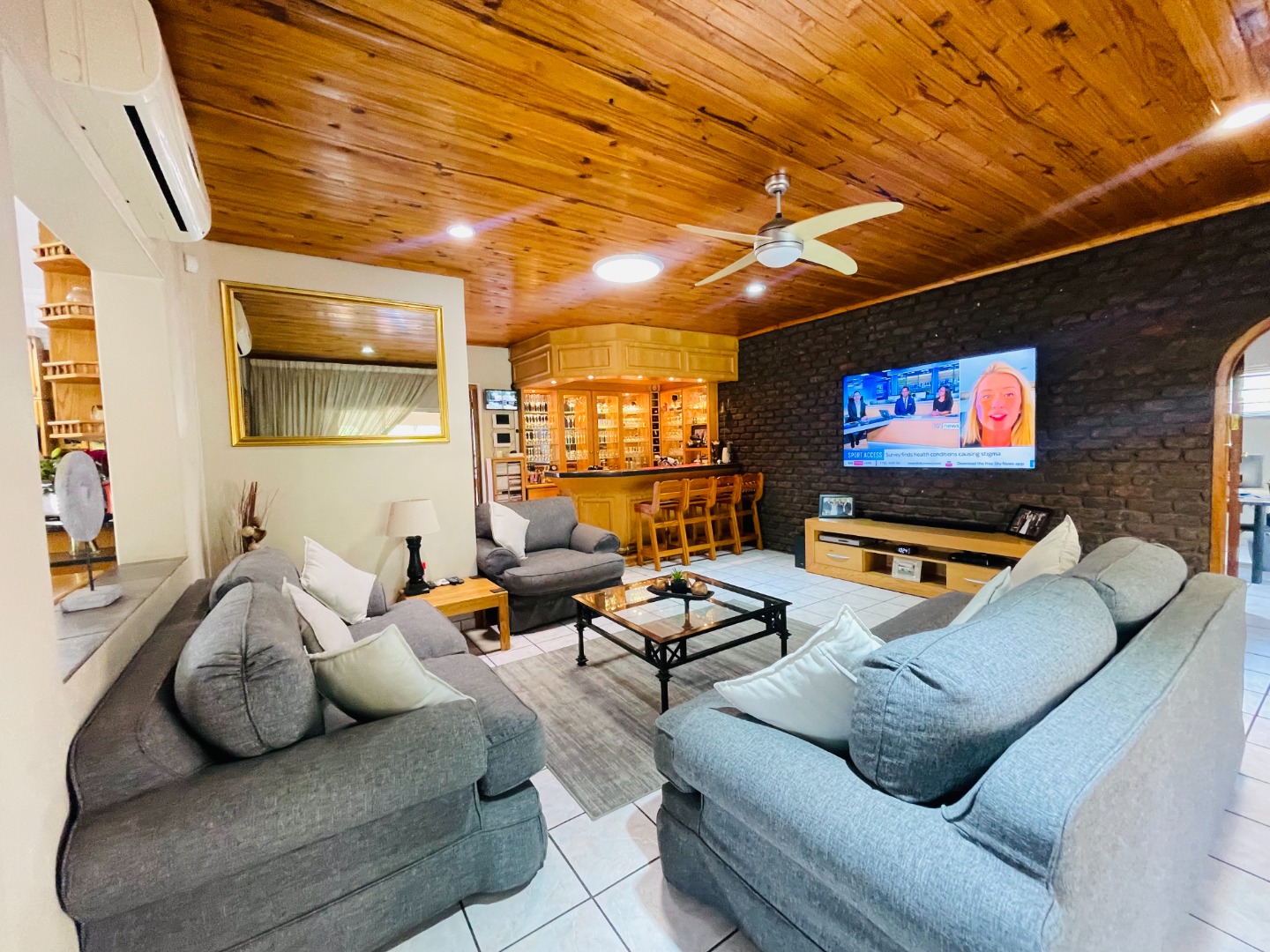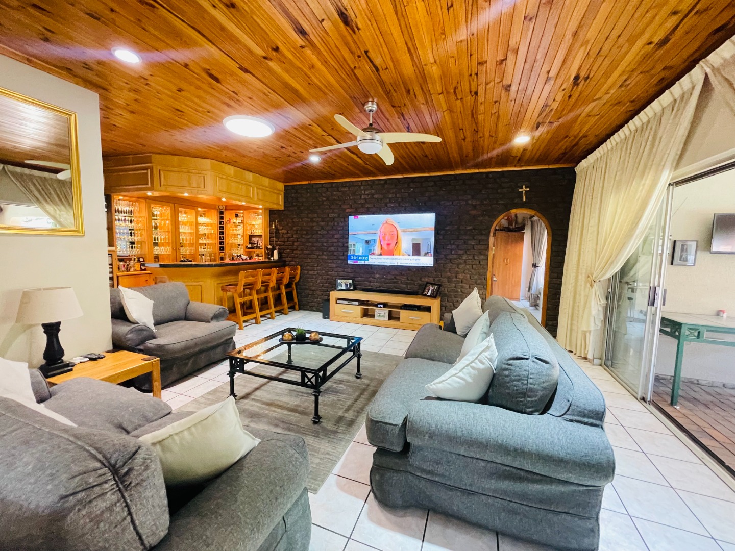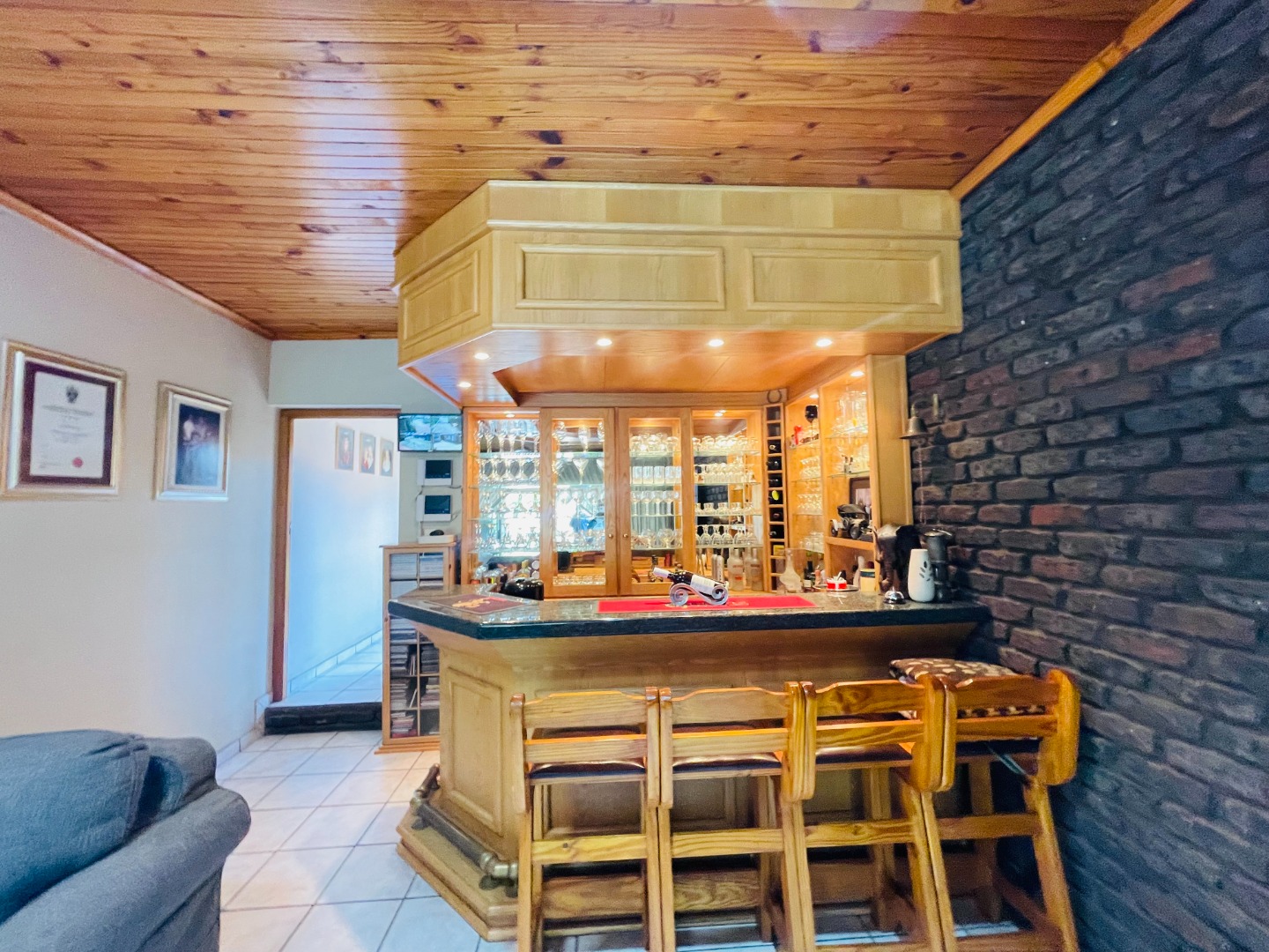 Family room with a built-in bar, perfect for entertaining