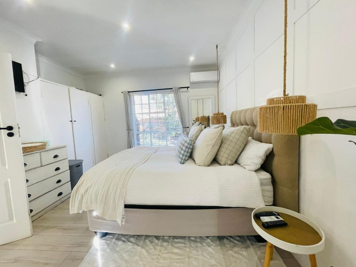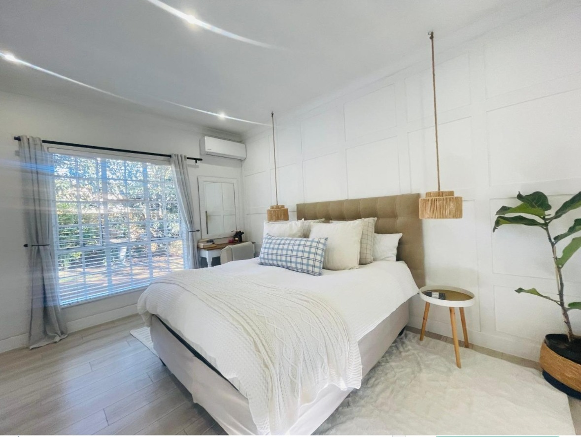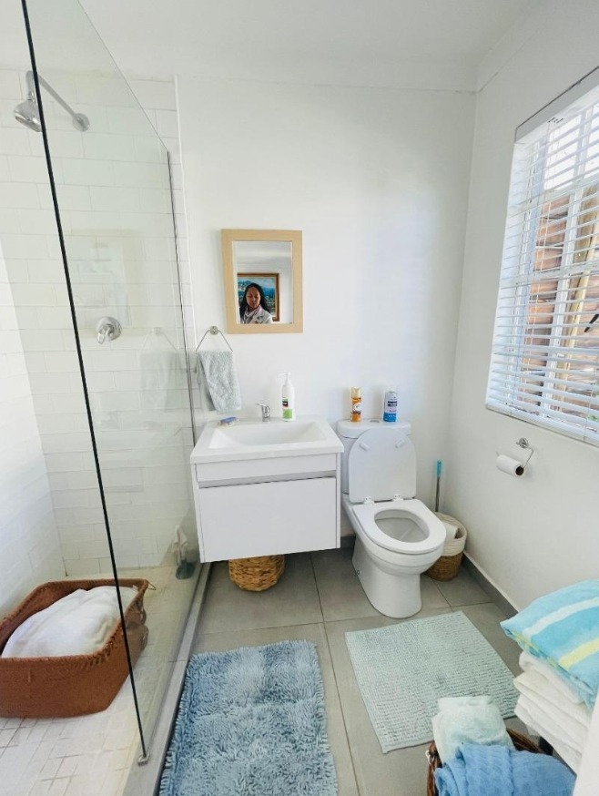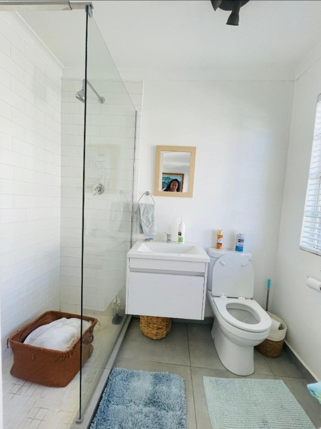 Inside, the residence offers bright and comfortable living spaces. The three bedrooms are well-appointed, featuring extensive built-in wardrobes for practical storage and large windows that flood the rooms with natural light. The two modern bathrooms, including one en-suite, boast contemporary finishes such as white subway tiles, sleek glass-enclosed showers, and wall-mounted floating vanities, creating a clean and functional aesthetic.