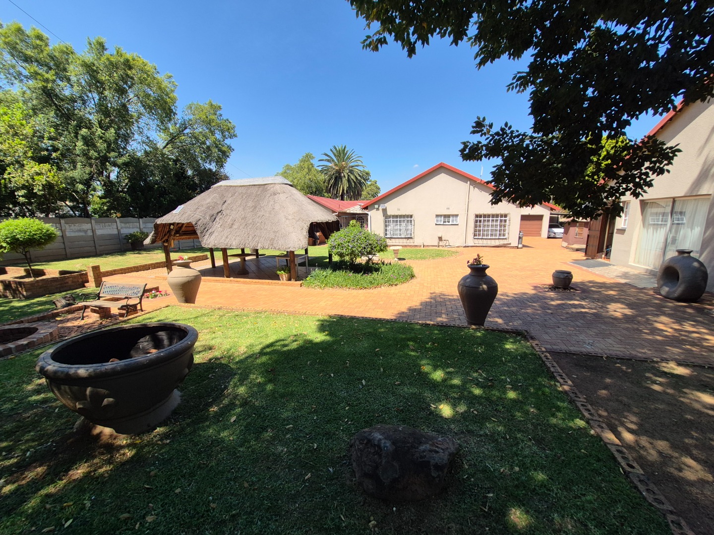 Externally, the property boasts a substantial Erf size of 1580 sqm, offering a large garden area for outdoor activities and relaxation. A lapa provides an ideal spot for outdoor entertaining. Parking is abundant with two garages and an additional six open parking spaces, accommodating multiple vehicles. The property is pet-friendly, allowing your furry companions to enjoy the spacious garden.