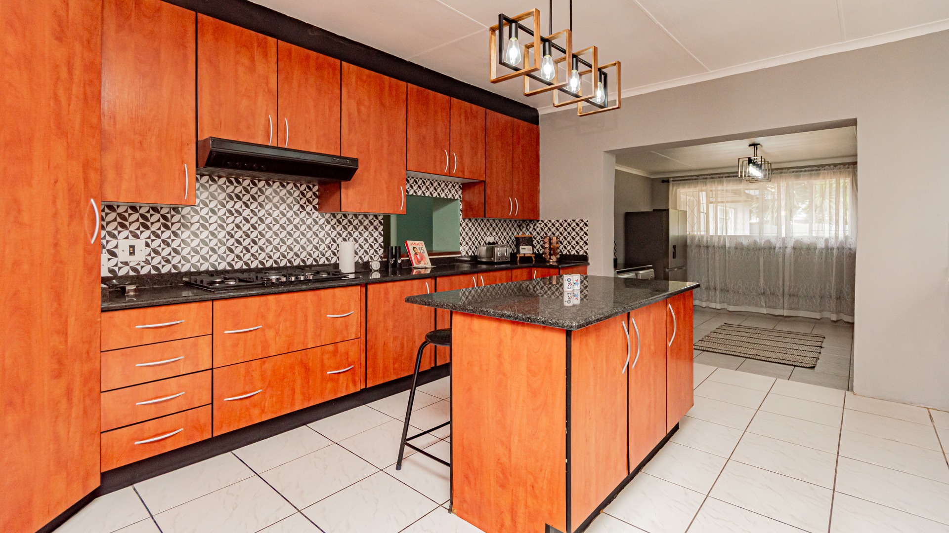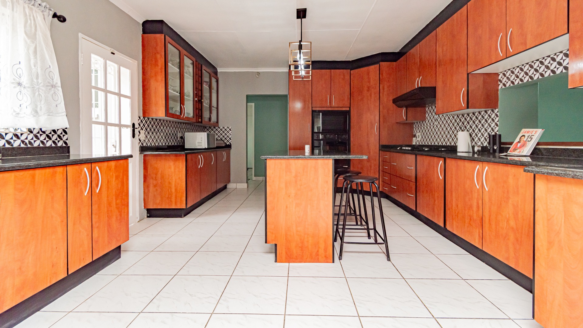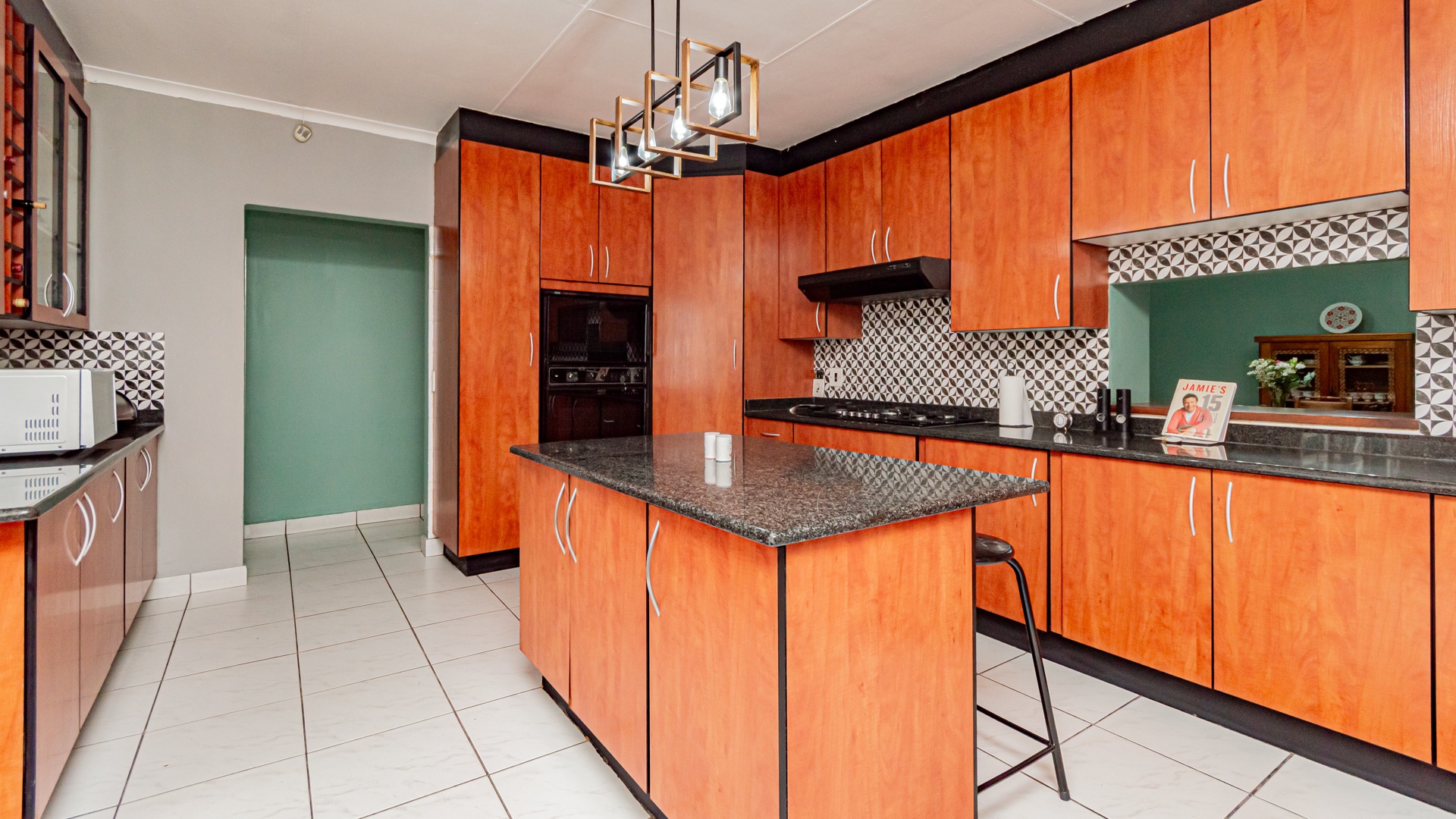 Step further inside and experience a home where warmth meets refined functionality. The contemporary kitchen is both stylish and highly practical, featuring sleek granite countertops, rich rosewood cabinetry, a 6-plate gas hob, double electric oven, a pantry, and ample cupboard space. There is provision for two under-counter appliances in the laundry and more appliances in the laundry area which enhances convenience and organisation.