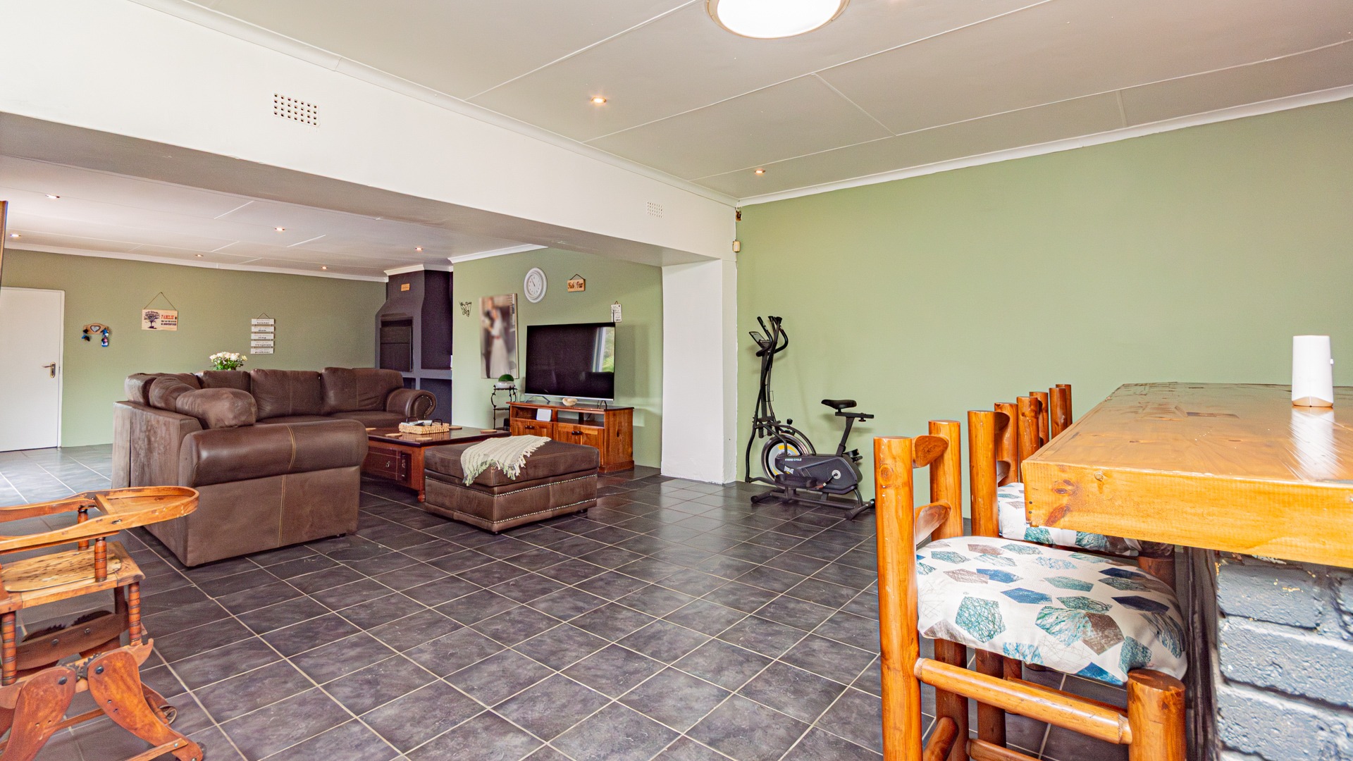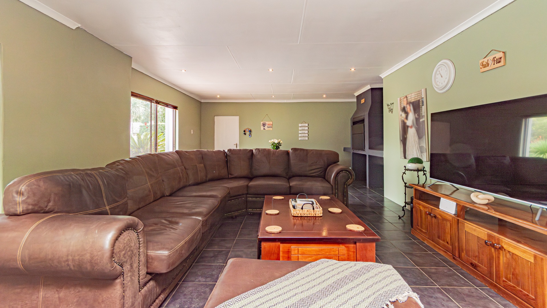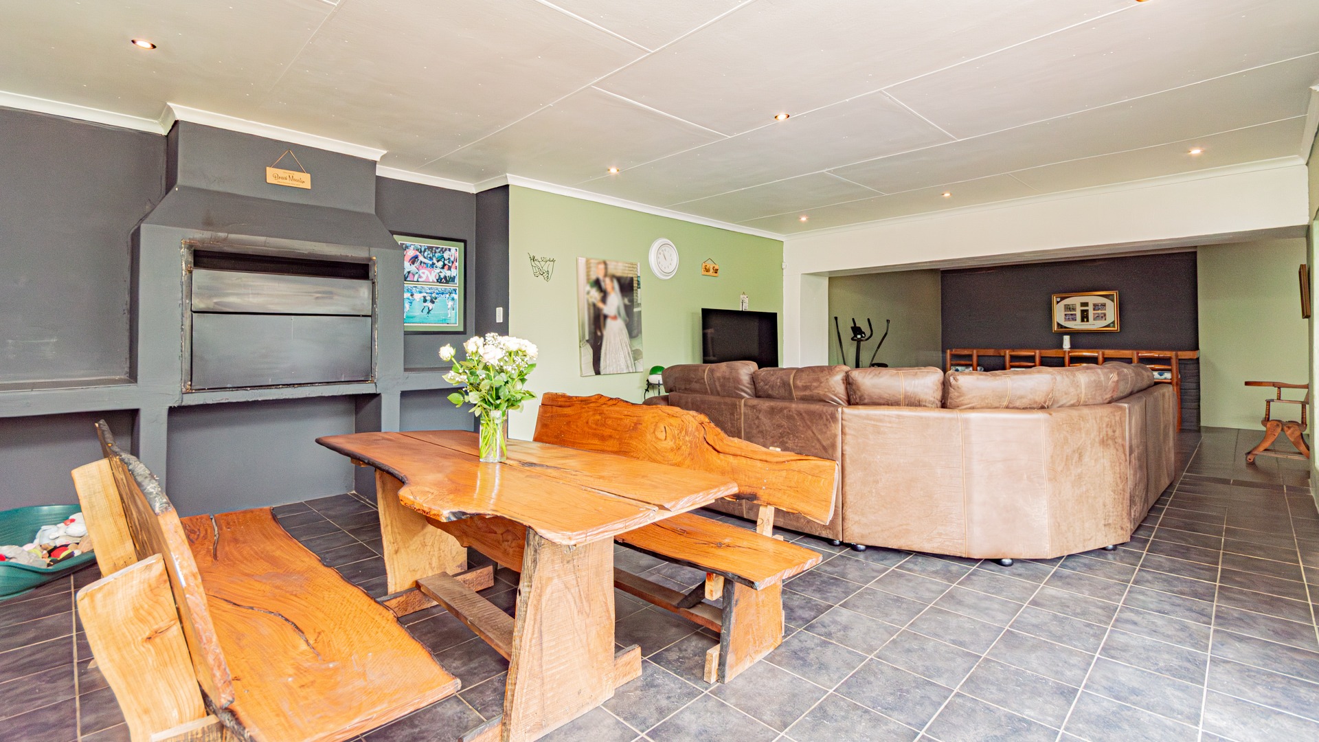Upon entering, you are welcomed by expansive living areas comprising two elegant lounges and a dining room, thoughtfully designed for both relaxation and entertaining. An indoor enclosed entertainment area with a built-in braai creates the perfect setting for hosting gatherings all year round, while the practical layout ensures effortless everyday living.