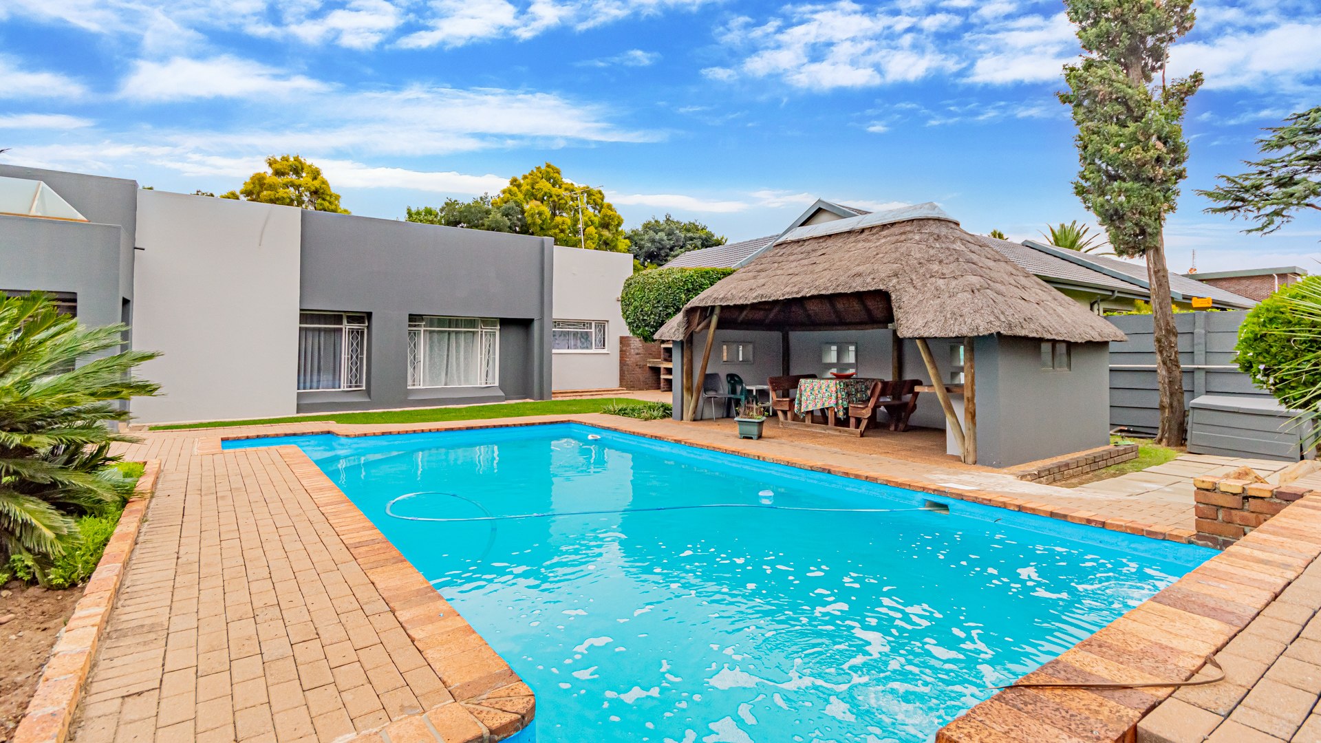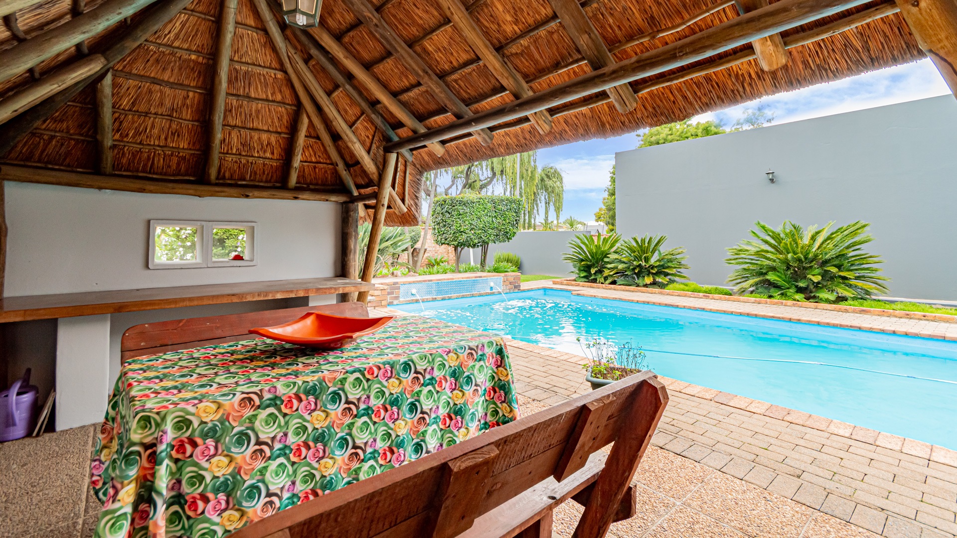 Step outside into your private oasis, where a beautifully manicured garden creates a tranquil atmosphere. A charming lapa overlooks the sparkling marbelite swimming pool — the perfect space for entertaining family and friends or enjoying relaxed weekend afternoons.