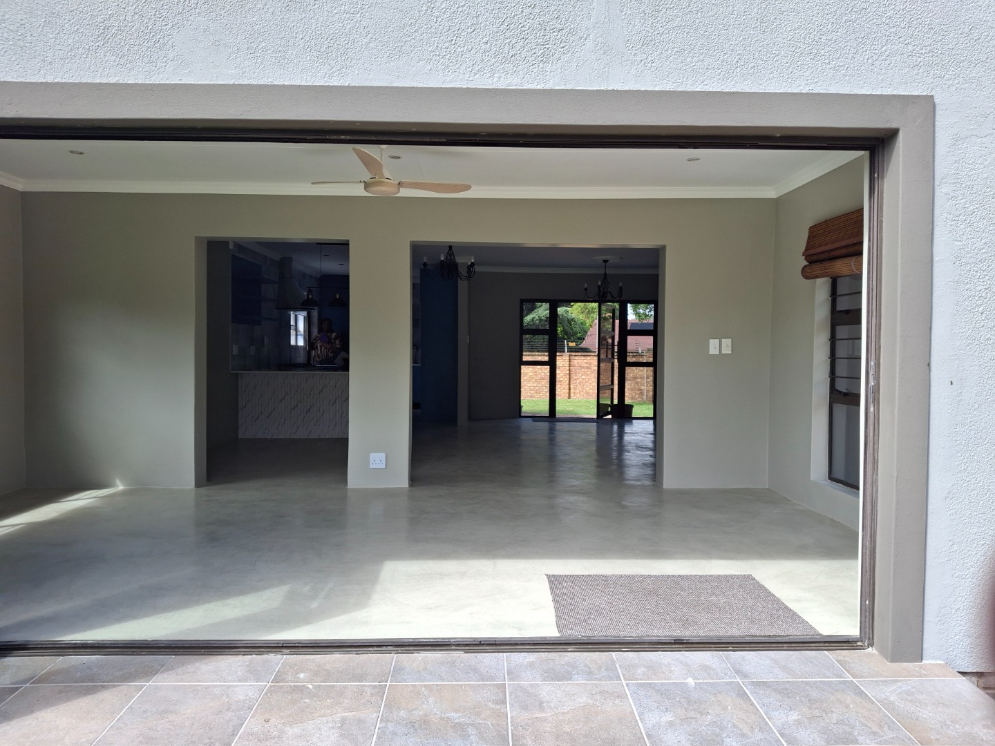 Discover an exquisite suburban sanctuary in Brackenhurst, Alberton, where sophisticated design meets unparalleled comfort. This distinguished residence, spanning 250 sqm on a generous 1433 sqm erf, presents a modern grey exterior crowned with a striking red tile roof, immediately conveying a sense of refined elegance. A grand paved driveway leads to an integrated double garage and a welcoming glass double-door entrance, setting the stage for the luxurious interiors within. Step inside to an expansive open-plan living space, bathed in natural light streaming through magnificent sliding glass doors that seamlessly connect to the outdoors. The contemporary neutral palette and polished concrete flooring provide a chic foundation, complementing the well-appointed kitchen, a dedicated dining room, and a comfortable lounge, perfect for both intimate gatherings and grand entertaining. The home features three generously proportioned bedrooms and two opulent bathrooms, including a private ensuite for ultimate indulgence. Each bedroom is thoughtfully designed with built-in wardrobes and integrated vanity mirrors, offering both ample storage and a touch of bespoke luxury. Ceiling fans ensure comfort throughout, while the neutral decor provides a serene retreat. Outside, the property transforms into a private oasis. An expansive, meticulously manicured garden, adorned with mature trees, frames a sparkling swimming pool – an idyllic setting for relaxation and recreation. The charming thatched lapa, complete with a built-in braai, promises unforgettable al fresco dining experiences. Additional practicalities include water tanks, extensive paving, and a fully walled perimeter, ensuring privacy and convenience. This exceptional Brackenhurst address offers a lifestyle of comfort and elegance in a sought-after suburban locale within South Africa's vibrant Alberton. It is a true testament to refined living, awaiting its discerning new owner. Key Features: * 3 Bedrooms, 2 Bathrooms (1 Ensuite) * Open-Plan Living & Dining * Modern Kitchen * Integrated Double Garage * Private Swimming Pool * Thatched Lapa with Built-in Braai * Expansive Garden with Mature Trees * Paved Driveway & Outdoor Areas * Water Tanks & Fully Walled Property * Suburban Brackenhurst Location