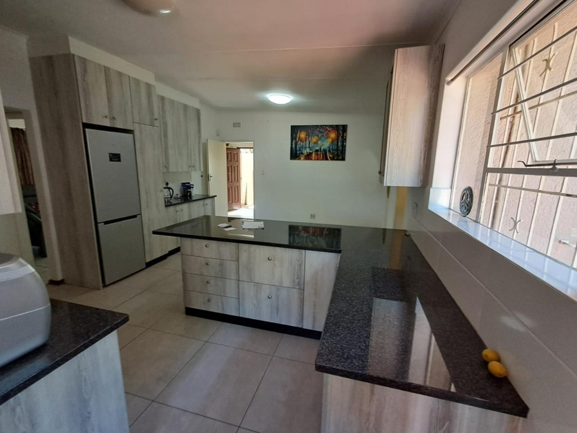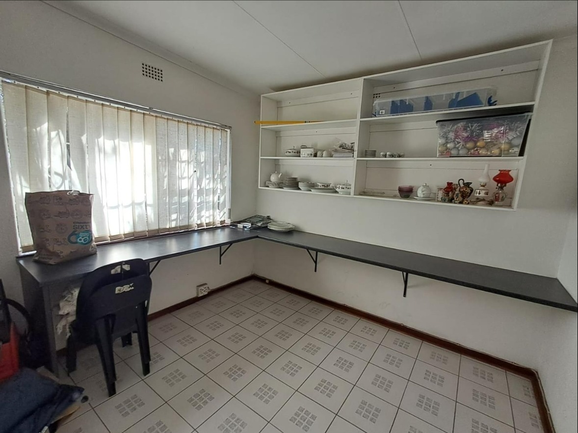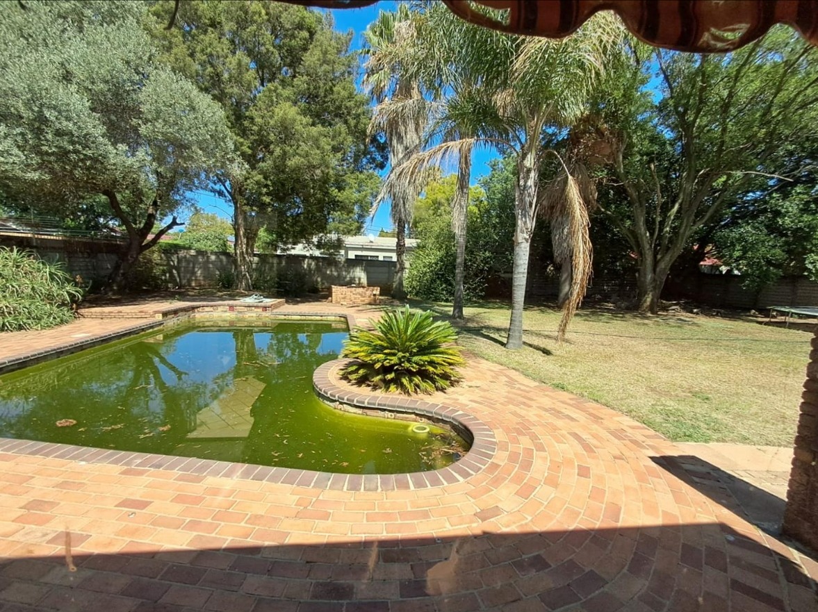 Designed for entertaining, the home boasts an enclosed entertainment area complete with a built-in brick bar and a functional kitchenette, perfect for hosting gatherings. Large sliding doors seamlessly connect this space to the expansive outdoor areas. Here, you'll find a swimming pool, a built-in braai area, and extensive brick paving, all set within a garden that, while currently awaiting revival, holds immense potential for transformation into a vibrant family oasis. Mature trees provide natural shade, and a children's playground area adds to the family-friendly appeal.