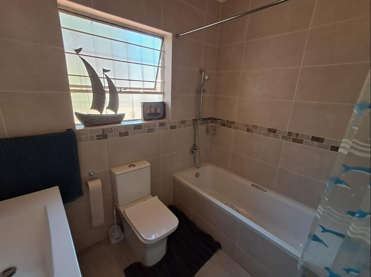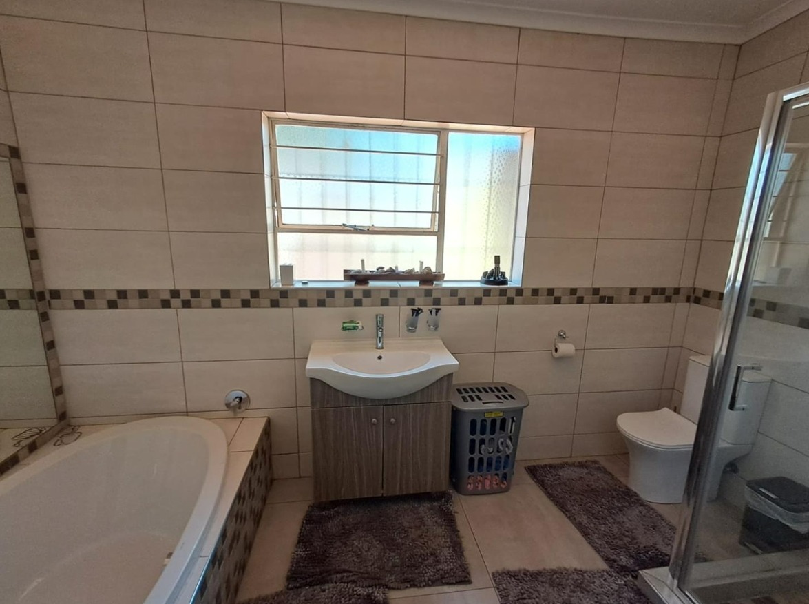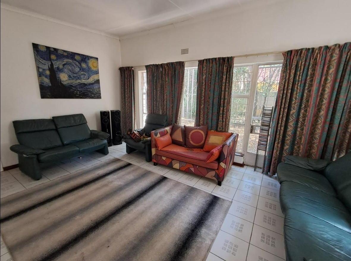 Designed for entertaining, the home boasts an enclosed entertainment area complete with a built-in brick bar and a functional kitchenette, perfect for hosting gatherings. Large sliding doors seamlessly connect this space to the expansive outdoor areas. Here, you'll find a swimming pool, a built-in braai area, and extensive brick paving, all set within a garden that, while currently awaiting revival, holds immense potential for transformation into a vibrant family oasis. Mature trees provide natural shade, and a children's playground area adds to the family-friendly appeal.