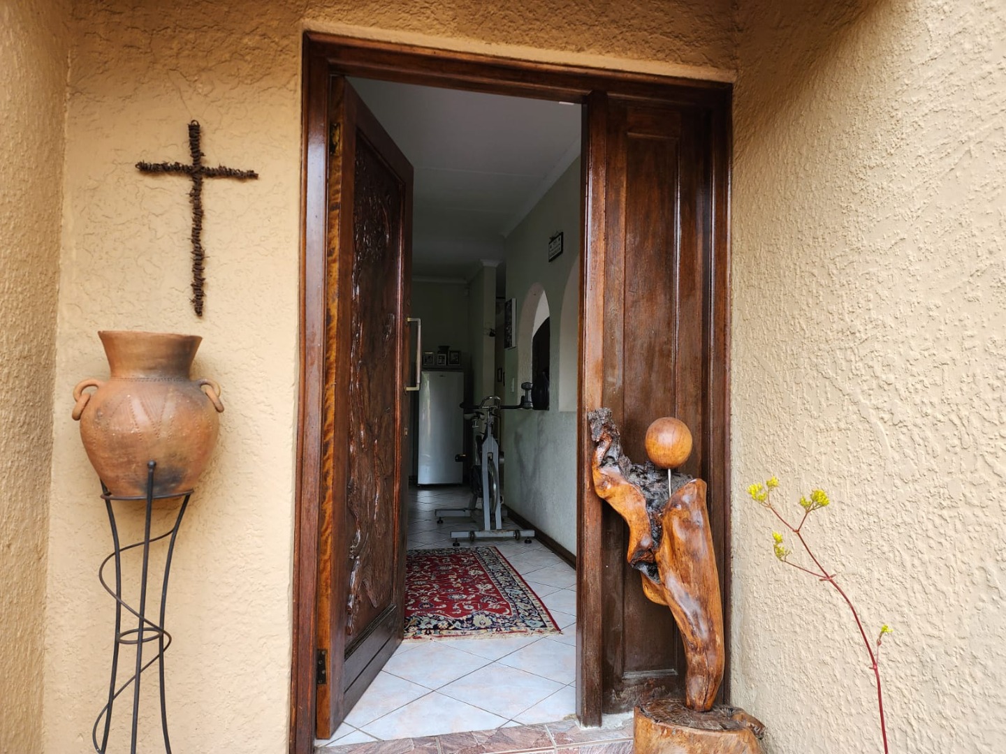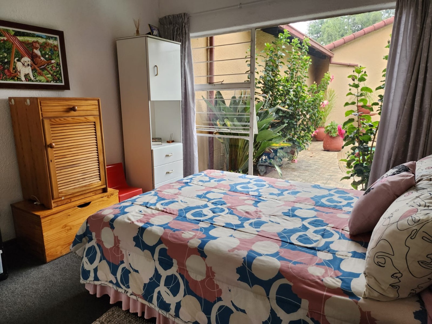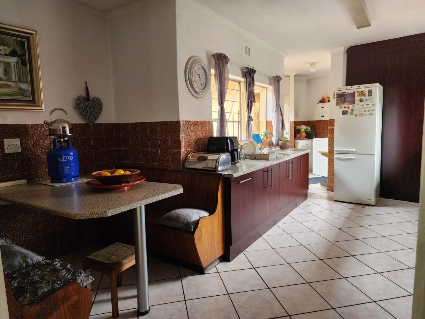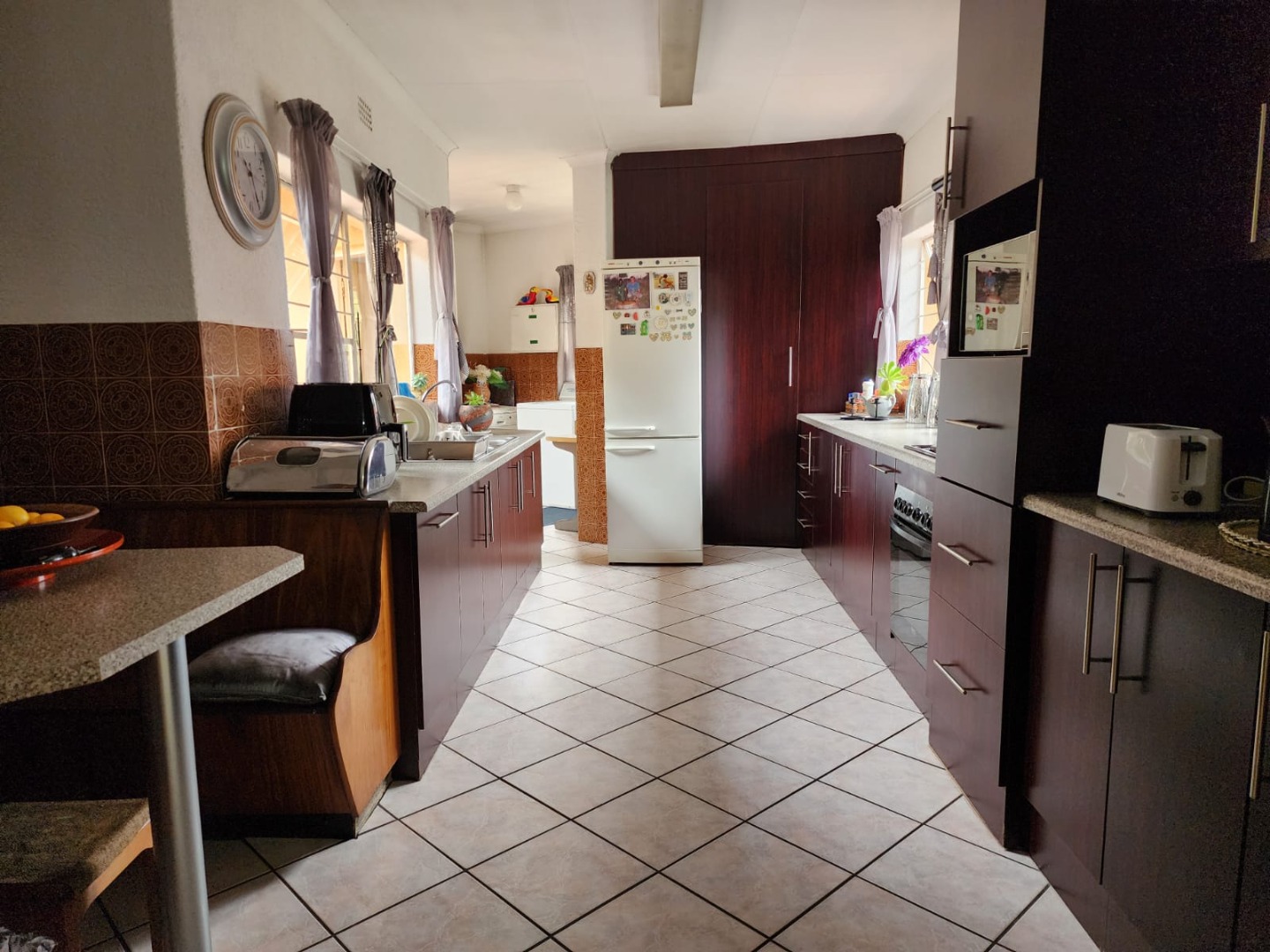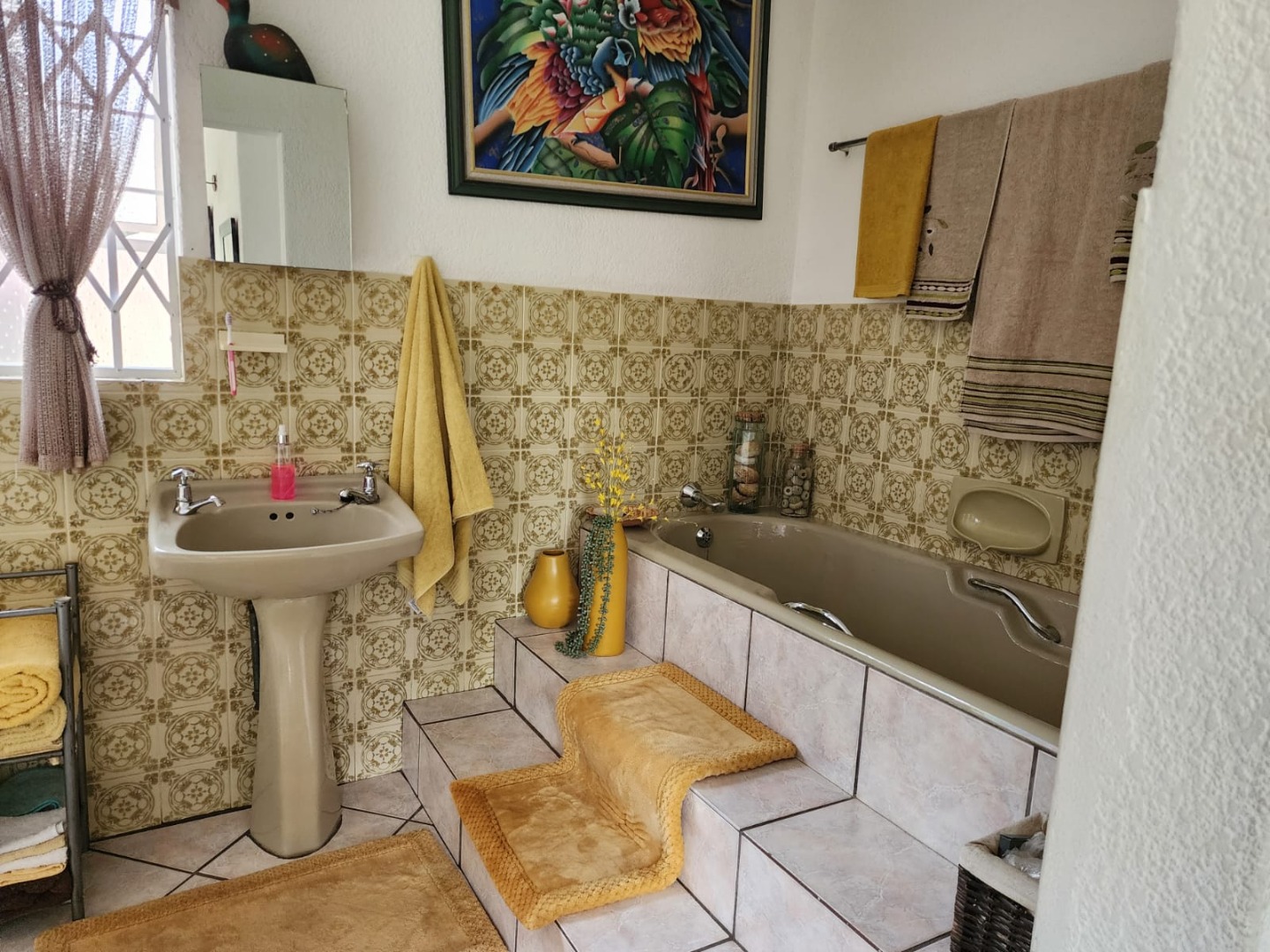 The outdoor area is designed for enjoyment, featuring a distinctive kidney-shaped swimming pool surrounded by a tiled entertainment space — perfect for hosting guests, weekend braais, or simply unwinding in your own private setting.