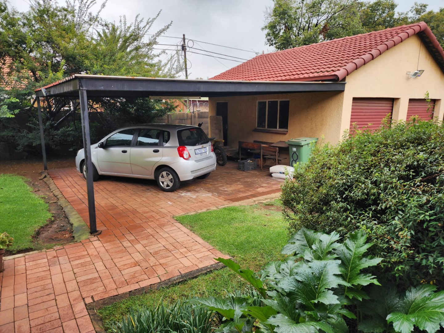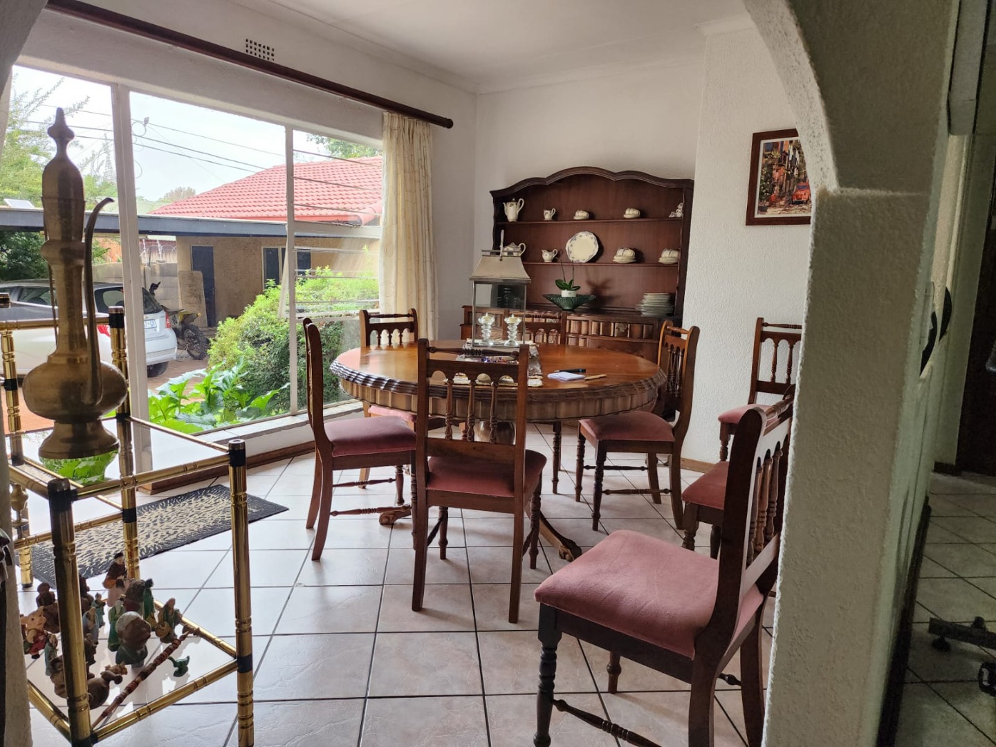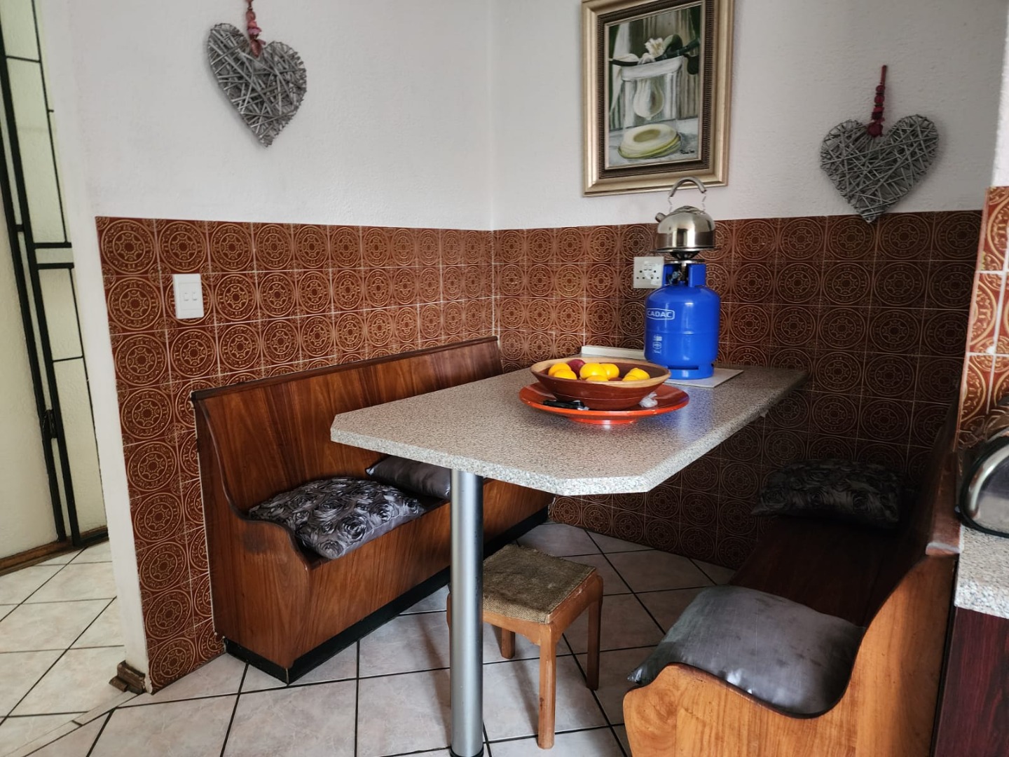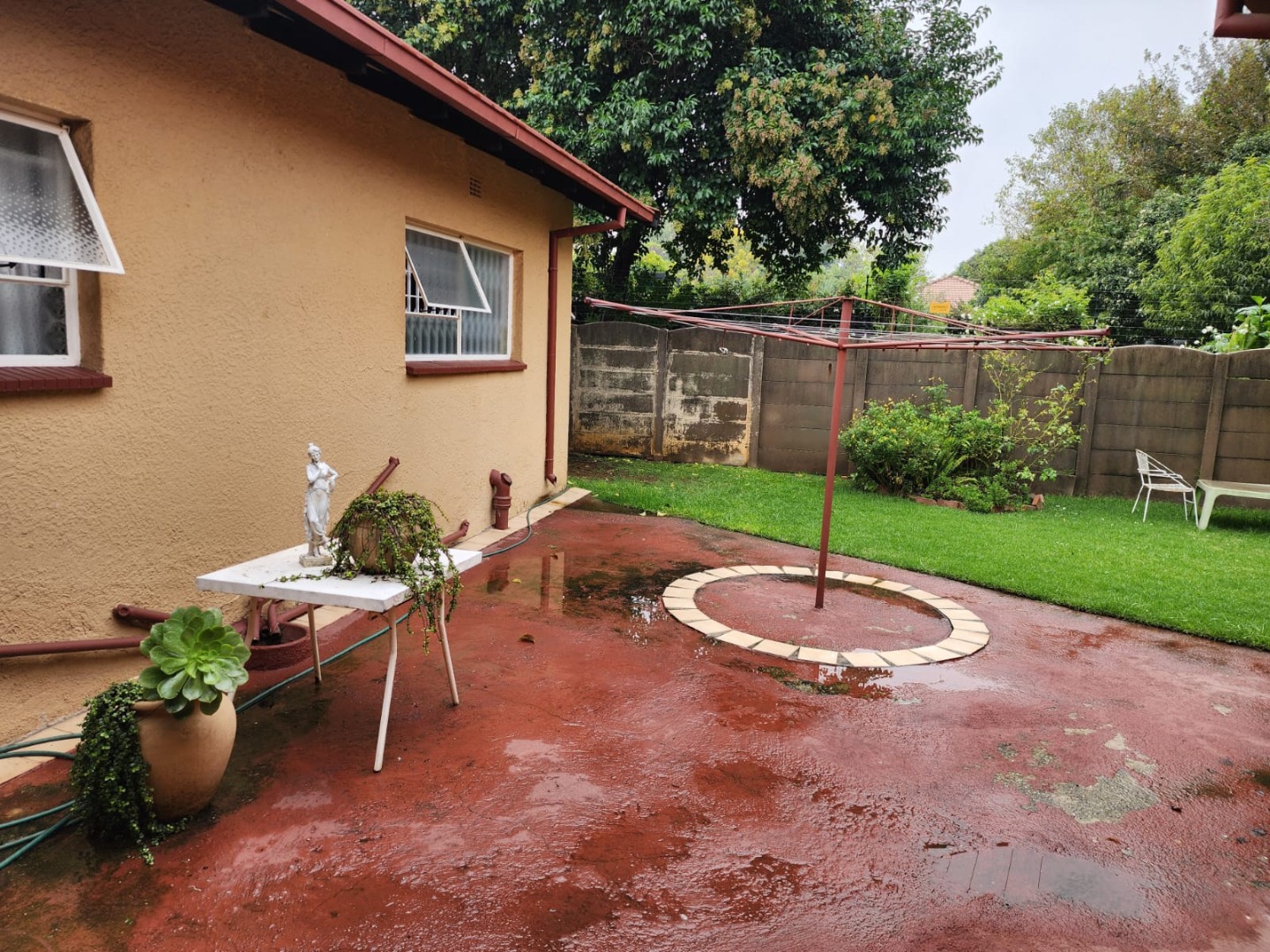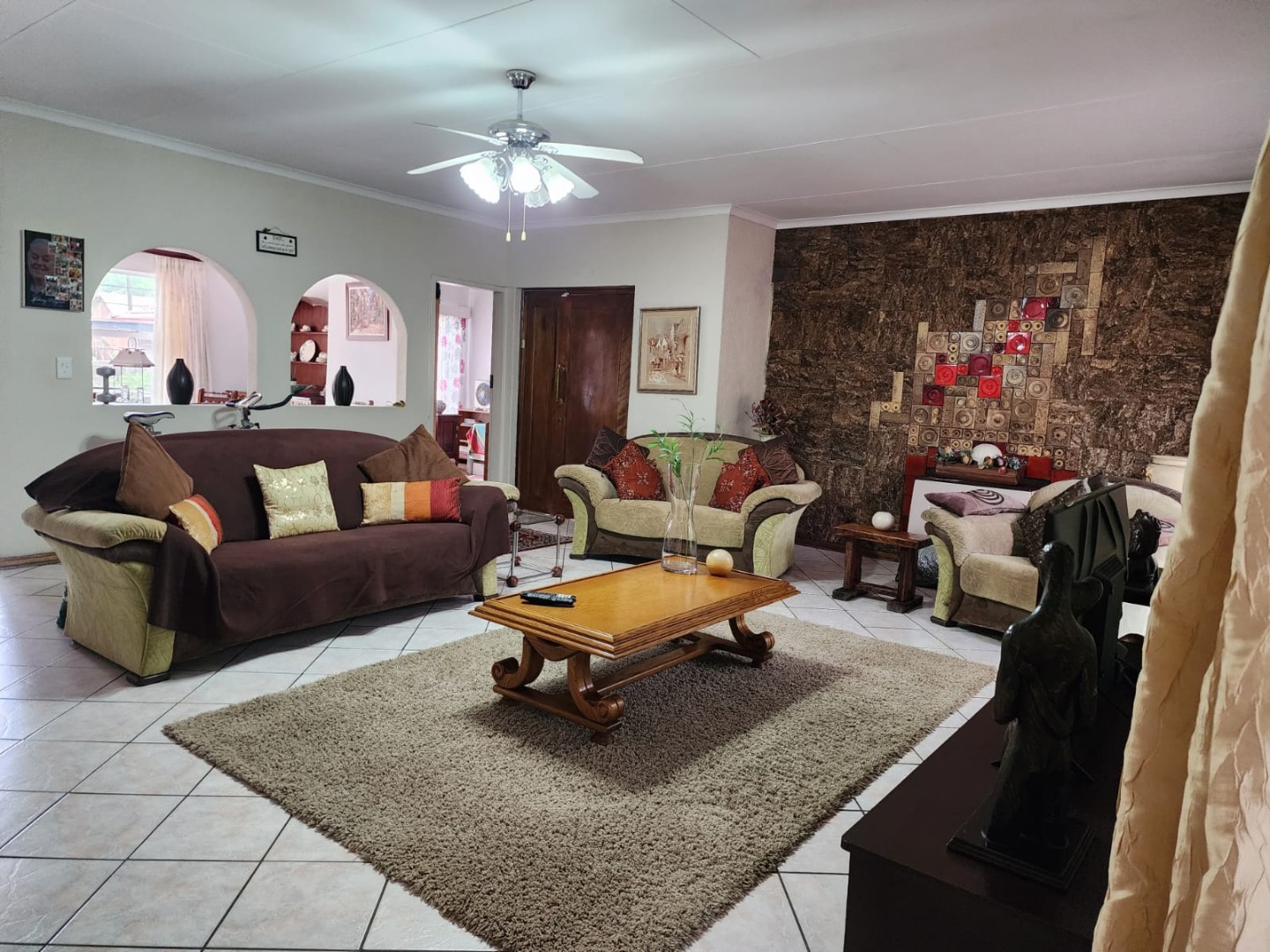 The outdoor area is designed for enjoyment, featuring a distinctive kidney-shaped swimming pool surrounded by a tiled entertainment space — perfect for hosting guests, weekend braais, or simply unwinding in your own private setting.