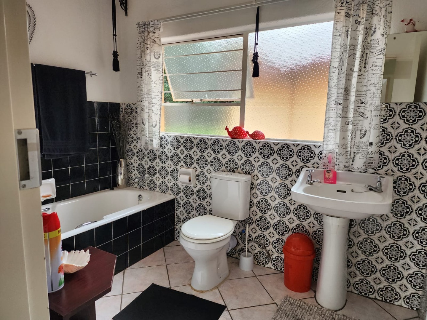 This lovely home boasts three spacious bedrooms, each offering a peaceful retreat. Two bathrooms service the home, including a main en-suite, while a stylish black-and-white themed bathroom adds a unique touch of character.