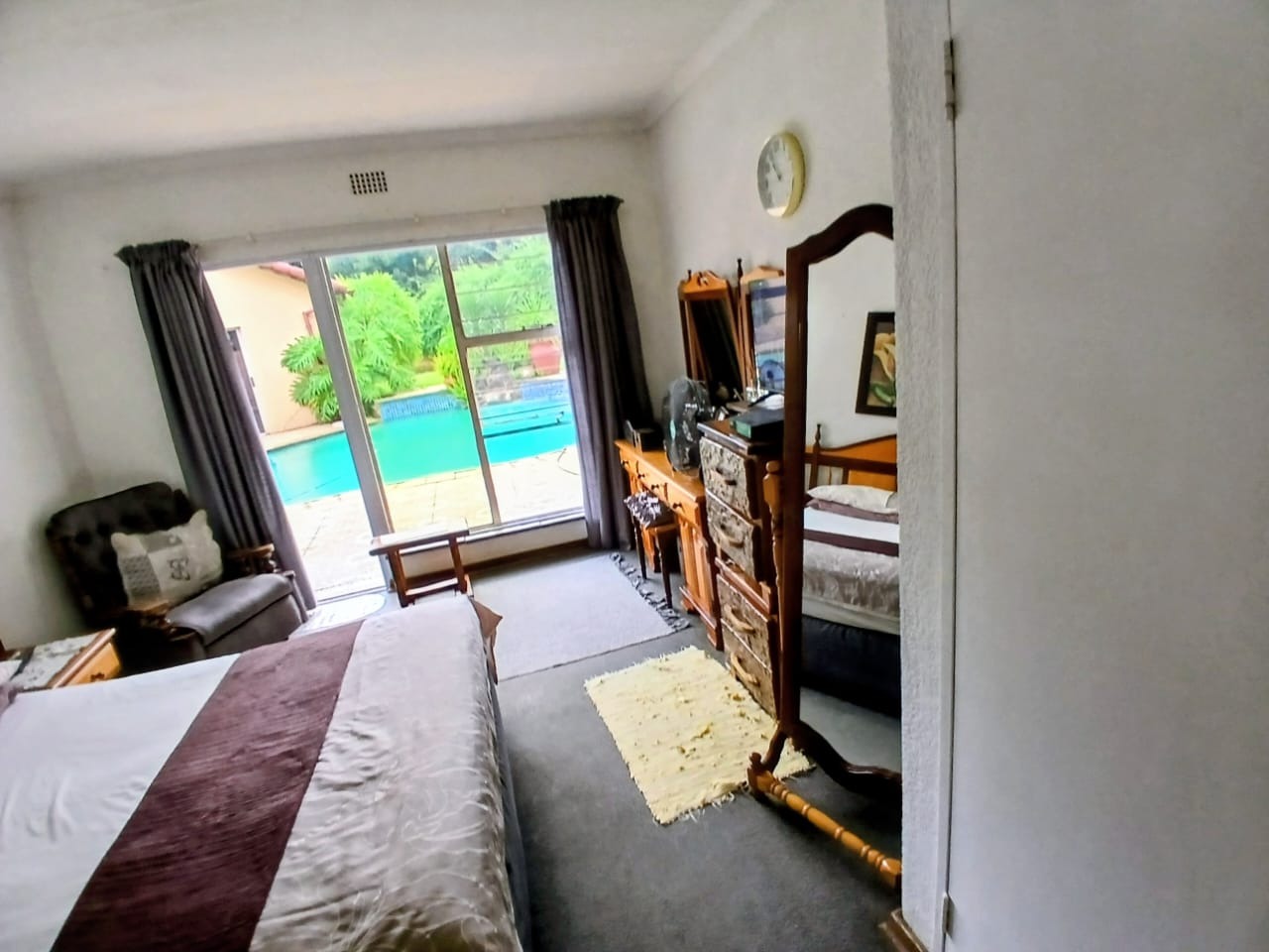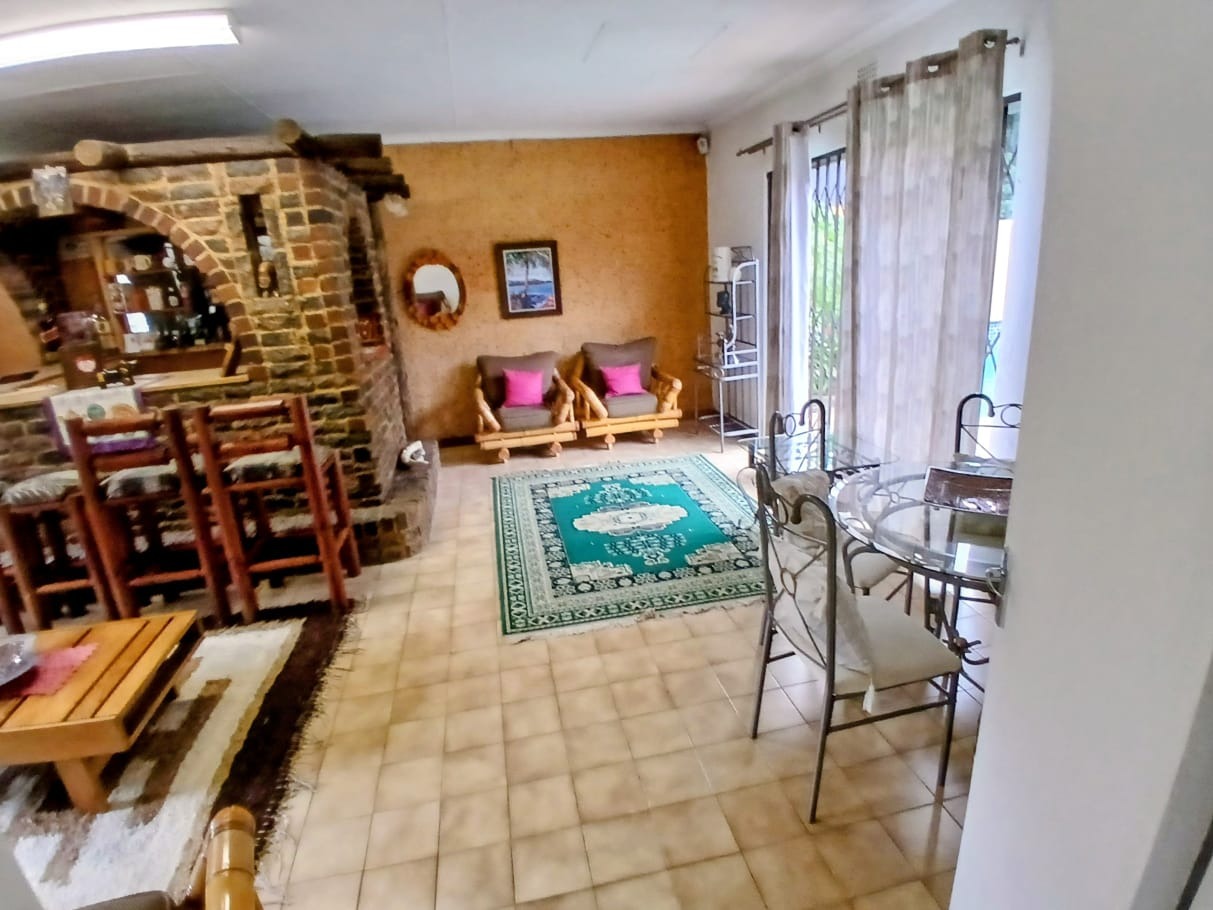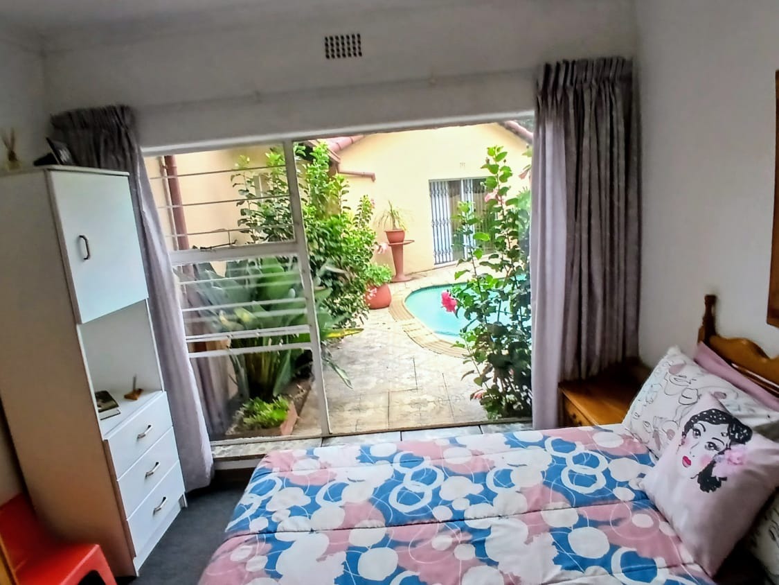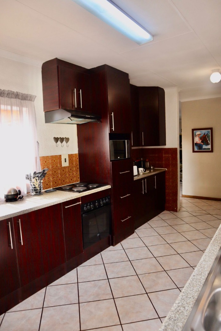 Outdoor living is a true highlight, with a beautifully maintained garden and a striking kidney-shaped swimming pool, ideal for enjoying South Africa’s sunny climate. A tiled patio provides the perfect space for outdoor gatherings and relaxation.