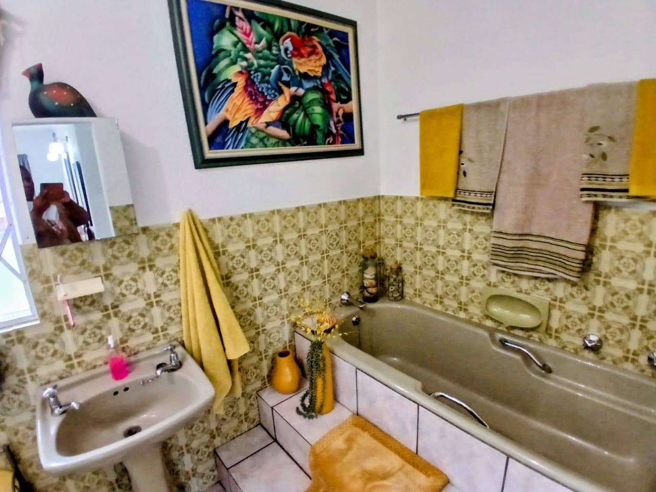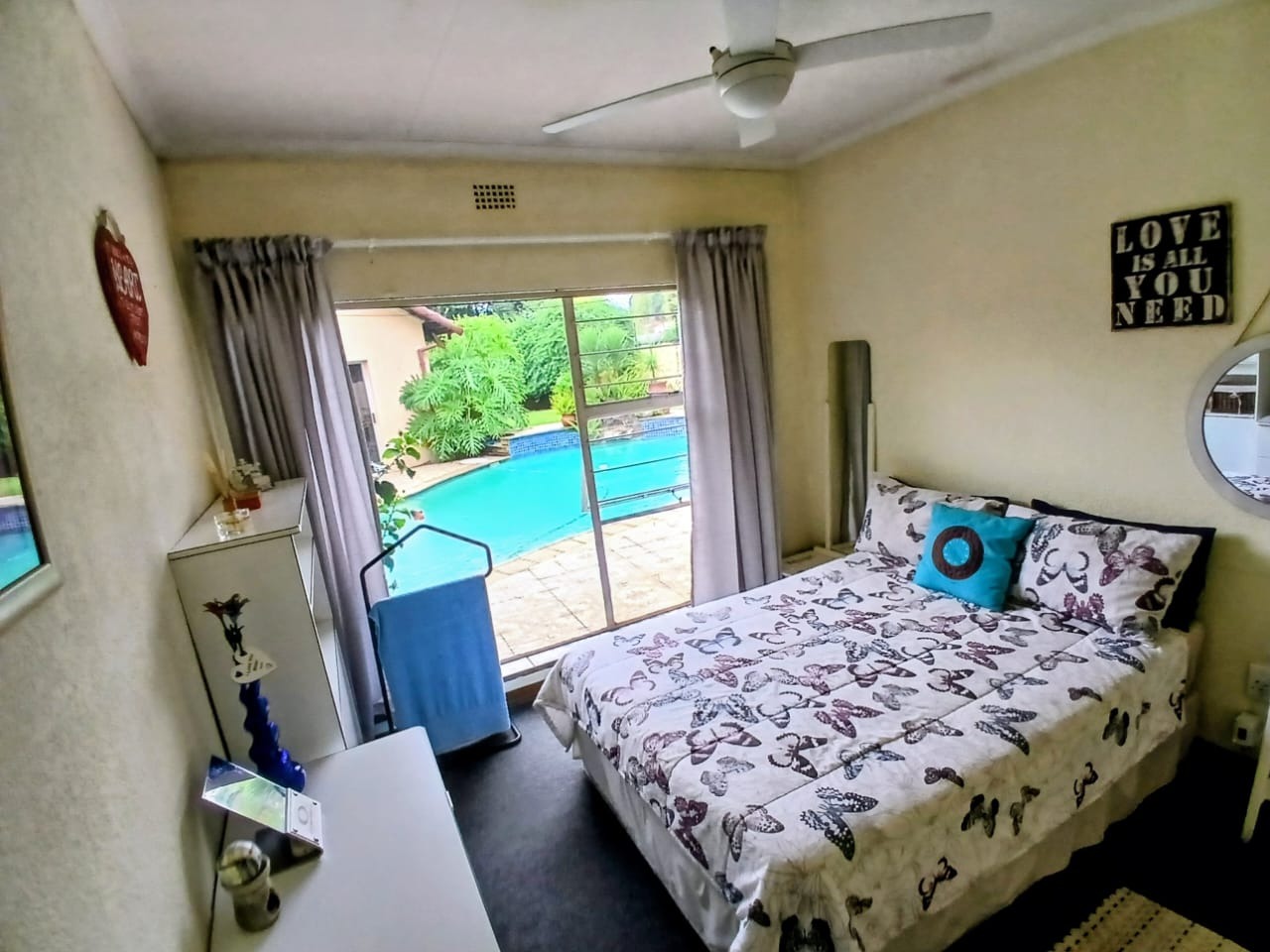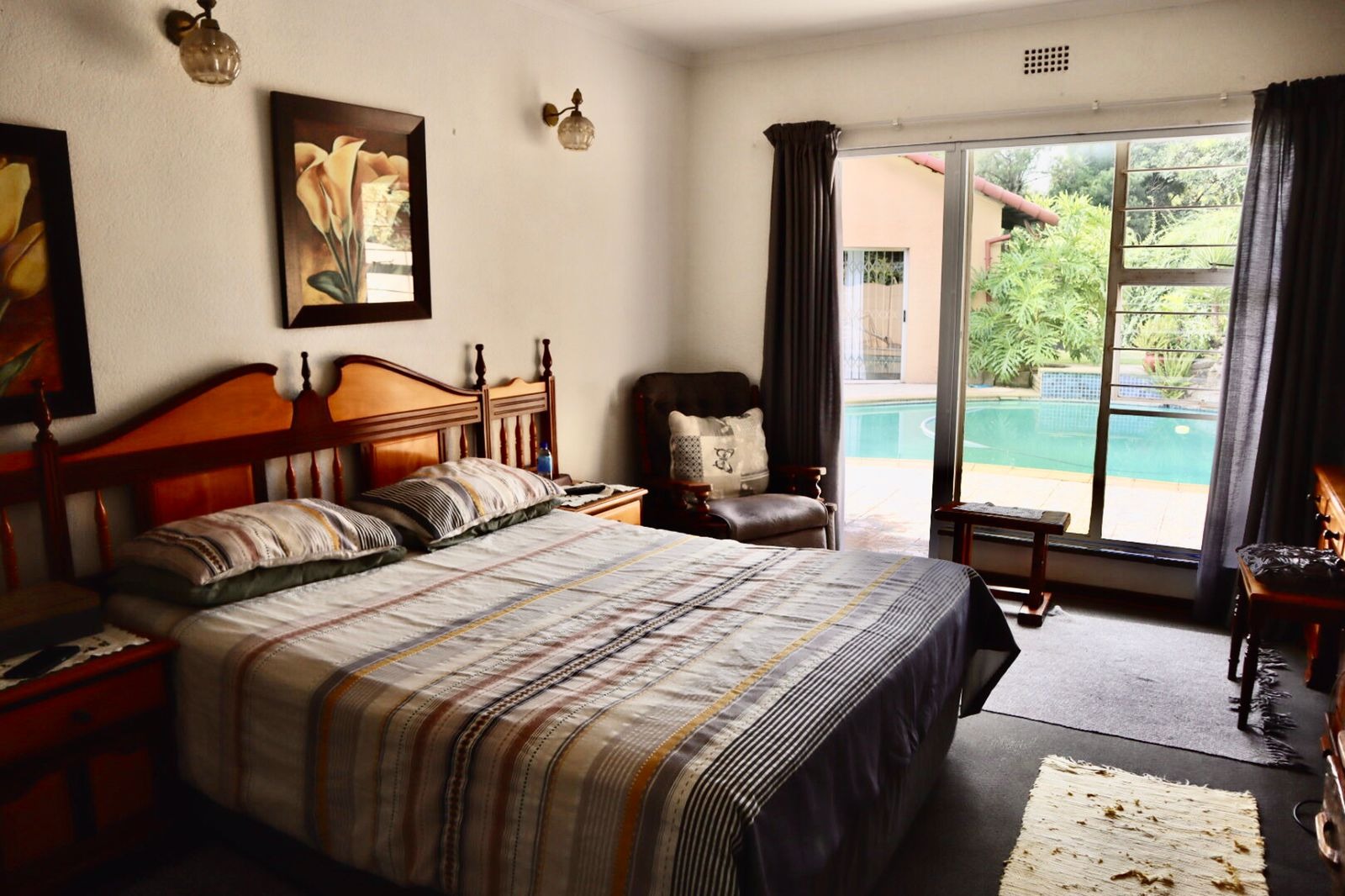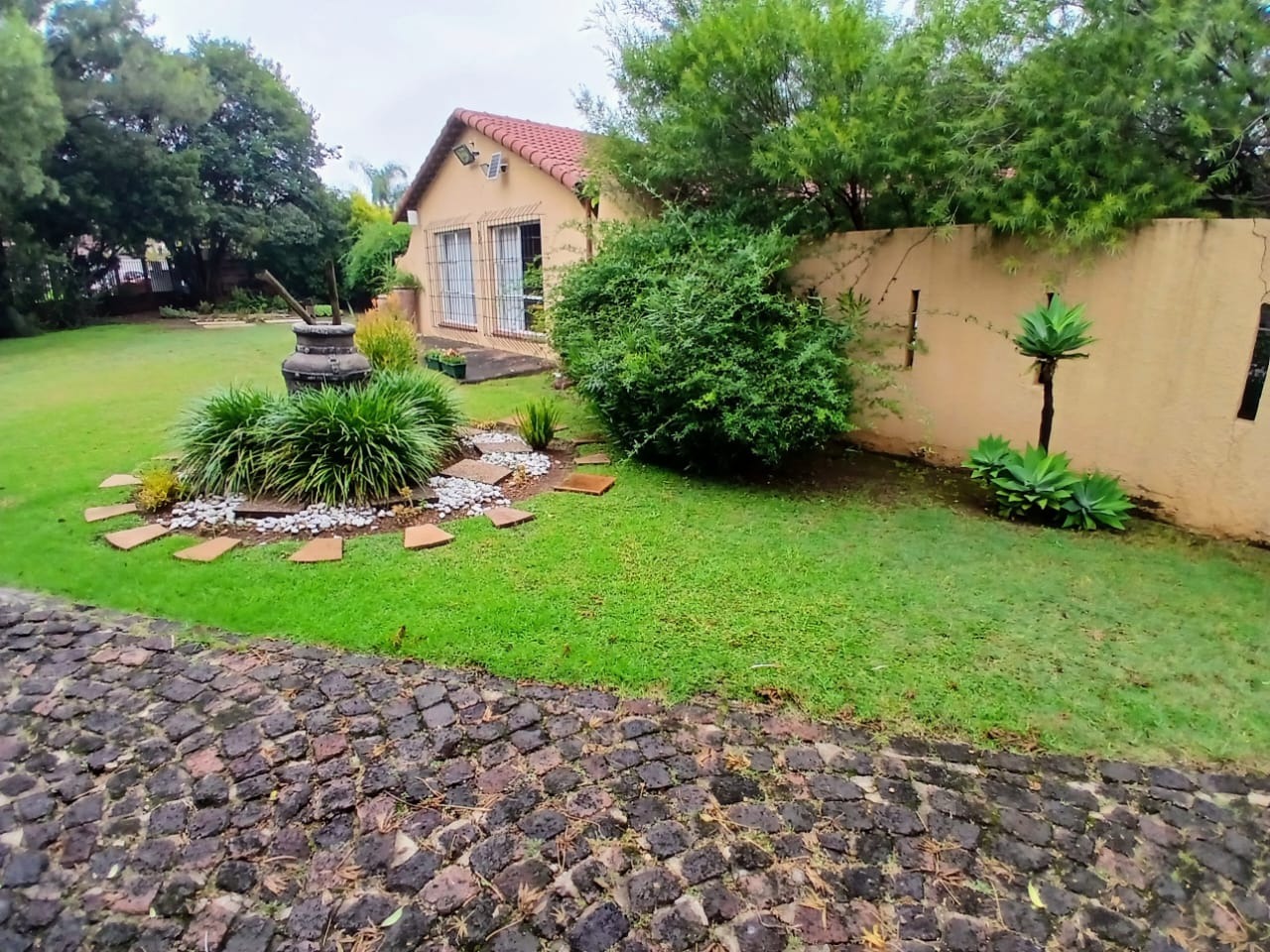Outdoor living is a true highlight, with a beautifully maintained garden and a striking kidney-shaped swimming pool, ideal for enjoying South Africa’s sunny climate. A tiled patio provides the perfect space for outdoor gatherings and relaxation.