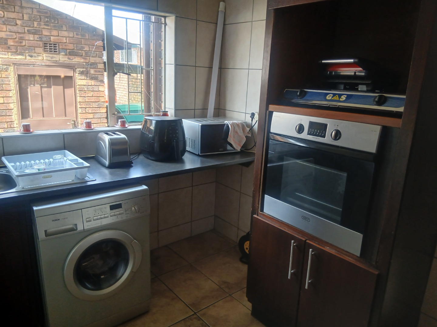 3 bedrooms all located upstairs; the main bedroom include an en-suite bathroom and private balcony, 2.5 bathrooms including a convenient guest toilet downstairs, modern melamine kitchen with ample cupboard space for all your storage needs, open plan titled lounge and dining area with a seamless flow, spacious private garden featuring both lawn and paved areas, perfect for entertaining or relaxing, single garage plus netted carport for extra parking, located in a secure, neat complex. This home combines style, space, and convenience, ideal for families or investors alike.
