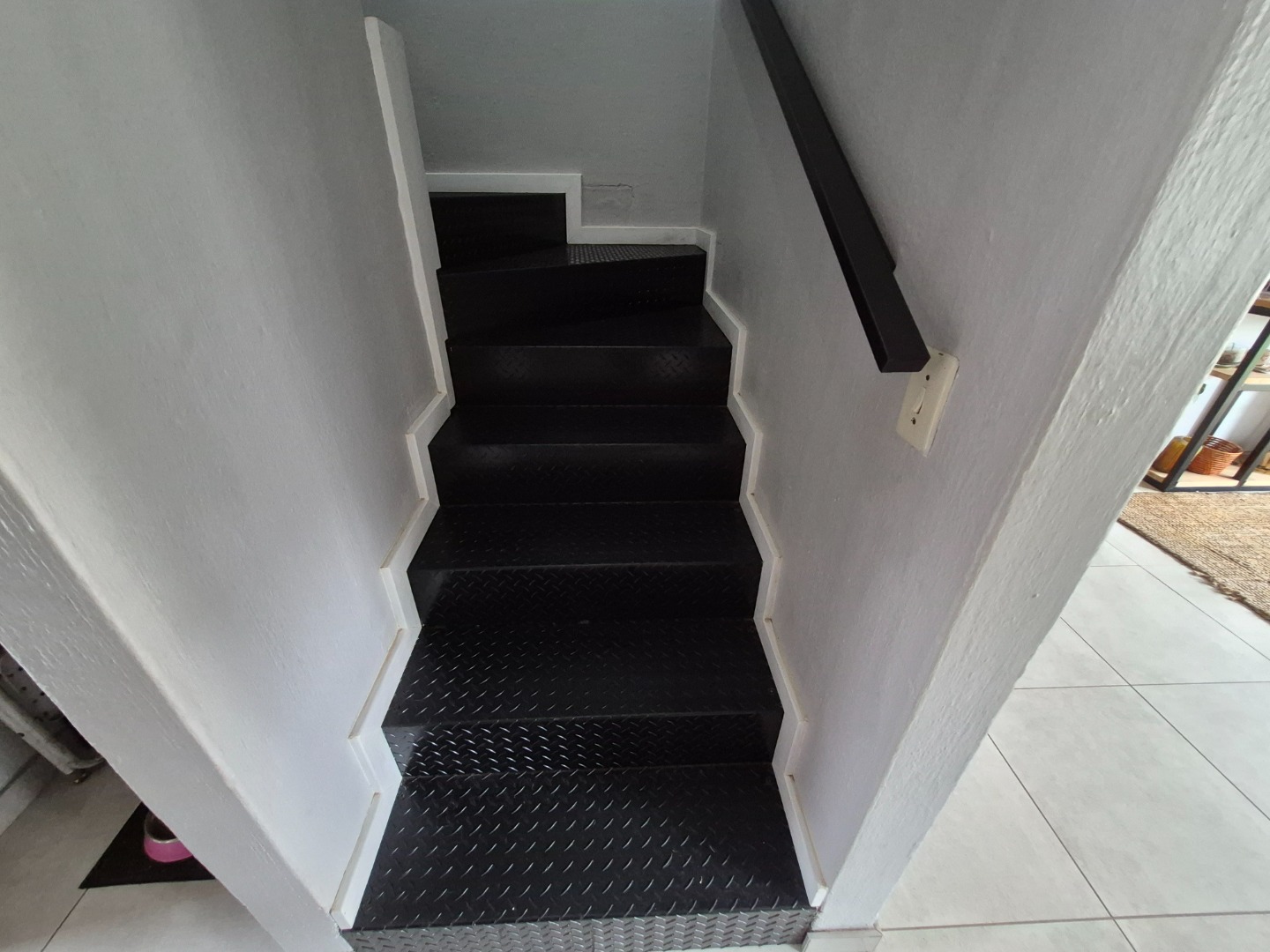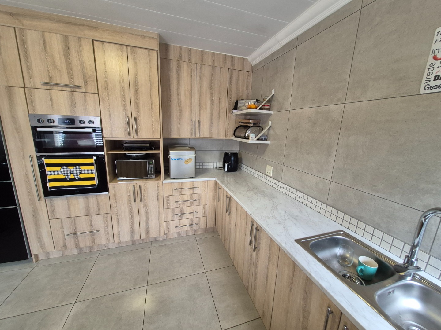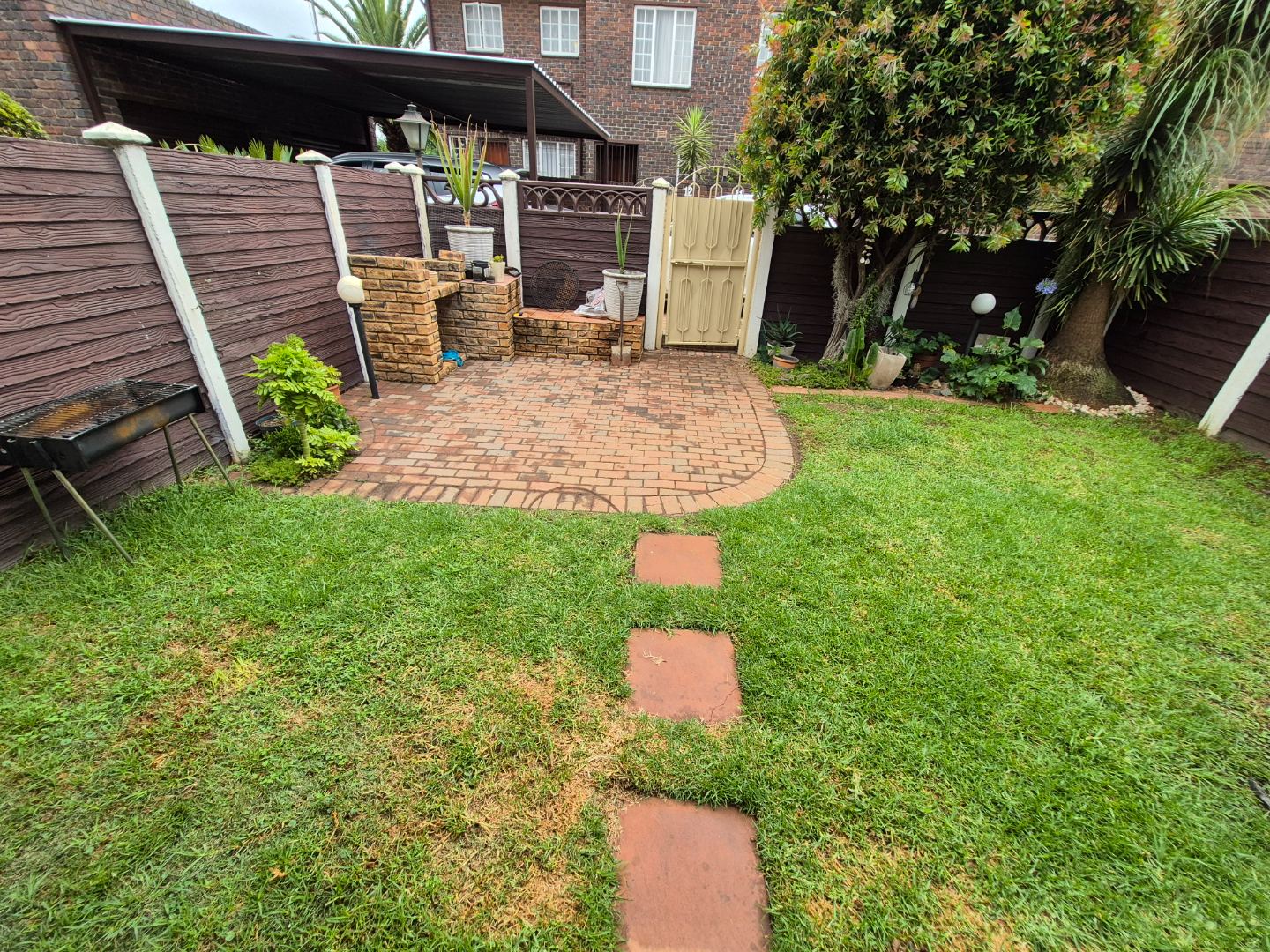 This charming two-story brick townhouse, nestled in the suburban heart of Brackenhurst, Alberton, offers a comfortable and convenient lifestyle. Its durable brick exterior provides neat kerb appeal, enhanced by ground-floor security bars and a gate for peace of mind. Inside, a well-appointed interior awaits. The spacious lounge and dedicated dining room offer ample space for relaxation and entertaining. The contemporary kitchen is a highlight, boasting extensive light wood-grain cabinetry, tiled finishes, and generous counter space. It features integrated appliances including a built-in oven, gas hob, extractor hood, and a dishwasher, alongside a microwave nook and a double stainless steel sink. Upstairs, three comfortable bedrooms each feature practical built-in wardrobes. The home includes two bathrooms, with one being a private en-suite, offering convenience. Tiled flooring extends throughout, ensuring easy maintenance. Outdoors, a private, low-maintenance backyard includes a paved path, a small lawn, and a built-in braai, perfect for entertaining. Residents also enjoy access to a communal pool. Parking is well catered for with two garages and additional space for four vehicles. Security is enhanced by an access gate and a totally walled perimeter, providing a secure environment for residents and their pets. Air conditioning units are also present for climate control. Key Features: * 3 Bedrooms, 2 Bathrooms (1 En-suite) * Modern Kitchen with Integrated Appliances * Spacious Lounge & Dining Room * Private Backyard with Built-in Braai * Communal Pool Access * 2 Garages & 4 Parking Spaces * Security Bars & Access Gate * Pet-Friendly * Air Conditioning