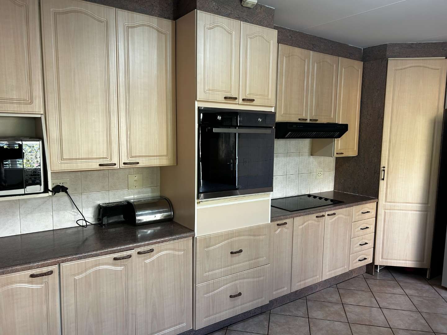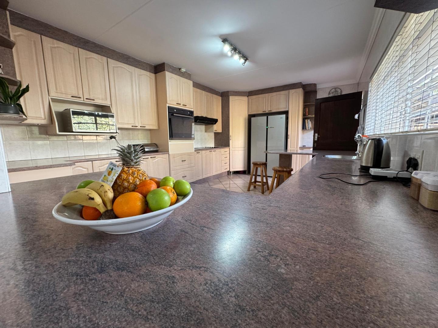 The kitchen is spacious and immaculate, offering ample cabinetry, a pantry, a breakfast nook, and a separate scullery for added convenience.