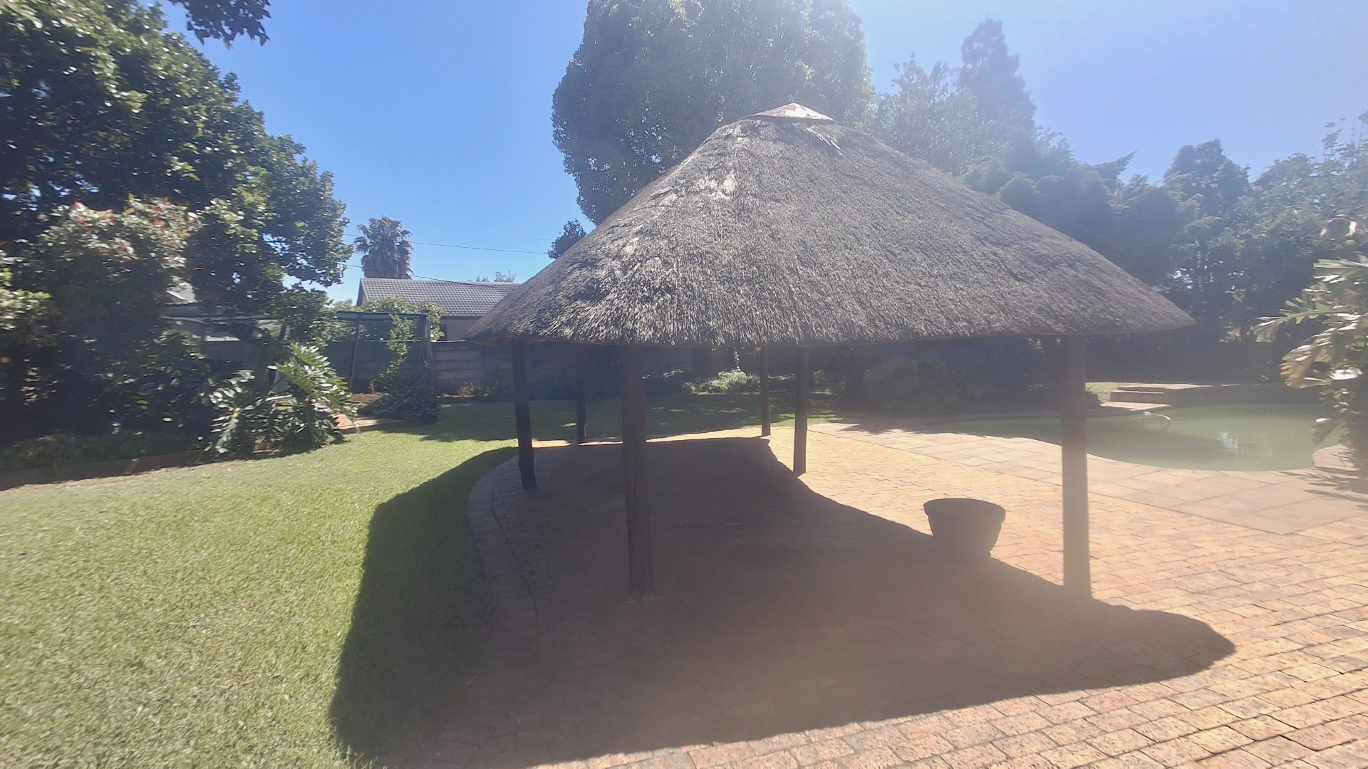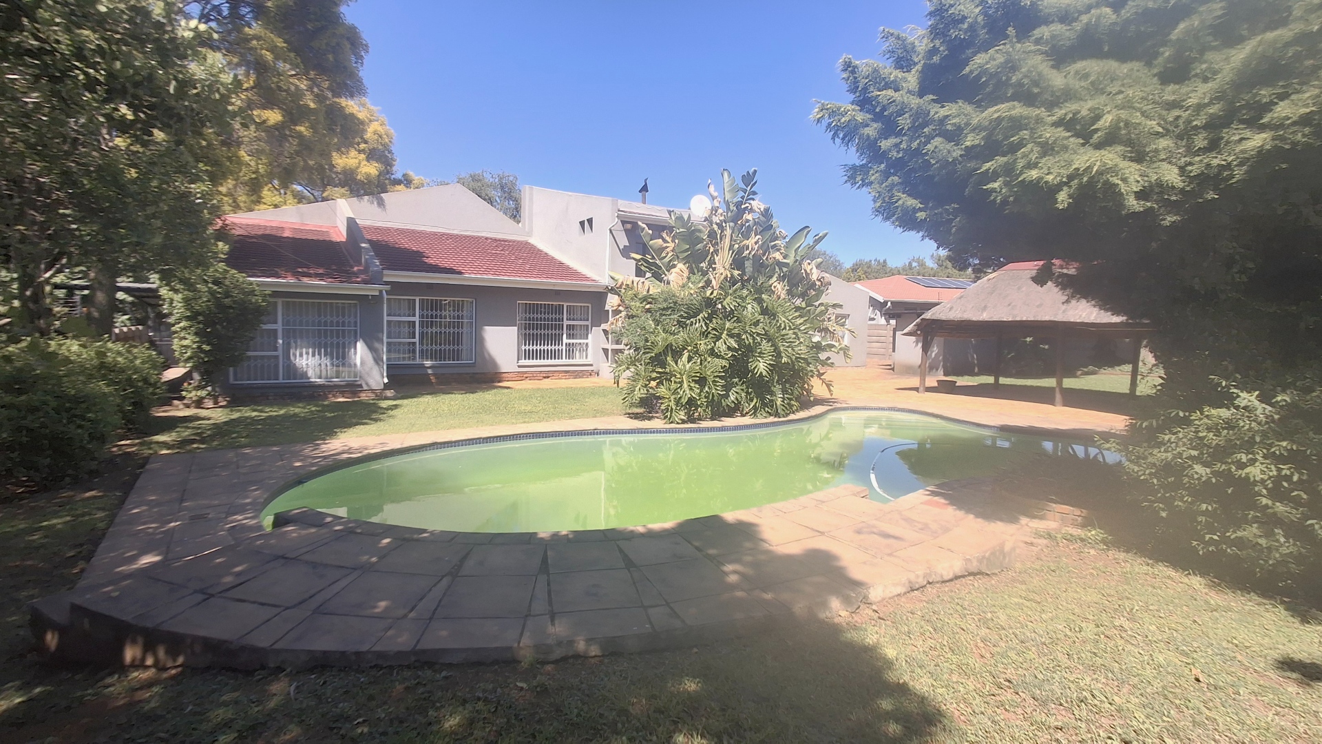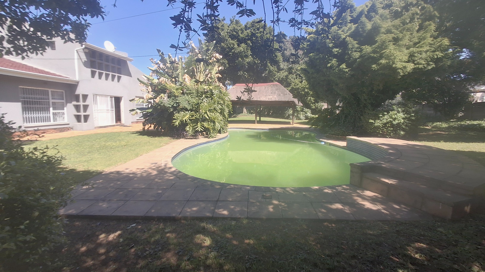 Outdoor living is a highlight, featuring a refreshing swimming pool, a lapa for shaded relaxation, and a well-kept garden with paving, ideal for outdoor activities and pets. Security is well-addressed with an access gate, security gates, and burglar bars, ensuring peace of mind. Additional amenities include staff quarters and two garages with three total parking spaces, providing practical solutions for a busy household. Fibre connectivity is available, catering to modern communication needs.